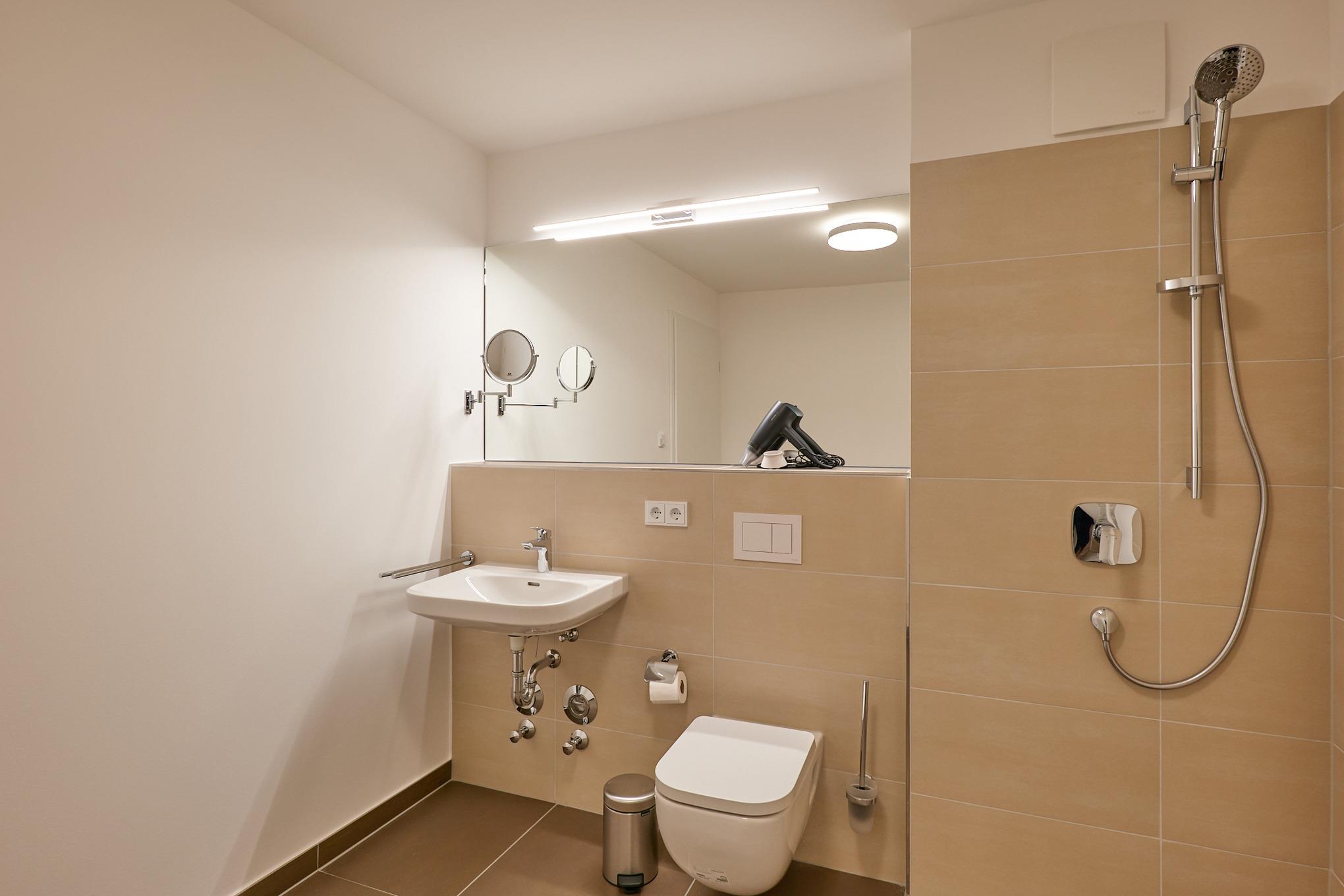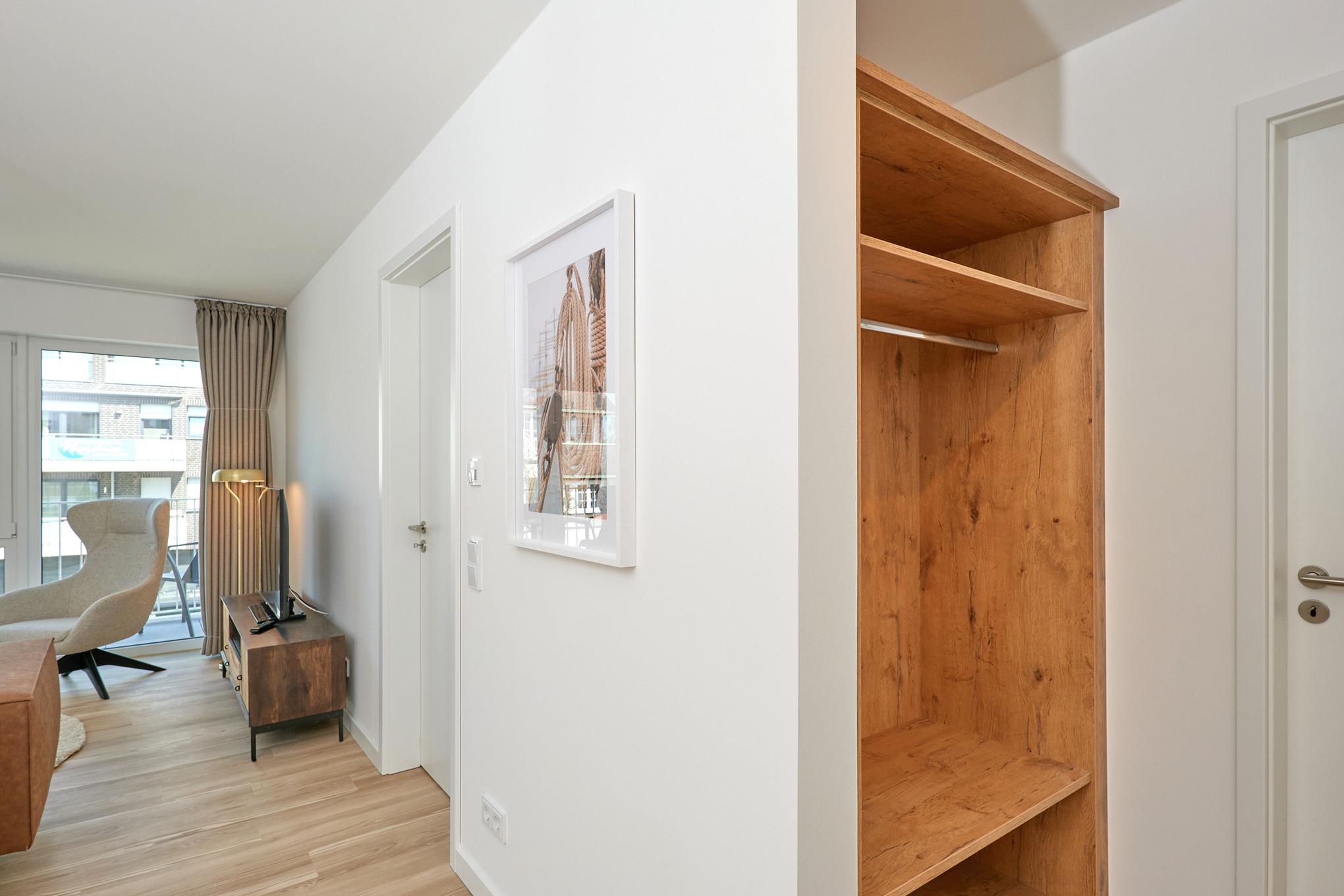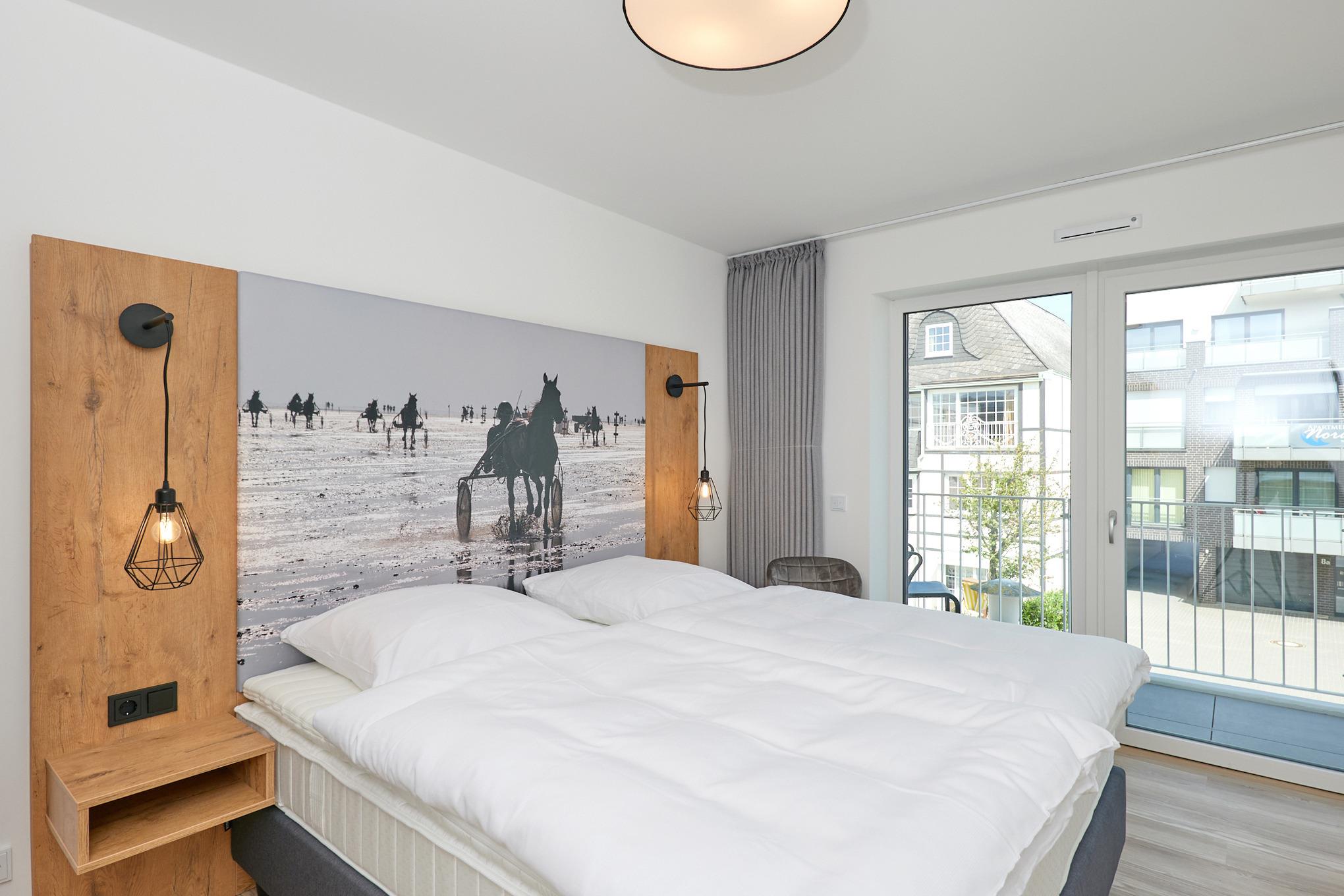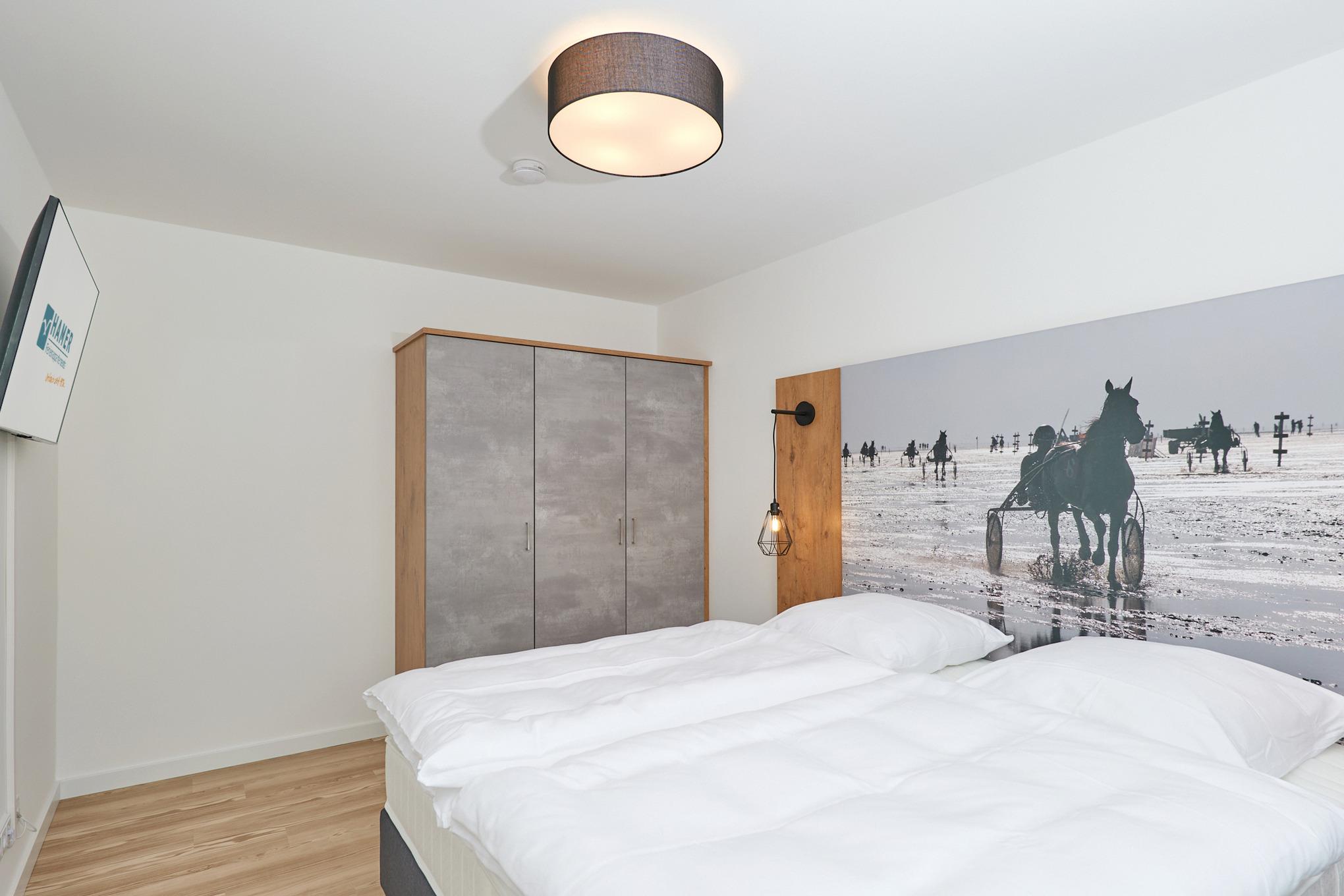 Neubau Mai 2023! Sehr schöne, moderne 3-Raum-Wohnung bis 4 Pers. voll ausgestattet auf ca. 73 m² in der 2.Etage gelegen, 2 Schlafzimmer mit komfortablen Doppelbetten (Bettwäsche inkl.) und Außenjalousien an allen Fenstern, ebenerdige Dusche/WC, Wohnzimmer mit großer Küchenzeile (Backofen, Geschirrspüler, Mikrowelle), 3x Kabel-TV, Radio, kostenfreies W-LAN-Internet, kleiner Balkon (ost) mit Teilseesicht, Personenaufzug, reservierter Pkw-Stellplatz in der Tiefgarage inkl., es sind keine Haustiere erlaubt und natürlich Nichtraucher. Durchfahrtshöhe Tiefgarage: 2,05m.