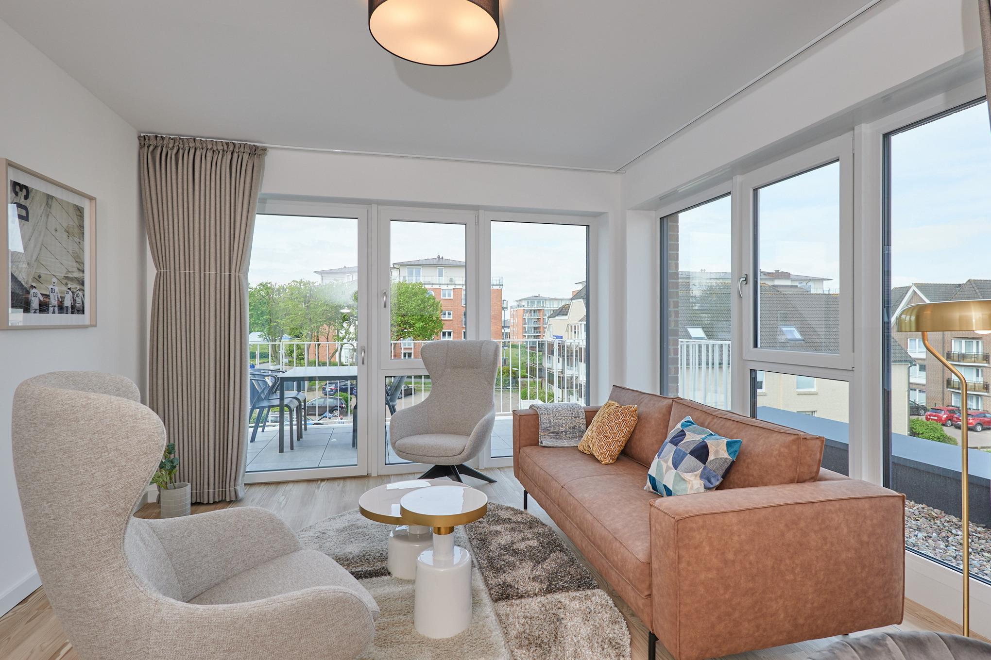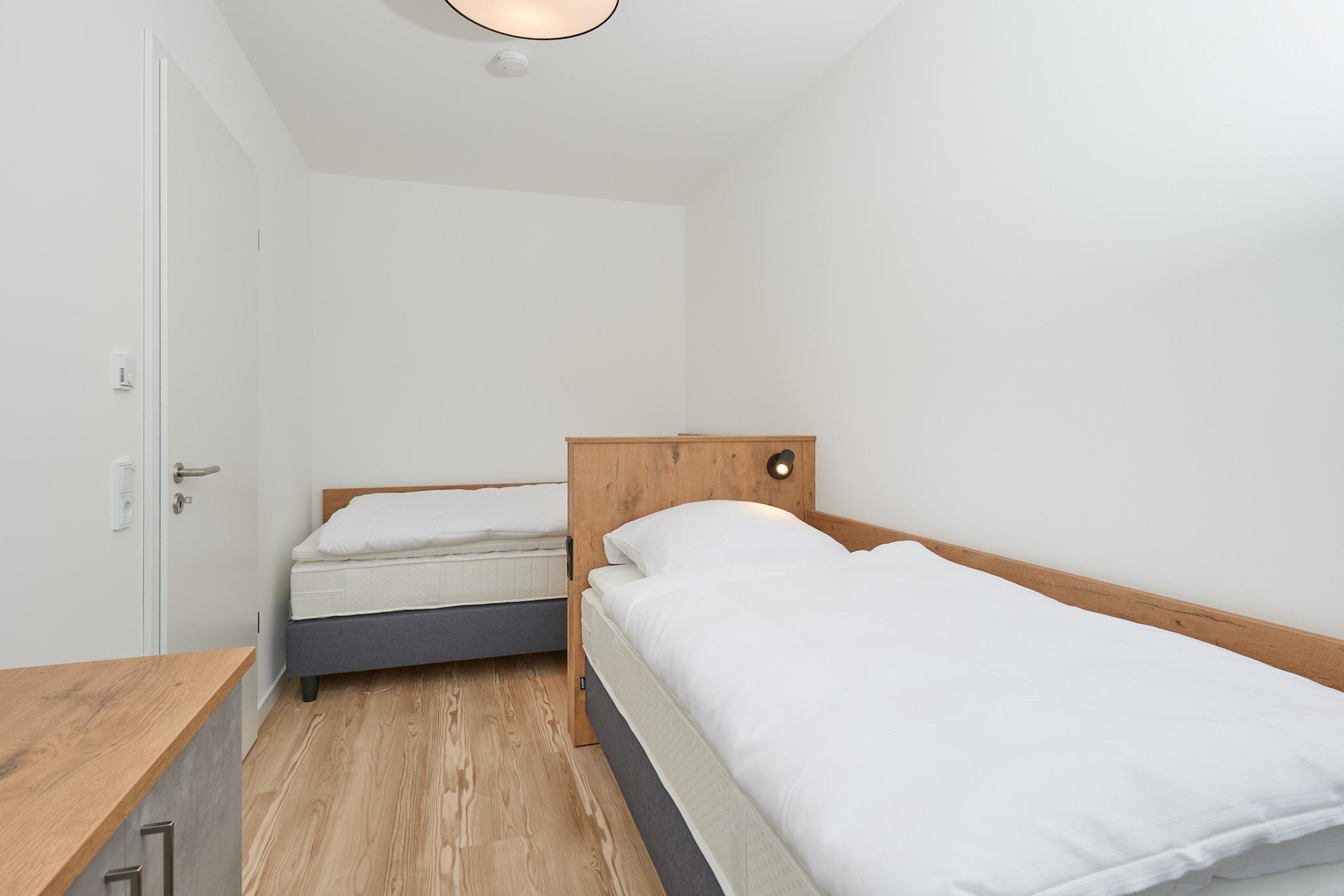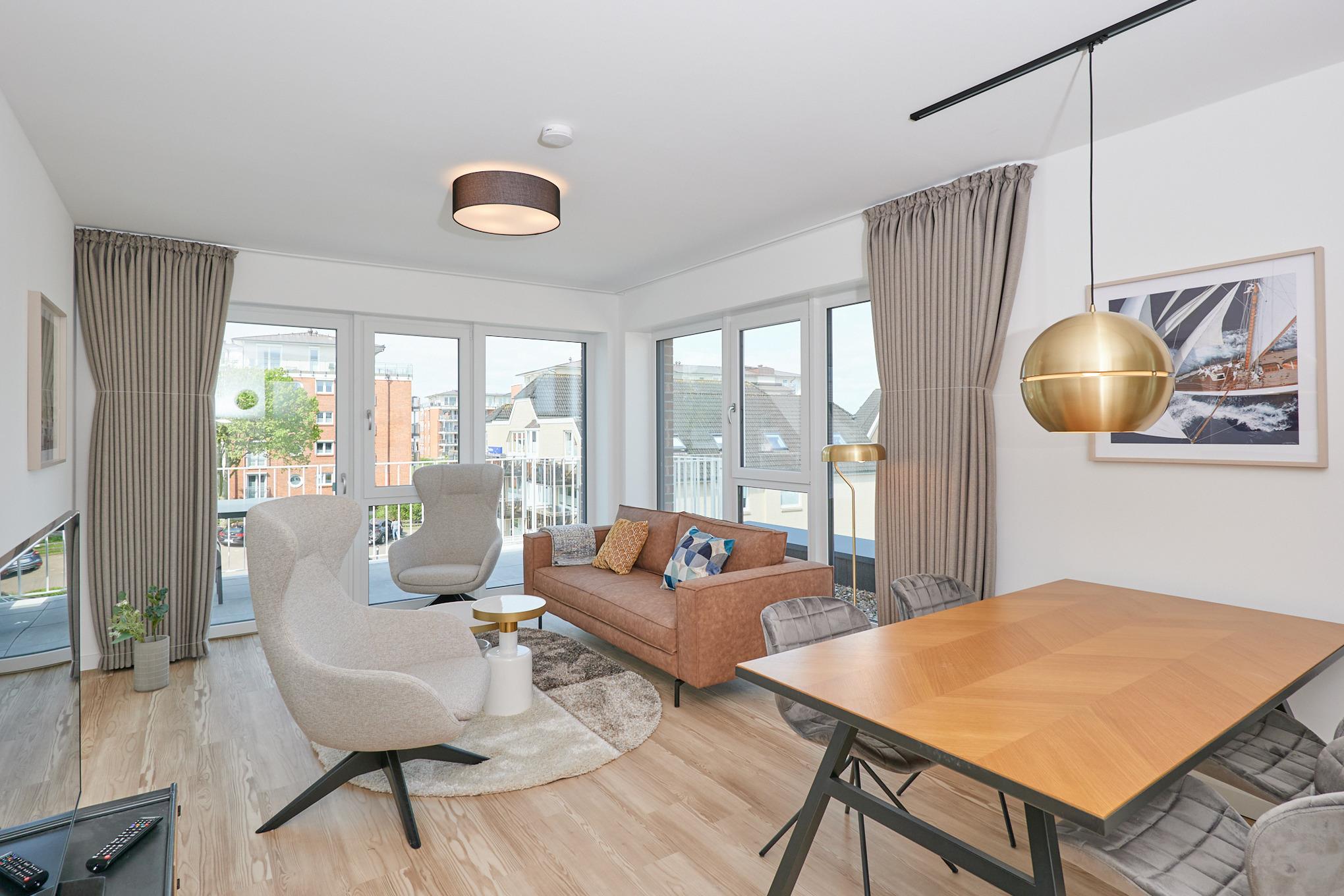 Neubau Mai 2023! Sehr schöne, moderne 3-Raum-Wohnung bis 4 Pers. voll ausgestattet auf ca. 87 m² in der 3.Etage gelegen, 2 Schlafzimmer (1x Doppelbett, 1x 2 Einzelbetten) und Außenjalousien an allen Fenstern, ebenerdige Dusche/WC, Wohnzimmer mit großer Küchenzeile (Backofen, Geschirrspüler, Mikrowelle) und Teilseesicht, 2x Kabel-TV, Radio, kostenfreies W-LAN-Internet, großer Balkon (west) mit Teilseesicht, Personenaufzug, reservierter Pkw-Stellplatz in der Tiefgarage inkl., es sind keine Haustiere erlaubt und natürlich Nichtraucher. Durchfahrtshöhe Tiefgarage: 2,05m.