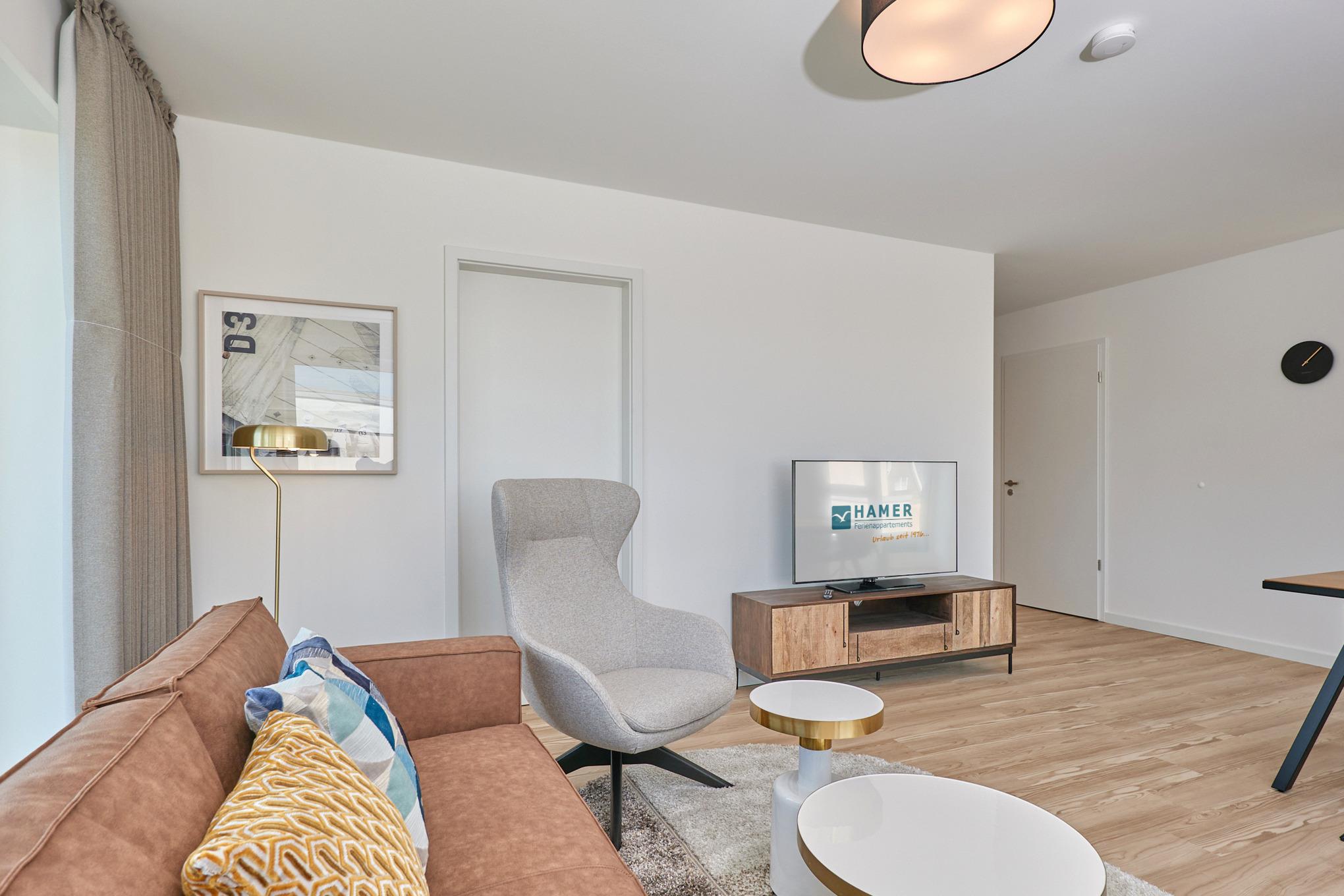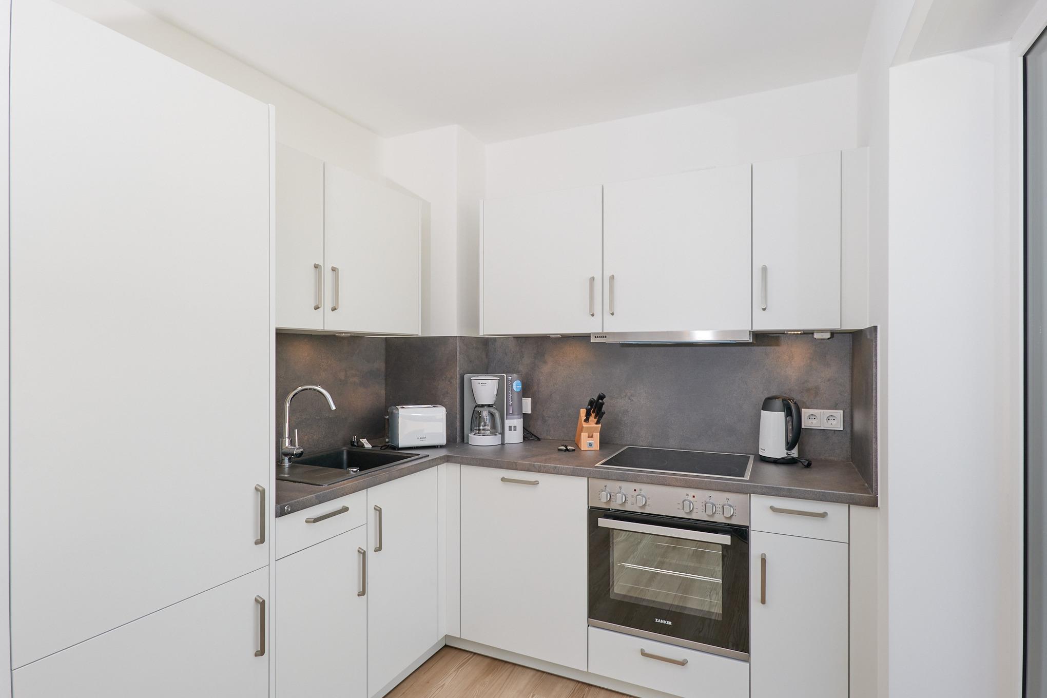 Neubau Mai 2023! Sehr schöne, moderne 3-Raum-Wohnung bis 4 Pers. voll ausgestattet auf ca. 80 m² in der 3.Etage gelegen, 2 Schlafzimmer (1x Doppelbett, 1x 2 Einzelbetten) und Außenjalousien an allen Fenstern, ebenerdige Dusche/WC, Wohnzimmer mit großer Küchenzeile (Backofen, Geschirrspüler, Mikrowelle) u. Teilseesicht, 2x Kabel-TV, Radio, kostenfreies W-LAN-Internet, kleiner Balkon (nord) mit Teilseesicht, Personenaufzug, reservierter Pkw-Stellplatz in der Tiefgarage inkl., es sind keine Haustiere erlaubt und natürlich Nichtraucher. Durchfahrtshöhe Tiefgarage: 2,05m.