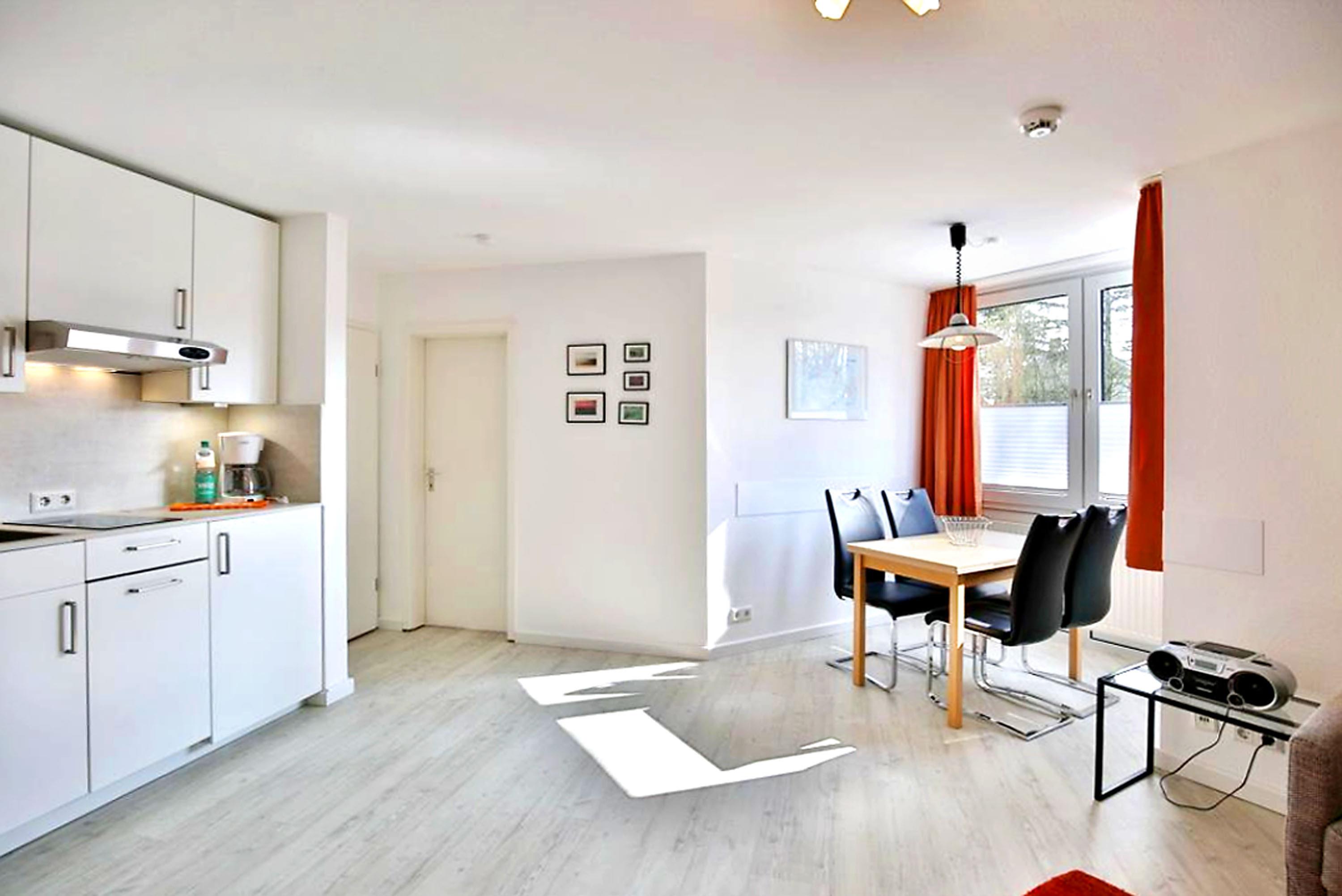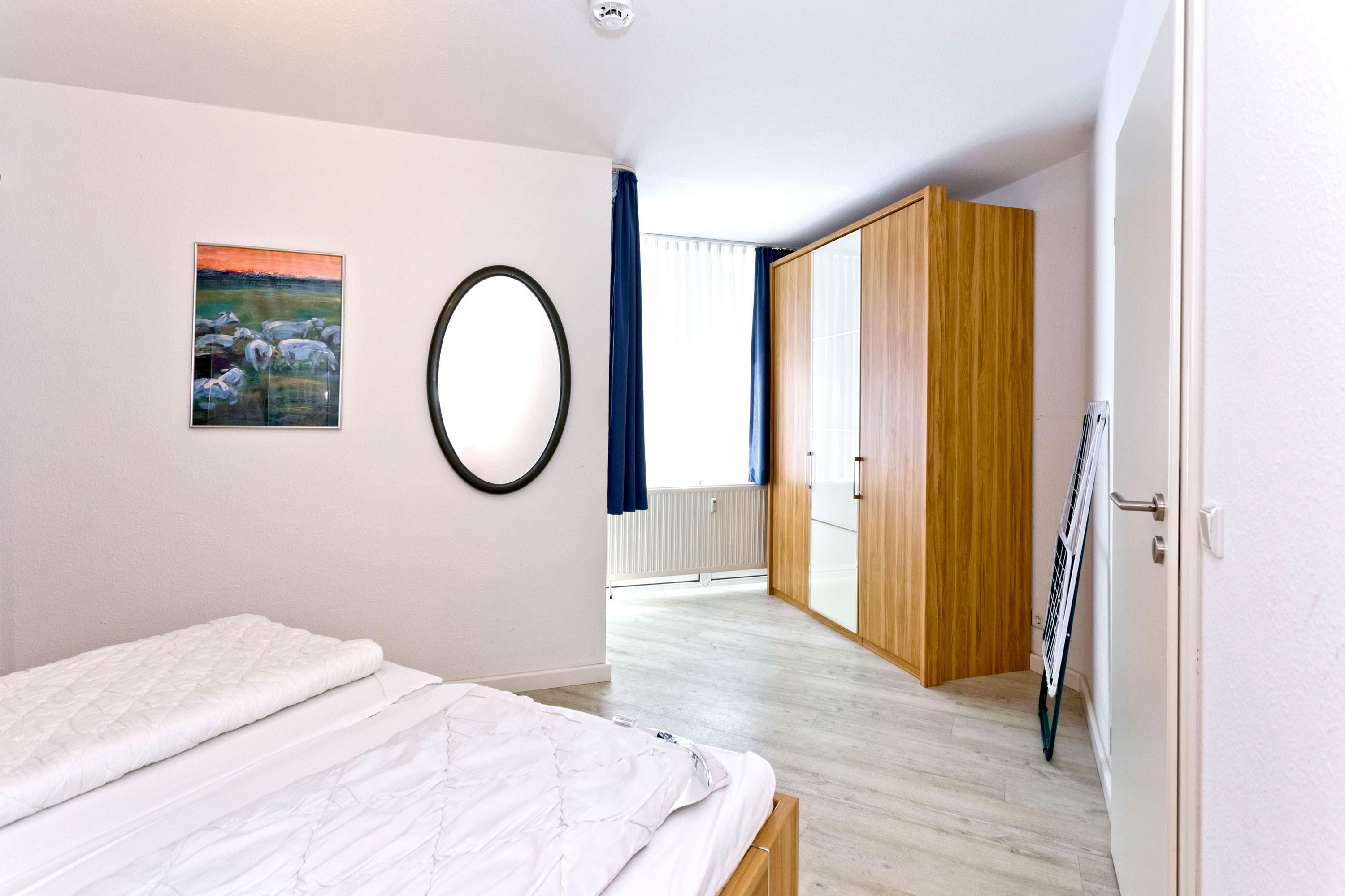 2-Raum-Parterrewohnung, ca. 40m², komplett ausgestattet bis 4 Pers. 1 Schlafzimmer mit Doppelbett, 1 kombiniertes Wohn/Schlafzimmer mit einem Schlafsofa, neue Küchenzeile, Kabel-TV, Radio, W-Lan kostenfrei, Du/WC, Flur, alles Laminatboden, keine Haustiere (allergikergerecht), Nichtraucher, Pkw-Stellplatz #5 am Haus.