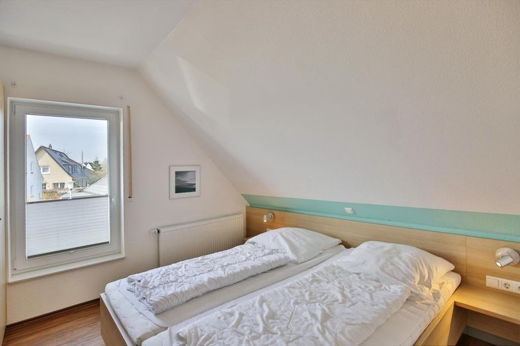 Sehr schöne, helle 3-Raum-Maisonette-Wohnung, 1.Etage, 1 Schlafzimmer mit Doppelbett, 1 Schlafzimmer im Dachgeschoss Doppelbett und separaten WC, Wohnzimmer mit Küchenzeile (Backofen, Mikrowelle, Geschirrspüler) 2x SAT-TV, CD, DVD, kostenloses W-LAN Internet, Du/Wc, großer Balkon (süd) mit Balkonmöbeln und Sonnenschirm (saisonabhängig), Rollladen, reservierter Pkw-Stellplatz vor dem Haus, keine Haustiere erlaubt, Nichtraucher.