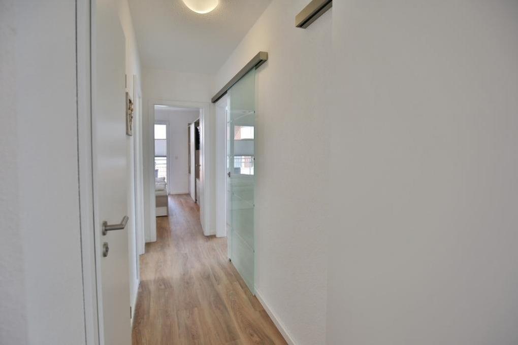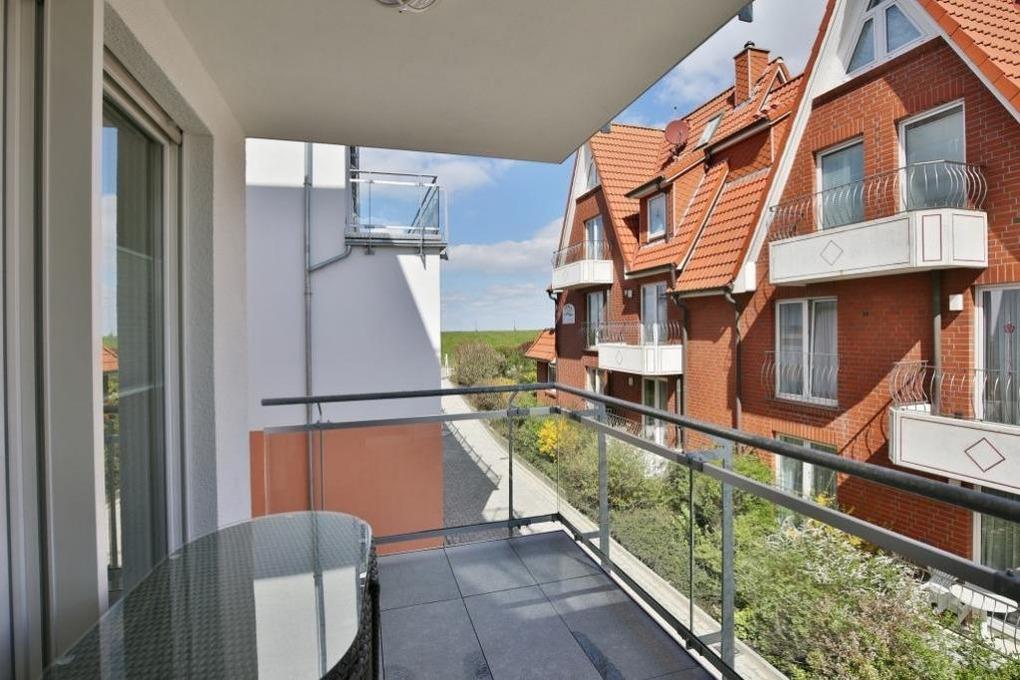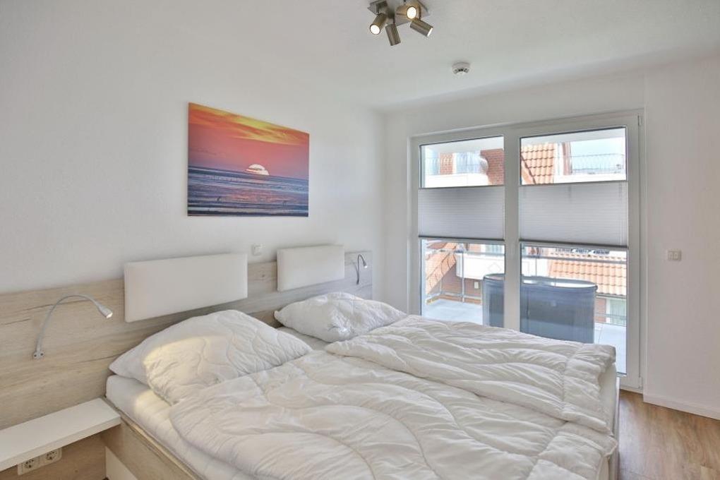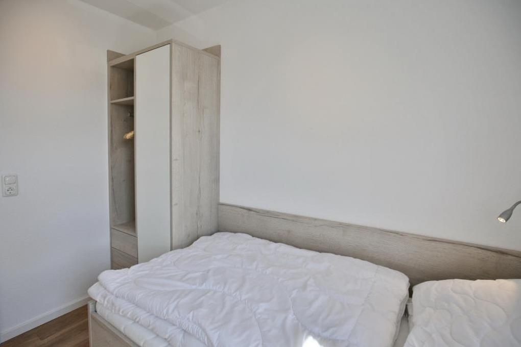 Schöne 3-Raum-Wohnung mit Teilseesicht im 1.OG bis 4 Pers., Wohnzimmer mit vollständiger Küchenzeile (Induktion, Back, Mikrow., Geschirrsp.) 1 Schlafzimmer mit Doppelbetten und Rollläden, 1 Schlafzimmer mit 2 Einzelbetten und Rollläden, hochwertige Einbaumöbel, kostenloses W-LAN, 1xDU/WC mit Fussbodenheizung , 1xGäste-WC, 2 x Sat-HD-TV, Radio, Balkon (nord-ost) mit Teilseesicht, Personenaufzug, keine Haustiere gestattet, Nichtraucherwohnung, reservierter und breiter Pkw-Stellplatz #10 am Haus.