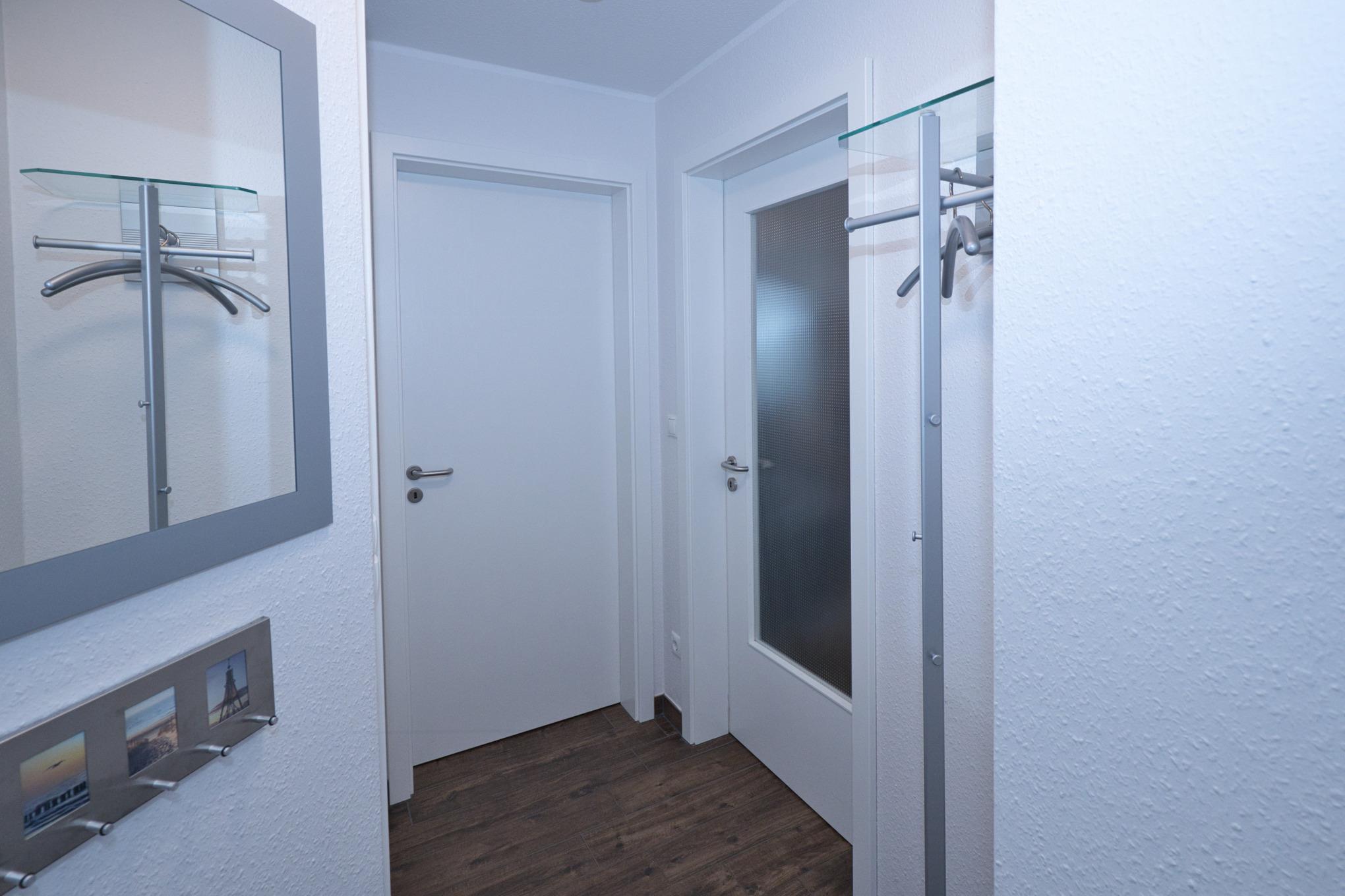 Die Wohnung ist barrierefrei und über einen Fahrstuhl von der Tiefgarage aus zugänglich, der Ihnen einen direkten Zugang zum Treppenhaus bietet. Bei der Einrichtung wurde viel Wert auf Modernität und großzügige Raumgestaltung gelegt. Der Schlafbereich verfügt über bequeme Betten und einen geräumigen Kleiderschrank, um Ihnen den nötigen Komfort zu bieten. Eine schallgedämmte Eingangstür, Außen-Jalousien, eine Garderobe sowie das Duschbad mit WC runden das Angebot ab.