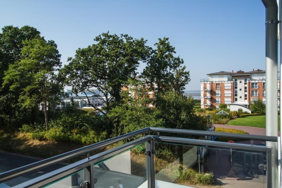 Die Lage der Ferienwohnung ist einfach perfekt für alle Strandliebhaber und Nordsee-Enthusiasten. Sie befindet sich in unmittelbarer Nähe zum Strand, sodass Sie die salzige Meeresluft in wenigen Gehminuten genießen können. Erleben Sie das faszinierende Schauspiel von Ebbe und Flut, während Sie von Ihrem großartigen Balkon aus den beinahe uneingeschränkten Blick ins Grüne und auf die Nordsee haben. Auch vom gemütlichen Sofa sowie dem Essplatz im Küchenbereich aus können Sie diese atemberaubende Aussicht voll und ganz genießen.