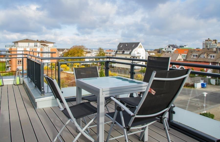 Ein besonderes Highlight der Ferienwohnung ist der großartige Balkon, der sowohl vom Wohnzimmer als auch vom Schlafzimmer aus begehbar ist. Hier können Sie die frische Meeresluft einatmen, die Sonne genießen und das umliegende Panorama schweifen lassen.