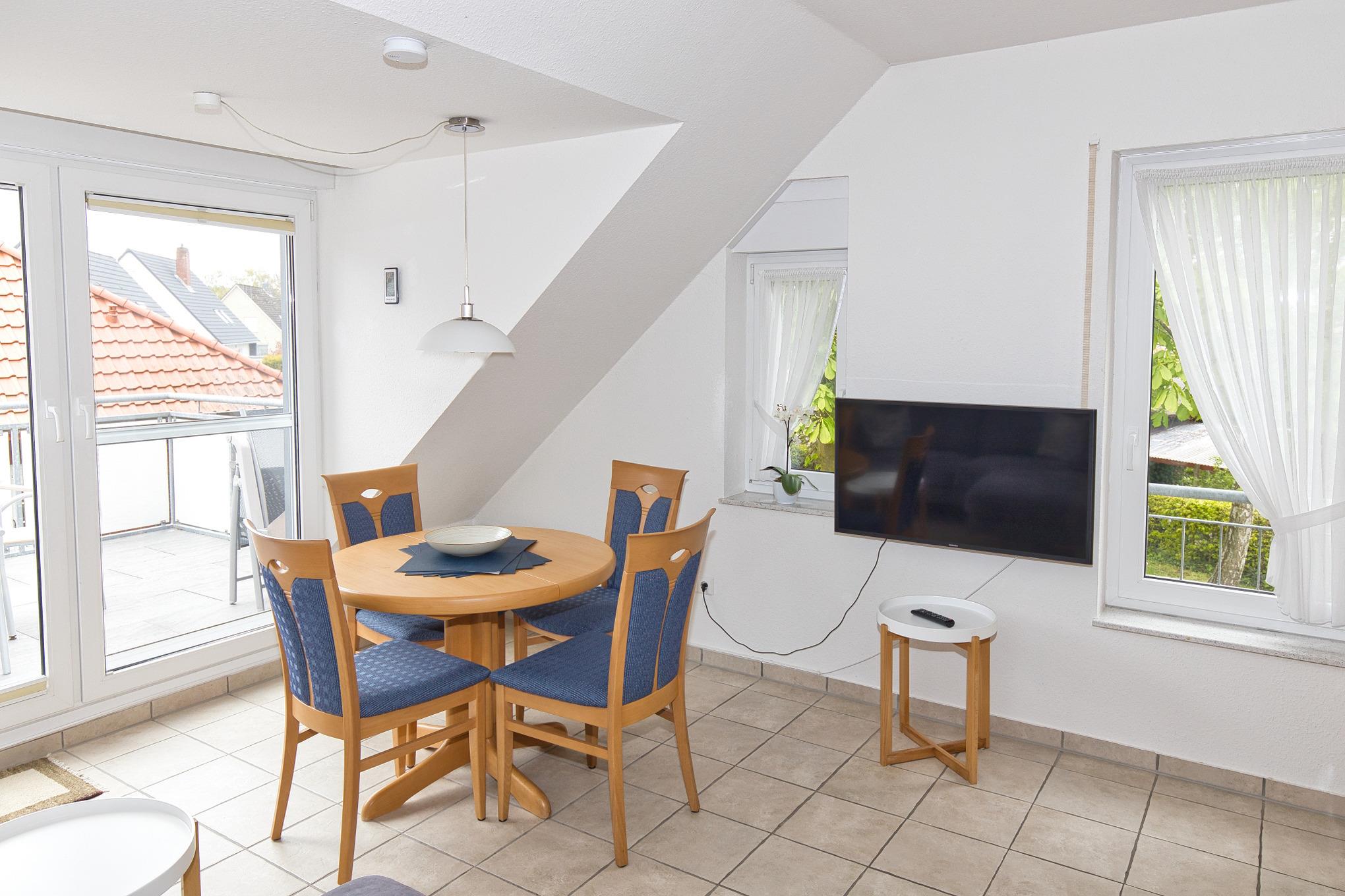 Eine gemütliche und geräumige Ferienwohnung, im beliebten Aquaris in Duhnen, auf 2 Ebenen für bis zu 4 Personen mit einem groß ausgerichteten Süd-West Balkon erwartet Sie hier. Einen besonderen Komfort bieten neben den 2 Schlafzimmern mit je einem Doppelbett, die beiden Duschbäder. Entspannung nach einem Spaziergang finden Sie im gemütlichen Wohn- Ess- und Küchenbereich mit direkten Balkonzugang. Ein PKW-Stellplatz (Nr. 10), sowie ein abschließbares Fahrradhaus und weitere Abstellplätze für Ihre Räder auf dem Grundstück sind ebenso vorhanden.