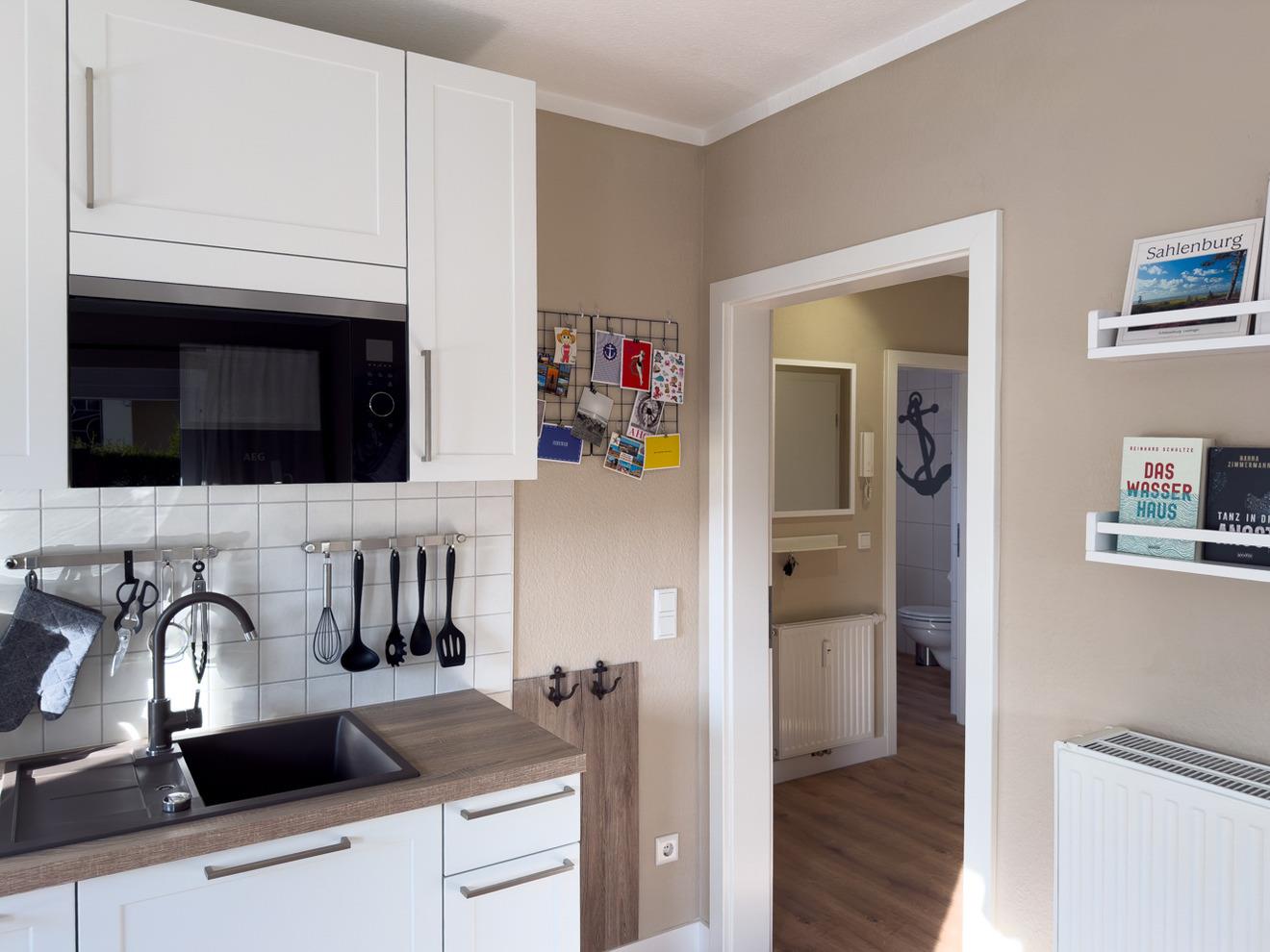 Die Wohnung bietet Ihnen ein komfortables Schlafzimmer mit Doppelbett, einen gemütlichen Wohnbereich mit einer einladenden Eckcouch, TV und Internetzugang sowie eine voll ausgestattete Küche.