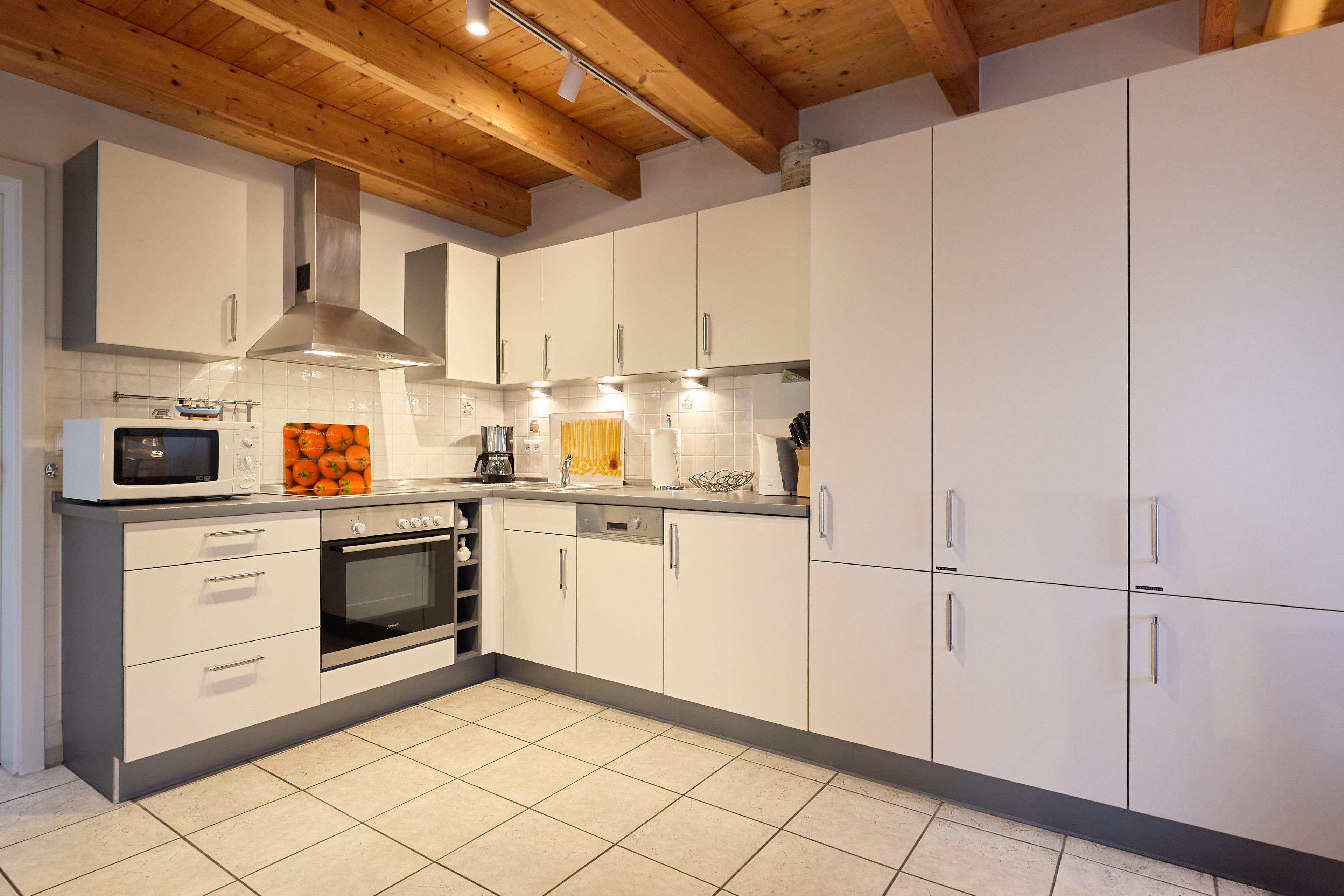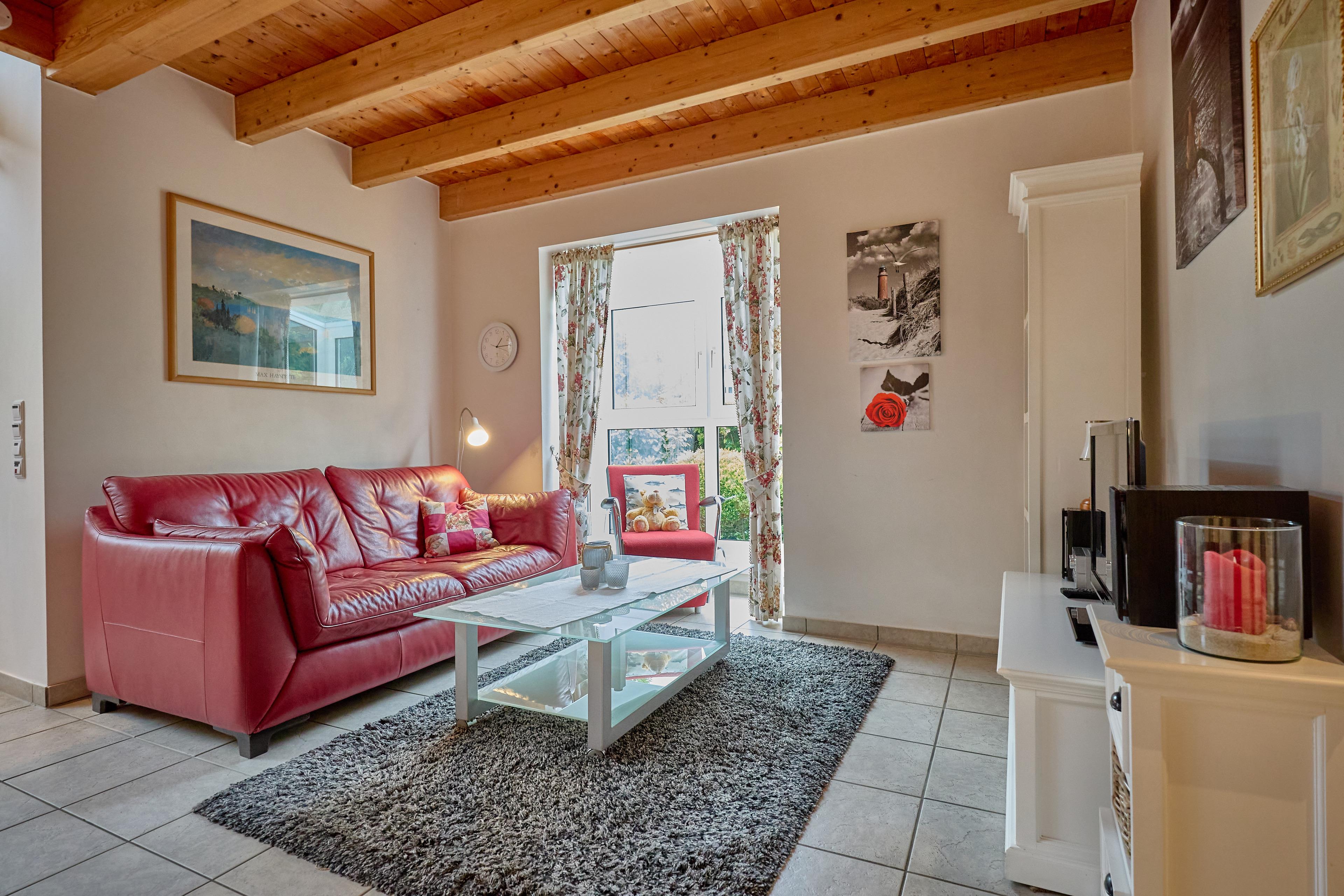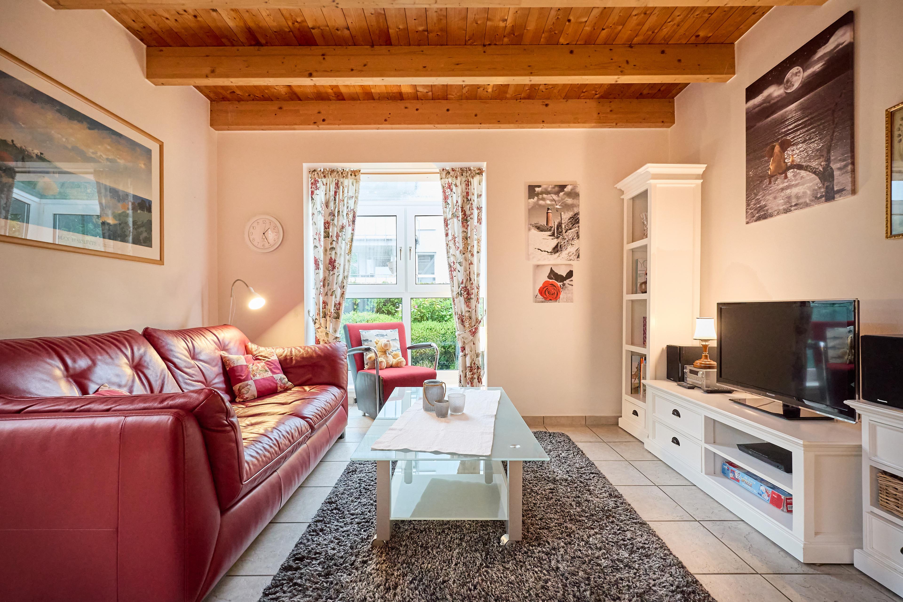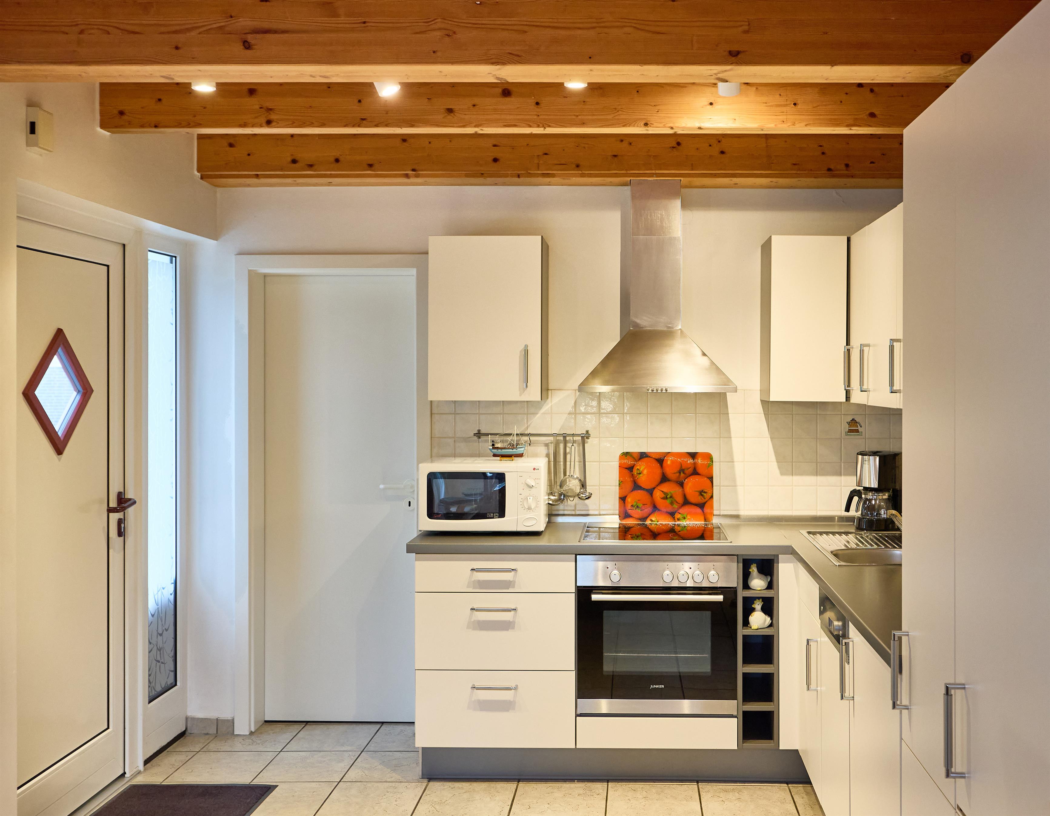 Die gemütlich eingerichtete 2- Zimmer Haushälfte vom lütten Hus besteht aus einem Wohn- und Essbereich (mit Zugang zur Terrasse und ansprechend gestaltetem, großen Innenhof) mit Esstisch und Sitzgelegenheiten und Sofa. Ein Ohrensessel lädt zum Verweilen ein. Die voll ausgestattete neue Einbauküche und ein großzügiges Duschbad (Dusche/ WC) befinden sich ebenfalls im EG. Das Schlafzimmer mit 2 Einzelbettenbetten und ein Spielboden mit einem zusätzlichen niedrigen Einzelbett für die „Kleinen“ laden zum Spielen und Entspannen ein. Dat lütte Hus, 2 Zimmer: EG + 1.OG, ca. 53 m2, bis zu 3 Personen, Ausstattung: Voll ausgestattete neue Küche mit Geschirrspüler, Backofen, 4-Platten Ceran-Kochfeld, Mikrowelle, Kaffeemaschine, Toaster usw. Wohn- und Essbereich mit Full HD-Fernseher, DVD-Player inkl. einer Vielzahl an Filmen, CD-Player und HIFI Anlage. Für Ihr E-Auto steht Ihnen eine kostenpflichtig zu nutzende Wallbox direkt an den PKW Stellplätzen zur Verfügung.