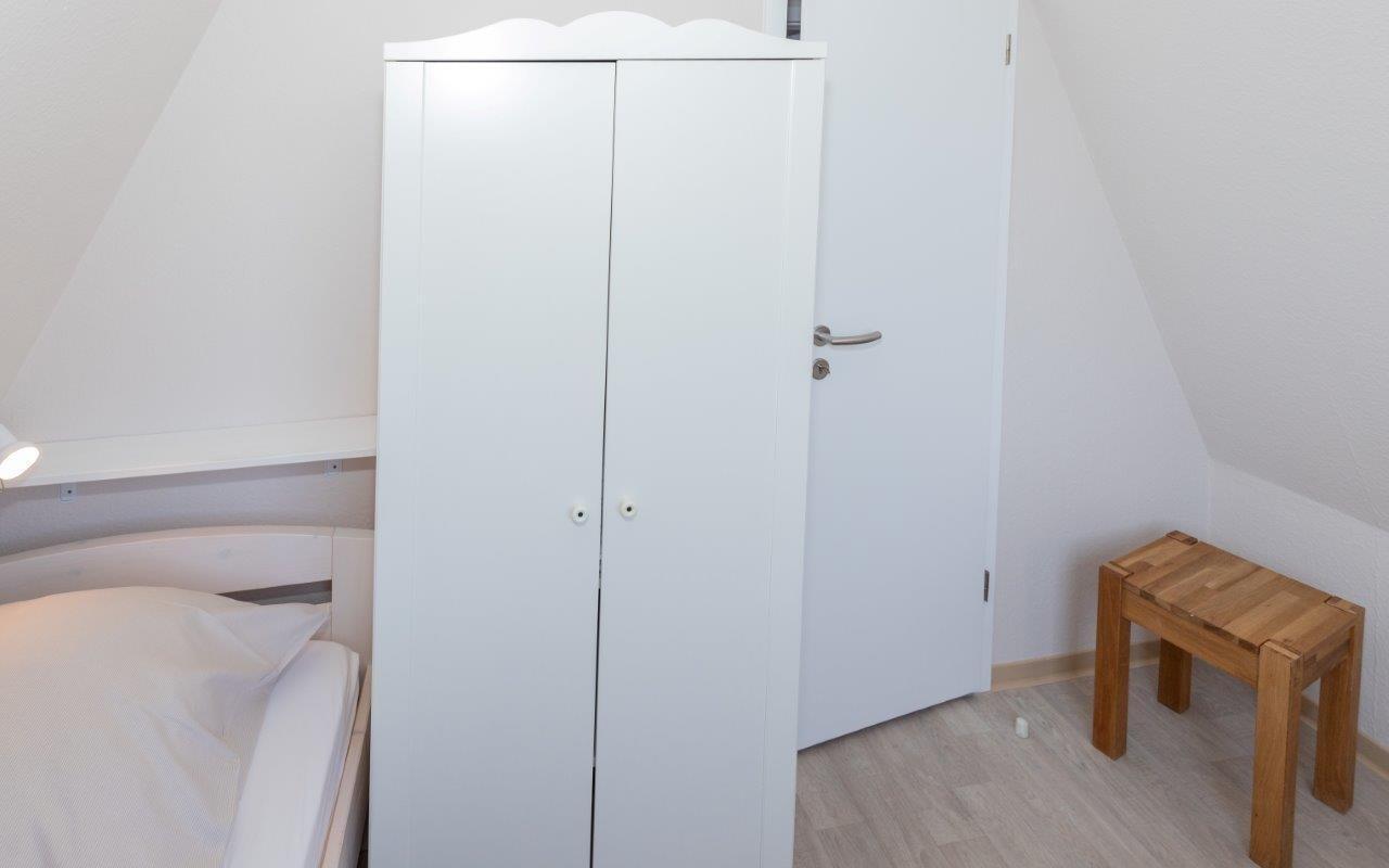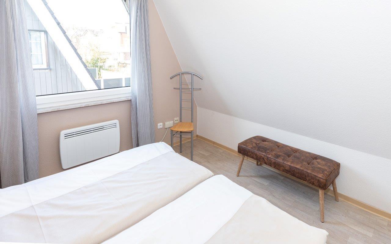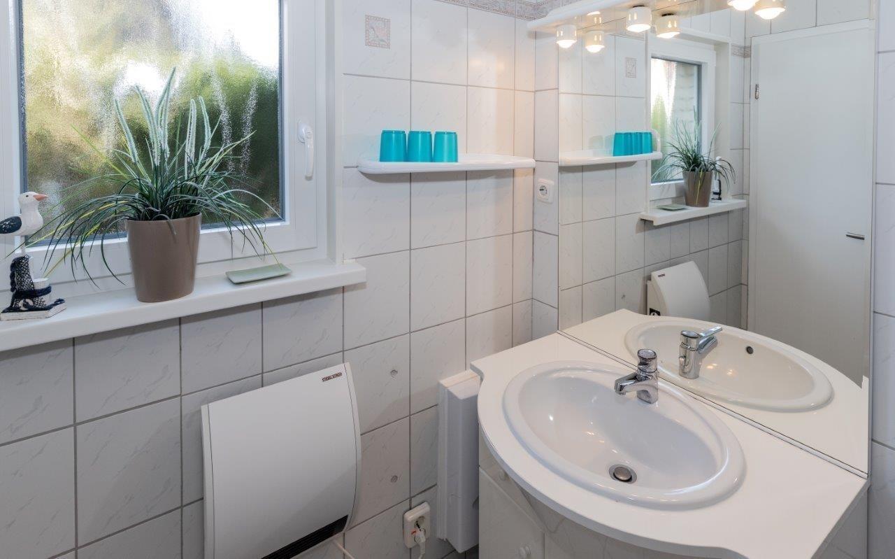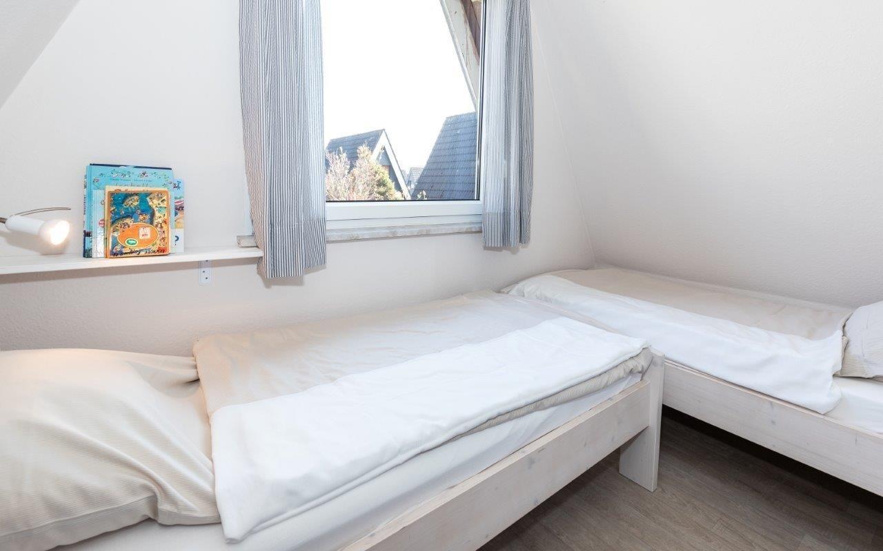 Das Haus verfügt über 2 Schlafzimmer – eins mit einem behaglichen Doppelbett und ein kleines Kinderzimmer mit 2 Einzelbetten. Im Erdgeschoss erwartet Sie ein modernes Duschbad mit WC, während der Wohn- und Essbereich mit einer großzügigen Fensterfront zur Westterrasse gemütlich eingerichtet ist. Die Treppe ins Obergeschoss ist mit normalen Stufen ausgestattet, jedoch ist ihre Nutzung für sehr kleine Kinder (bis 3 Jahre) ohne Aufsicht nicht empfohlen.