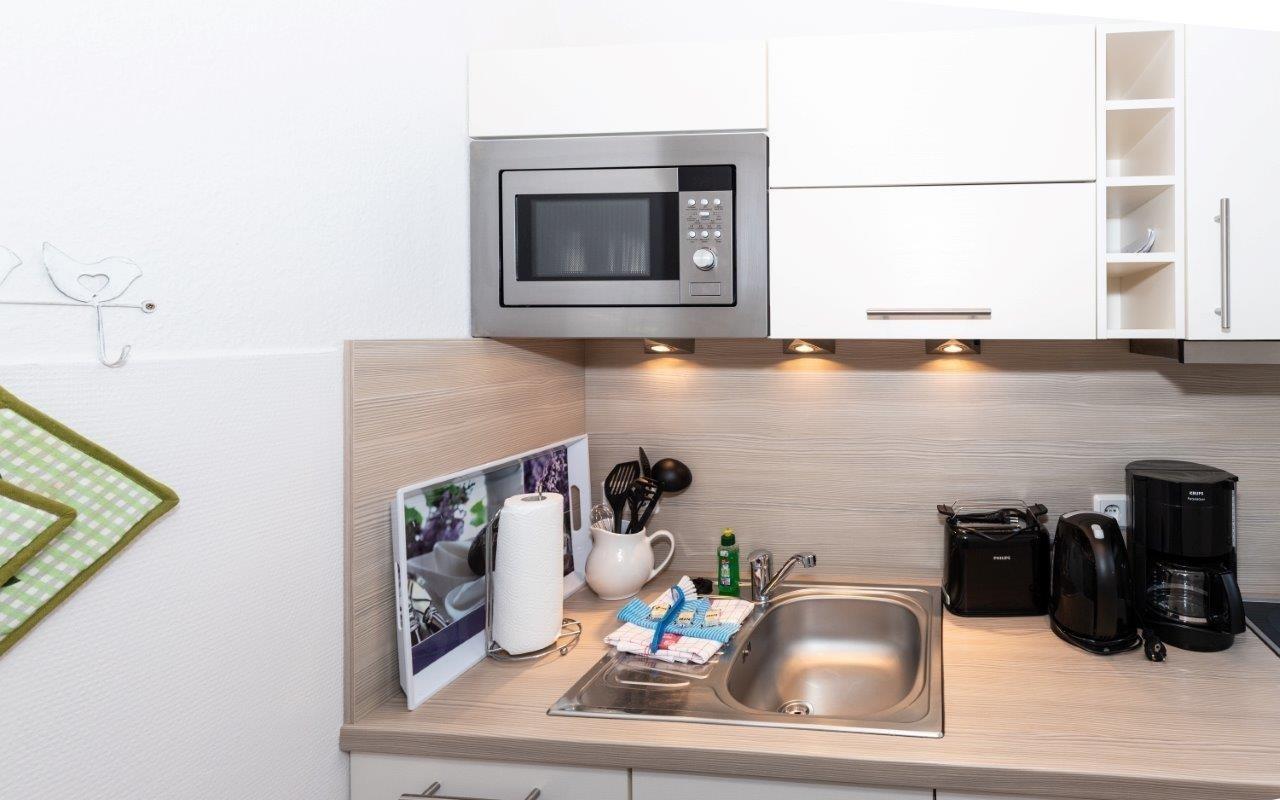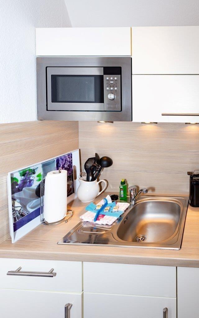 Erstausstattung zum Start in den Urlaub - Bezogene Betten sowie ein Fewo-Starterpaket einschließlich Duschvorleger, ein Geschirrtuch, Geschirrspültabs, Spülmittel, Spülbürste, Spültuch, 1 Toilettenrolle, Müllbeutel etc.