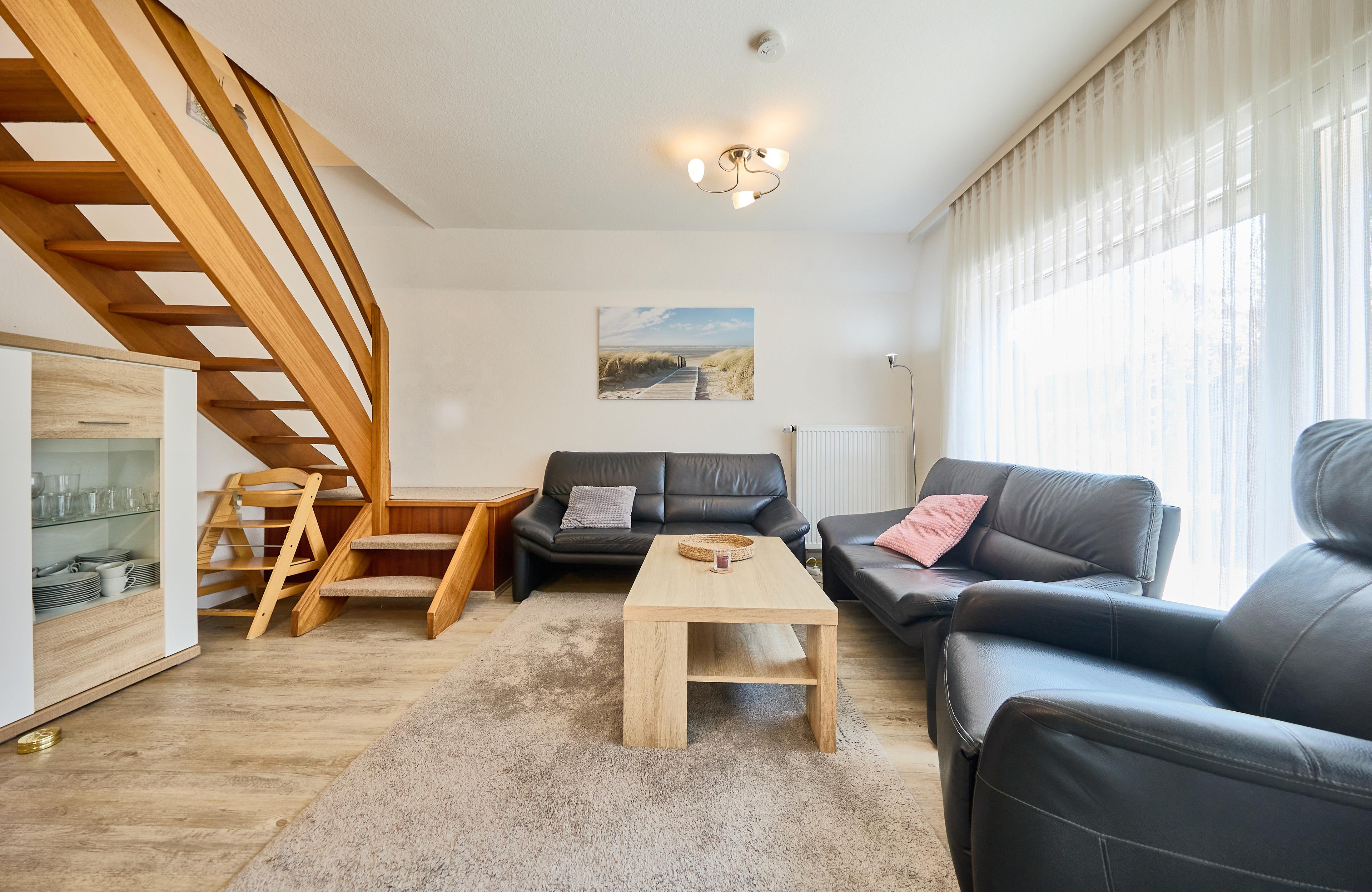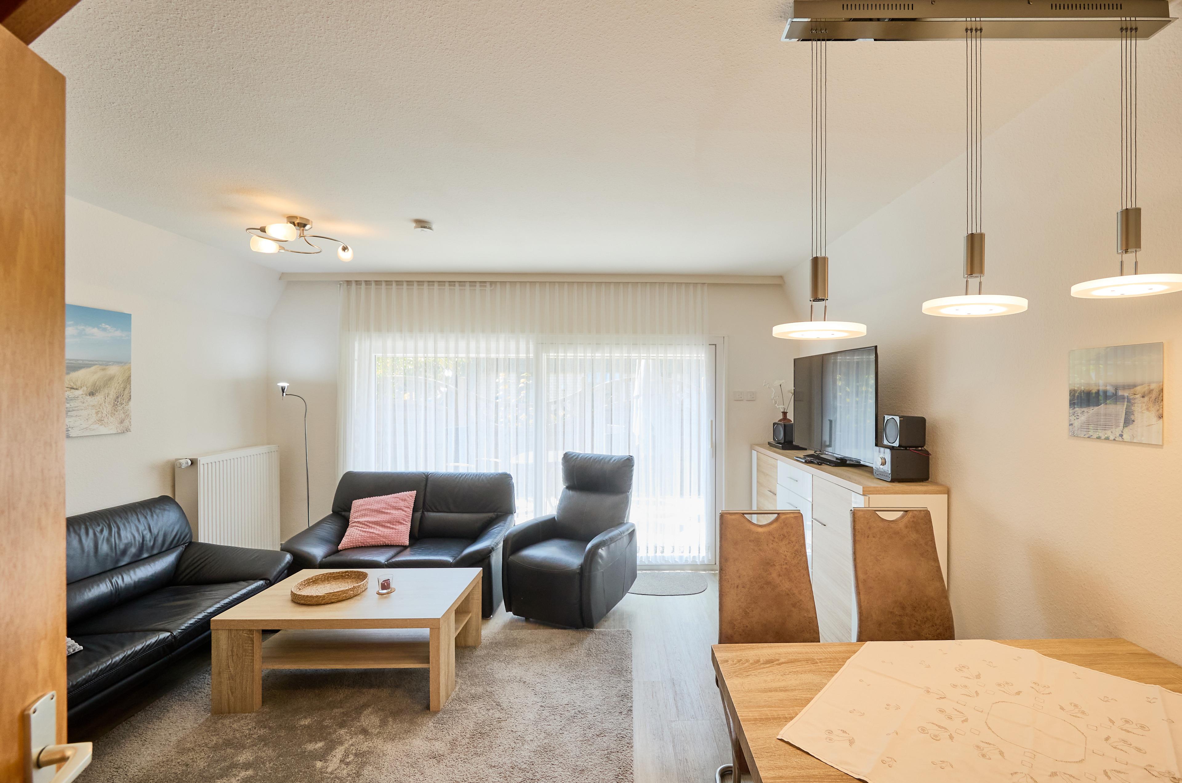 Willkommen im "Ferienhaus Am Ringwall 32 - Fritzi"! Hier erwartet Sie ein idyllisches Refugium für Ihren Nordseeurlaub. Auf großzügigen 54 m² bietet unser Ferienhaus Platz für bis zu 4 Personen und verfügt über 2 gemütliche Schlafzimmer sowie ein Duschbad. Im Wohnbereich erwartet Sie eine behagliche Atmosphäre, wo Sie in der Essecke Ihre Mahlzeiten genießen oder im komfortablen Sofabereich vor dem Fernseher entspannen können. Durch eine elegante Glasschiebetür gelangen Sie auf Ihre sonnige Westterrasse, wo Sie die frische Nordseeluft in vollen Zügen genießen können.