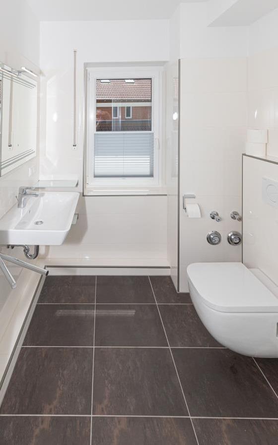 Das moderne Tageslichtbad überzeugt mit klaren Linien und komfortabler Ausstattung: