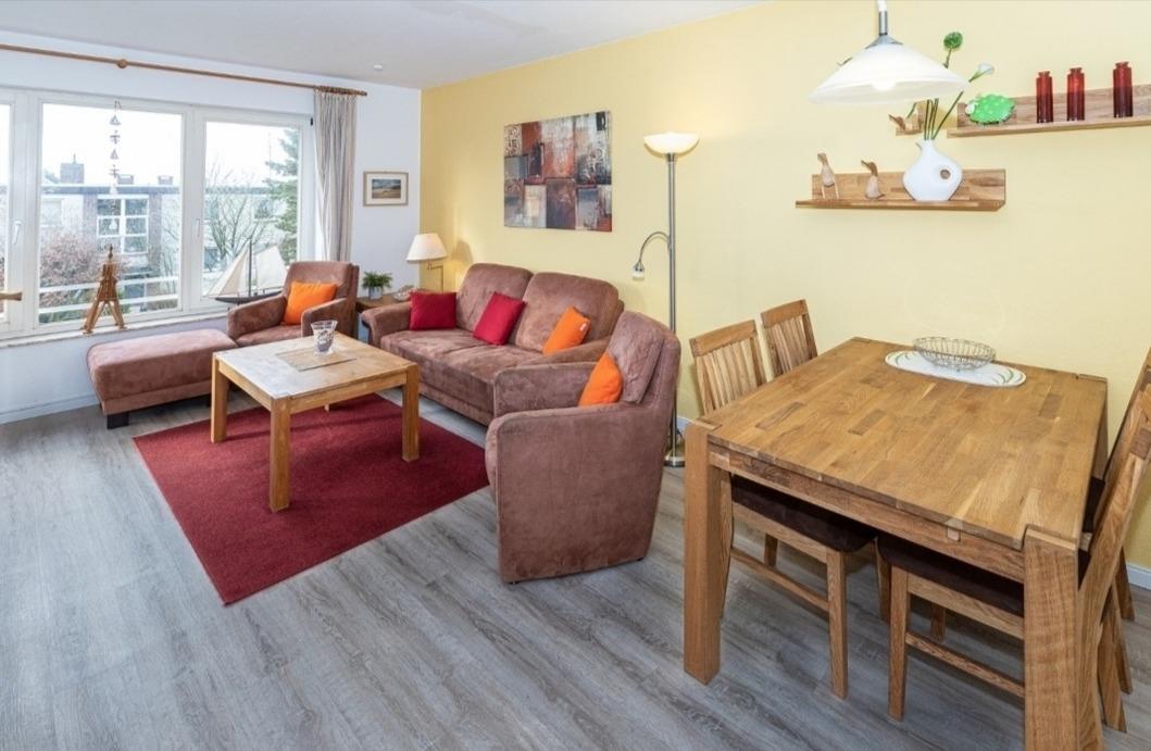 Duhnen, Rugenbargsweg 68. In diesem gemütlichen und schön gelegenen 3-Raum Ferienquartier erwarten Sie helle Räume für bis zu 4 Personen. Die Ferienwohnung ist komplett mit Laminat ausgestattet und daher Allergiker freundlich. Der Wohn- und Essbereich ist ausgestattet mit einem großen Esstisch und einem Wohnbereich mit Couch und 2 Sesseln. Der Zugang zum Westbalkon mit schönem Blick erfolgt vom Wohnzimmer. Die beider Schlafzimmer sind einmal mit einem Doppelbett und einmal mit 2 Einzelbetten eingerichtet. Beide haben einen Kleiderschrank, so dass auch für die längere Reisezeit für Platz gesorgt ist. Die neue Einbauküche mit Geschirrspüler befindet sich im großen Eingangsbereich der Wohnung. Das moderne Duschbad mit fast bodentiefer Dusche, Fußbodenheizung, Handtuchheizkörper, ein großer Spiegelschrank und WC und Fenster ist in 2018 komplett neu saniert worden. Im Haus befindet sich noch eine gemeinschaftlich genutzte, gebührenpflichtige Sauna mit Ruheraum.