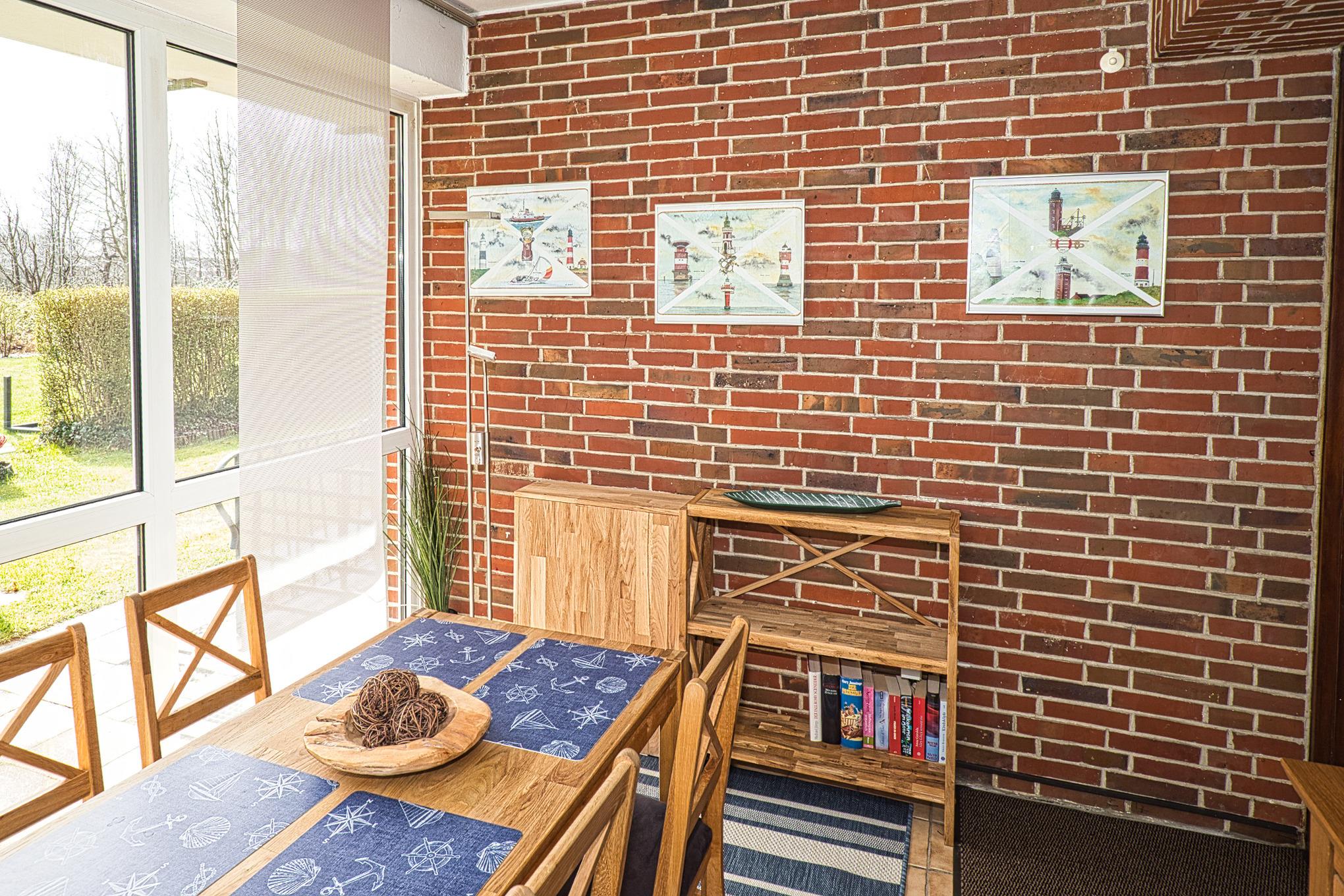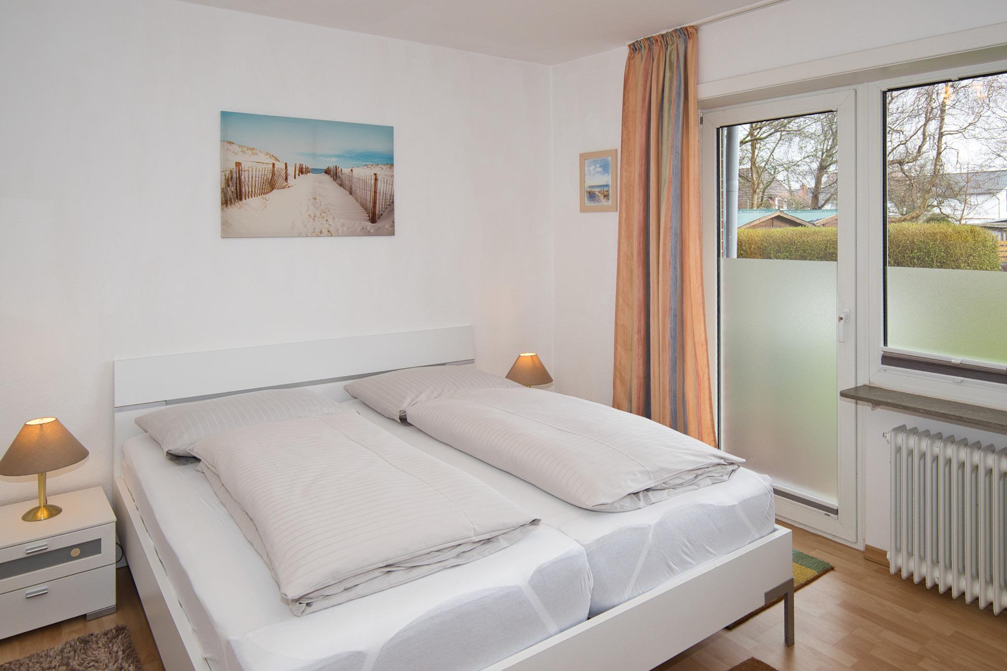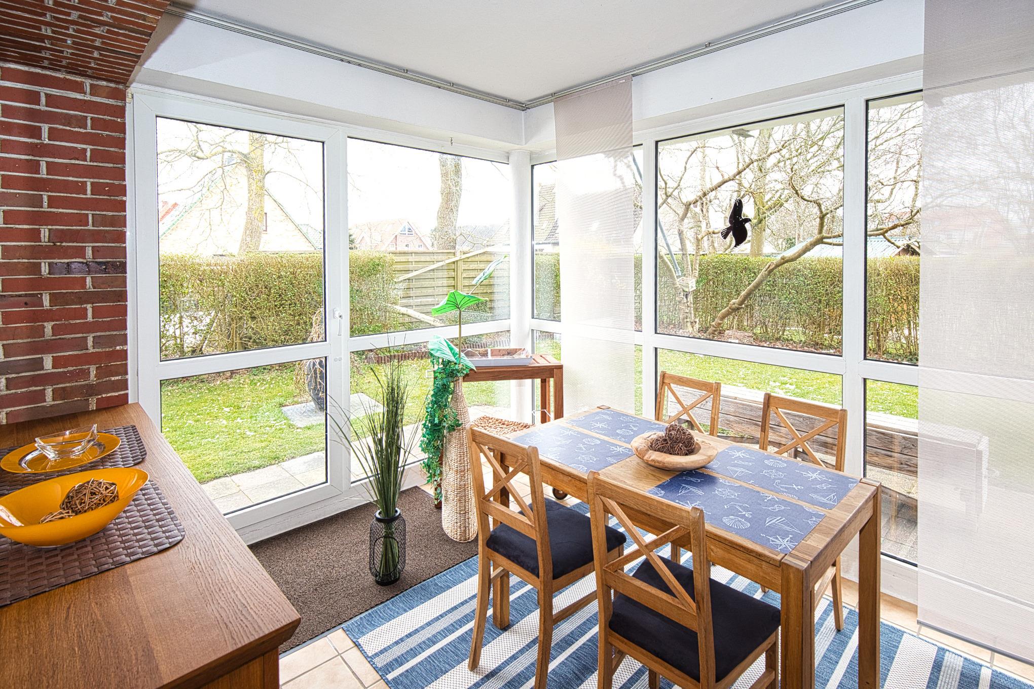 Haus Sonneck. Wohnung 4, Erdgeschoss, 4-Raum für bis zu 5 Personen, mit 3 Schlafbereichen. Ein gemütlicher, sowie heller Ess- und Wohnbereich mit einem kleinen Kaltwintergarten und angrenzender Terrasse bildet den Mittelpunkt dieser Ferienwohnung. Die sonnige Terrasse, sowie mehrere Sitzmöglichkeiten im großen Garten lassen Sie am Nachmittag und in den Abendstunden z.B. am Grill entspannen. Das Objekt ist ruhig in 2. Reihe am Sahlenburger Weg unweit zum Zentrum und Strand von Duhnen gelegen.