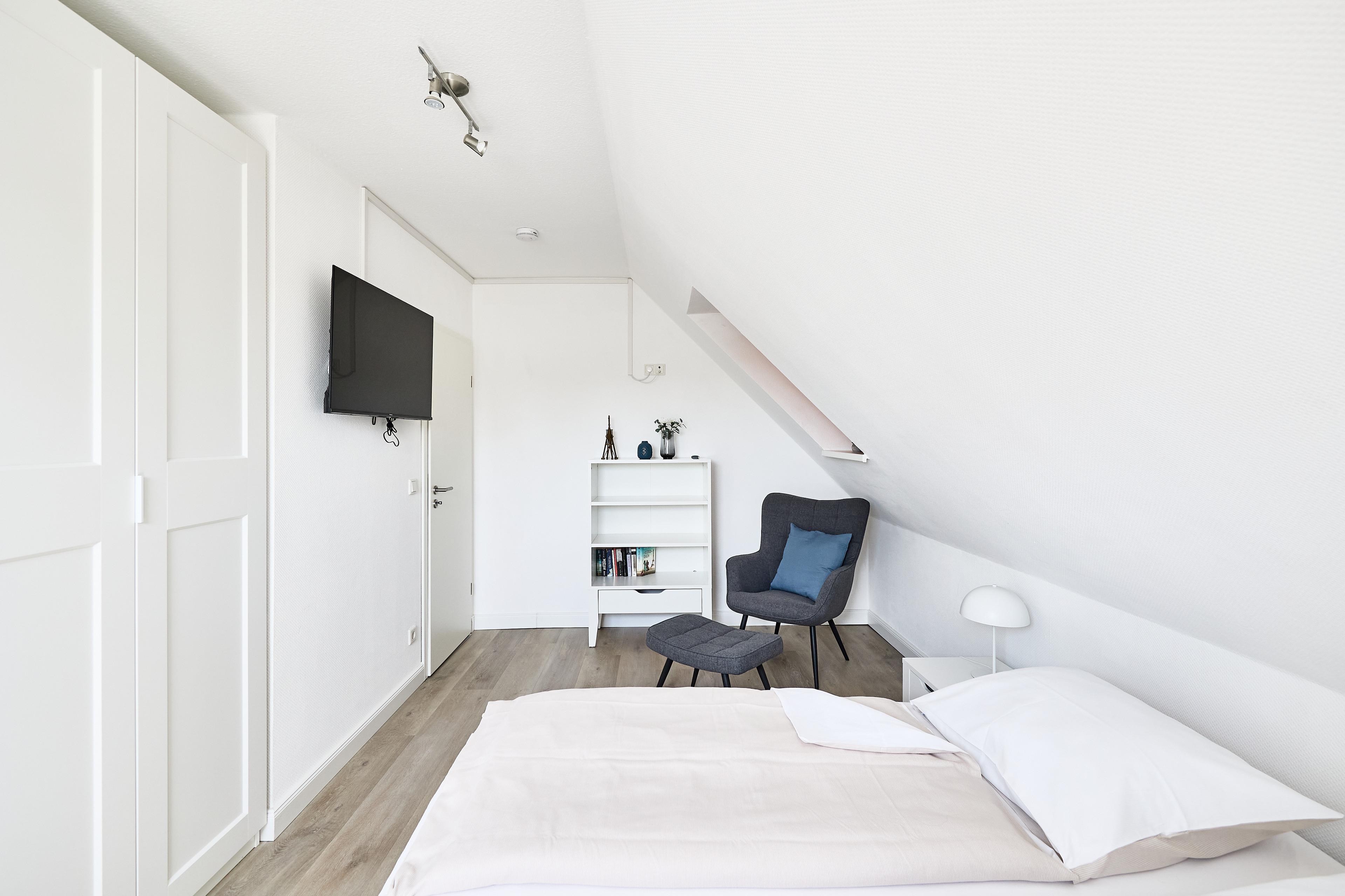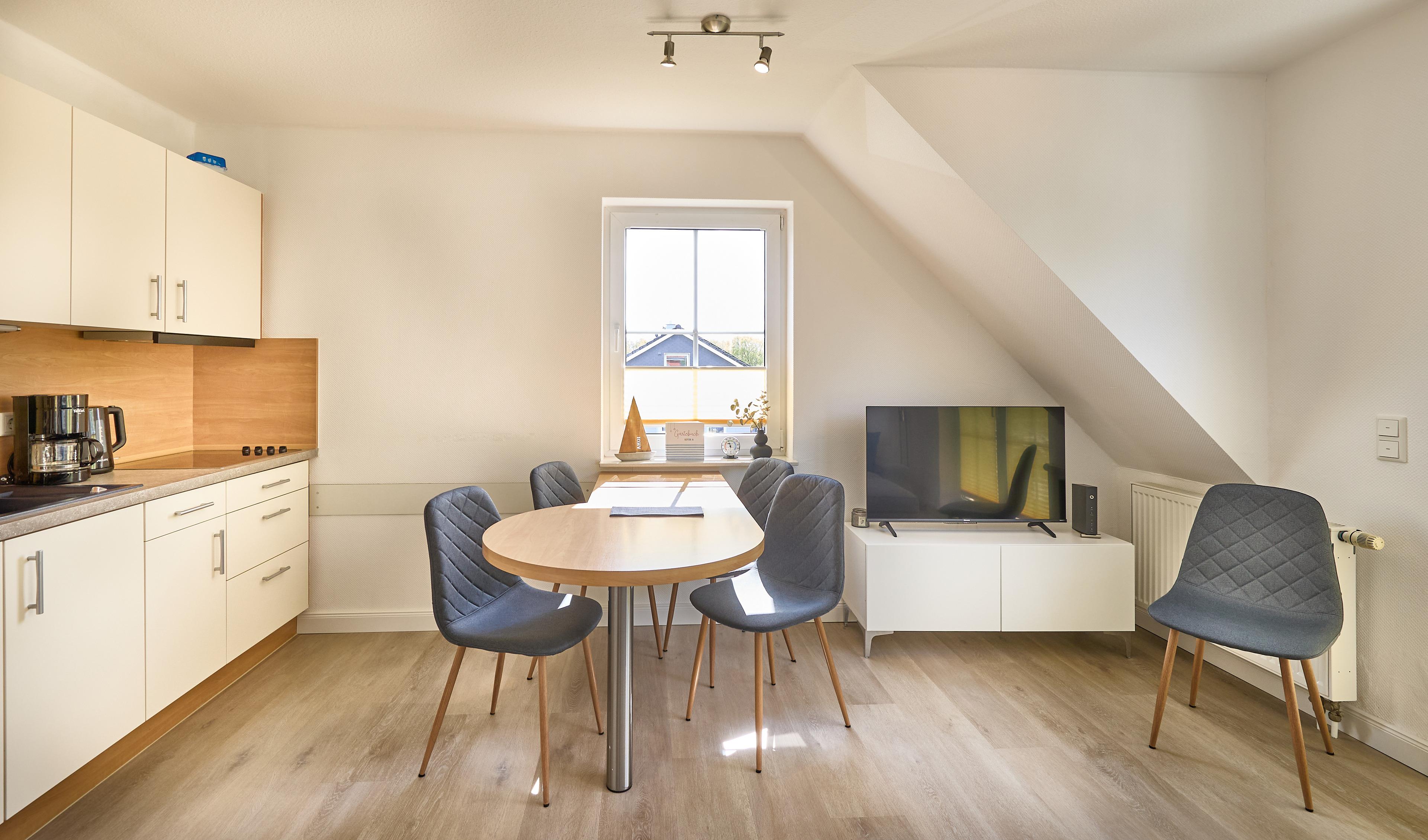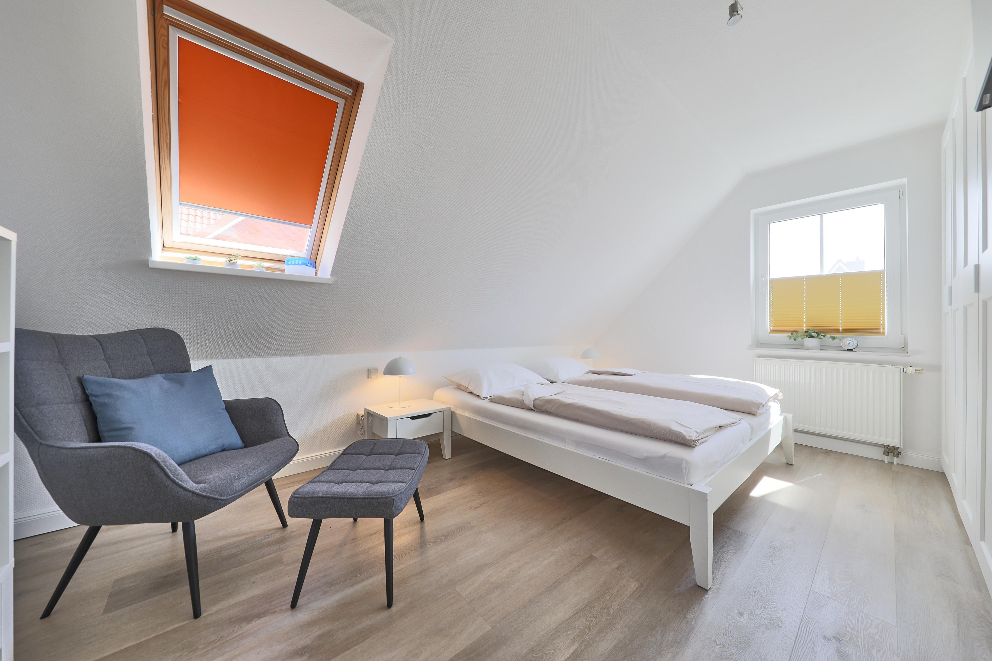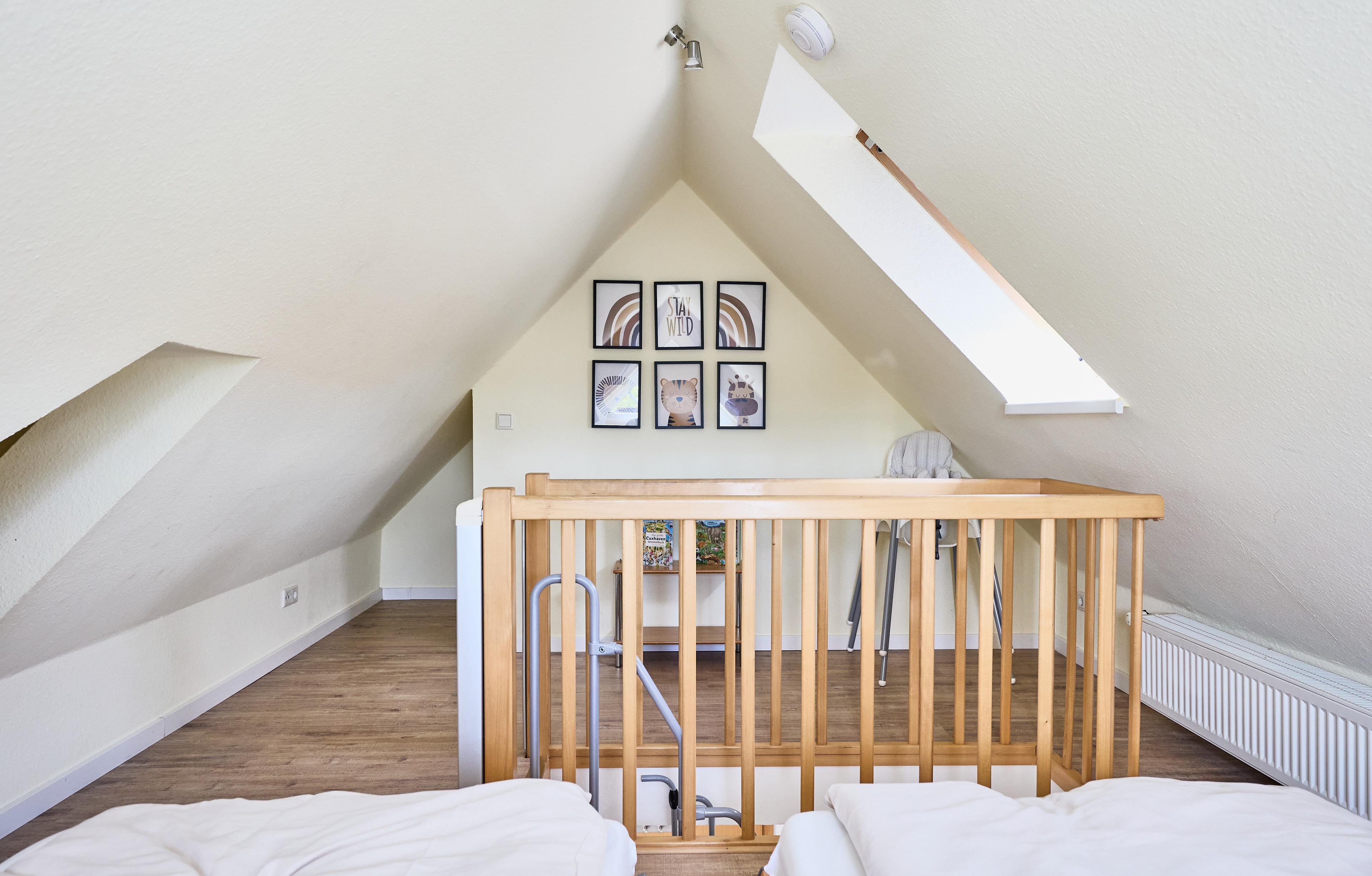 Die geräumige 3-Raum-Ferienwohnung erstreckt sich über ca. 64m² und bietet Platz für bis zu 4 Personen. Sie verfügt über ein separates Schlafzimmer mit einem gemütlichen Doppelbett sowie ein "Kinderzimmer" mit zwei Einzelbetten im Dachgeschoss. Für die kleinen Gäste gibt es einen speziellen Spielbereich im ausgebauten Dachgeschoss, wo sie sich austoben können.