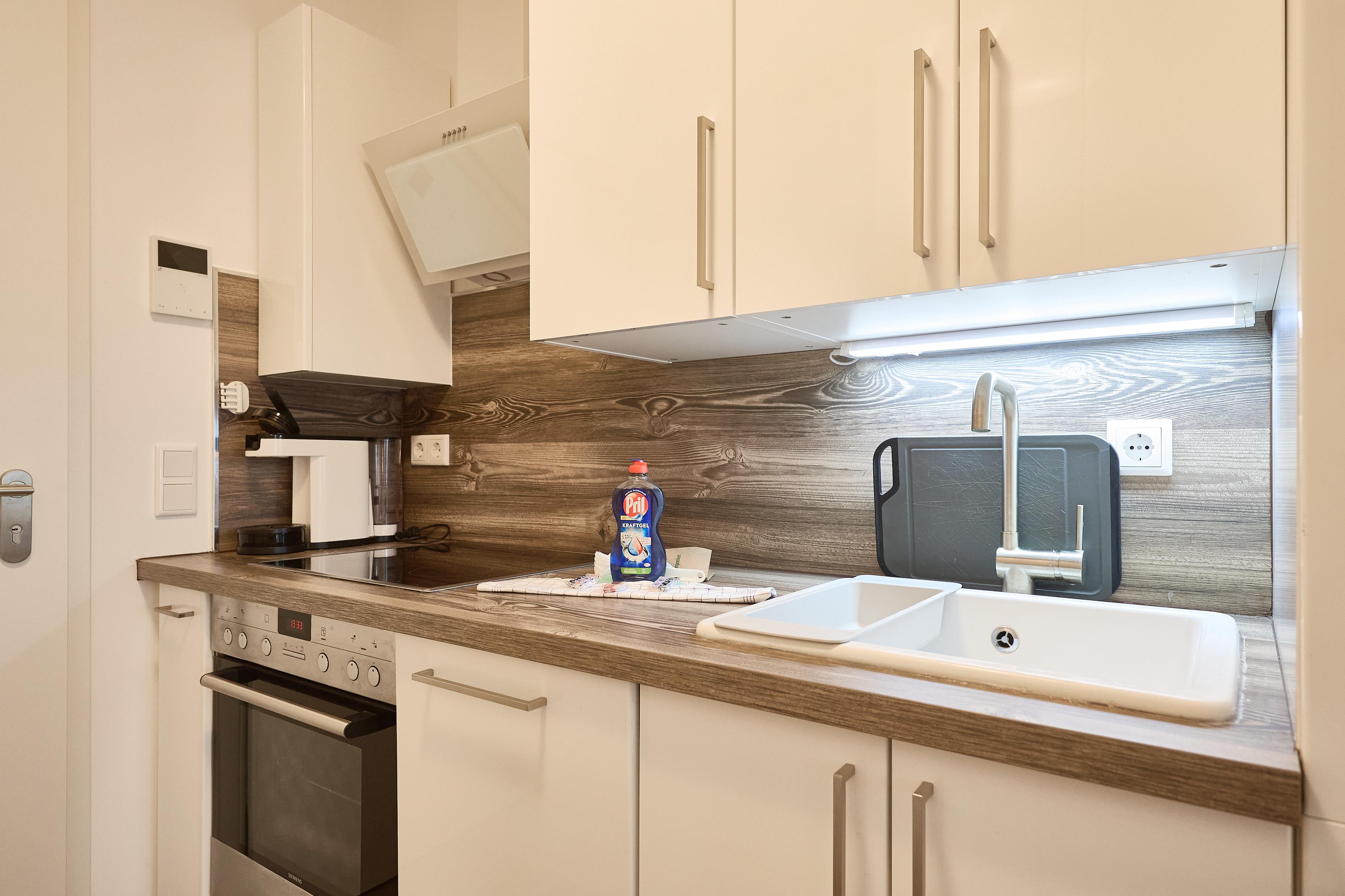Küche: Induktionskochfeld, Mikrowelle, Backofen, Geschirrspüler, Kühlschrank