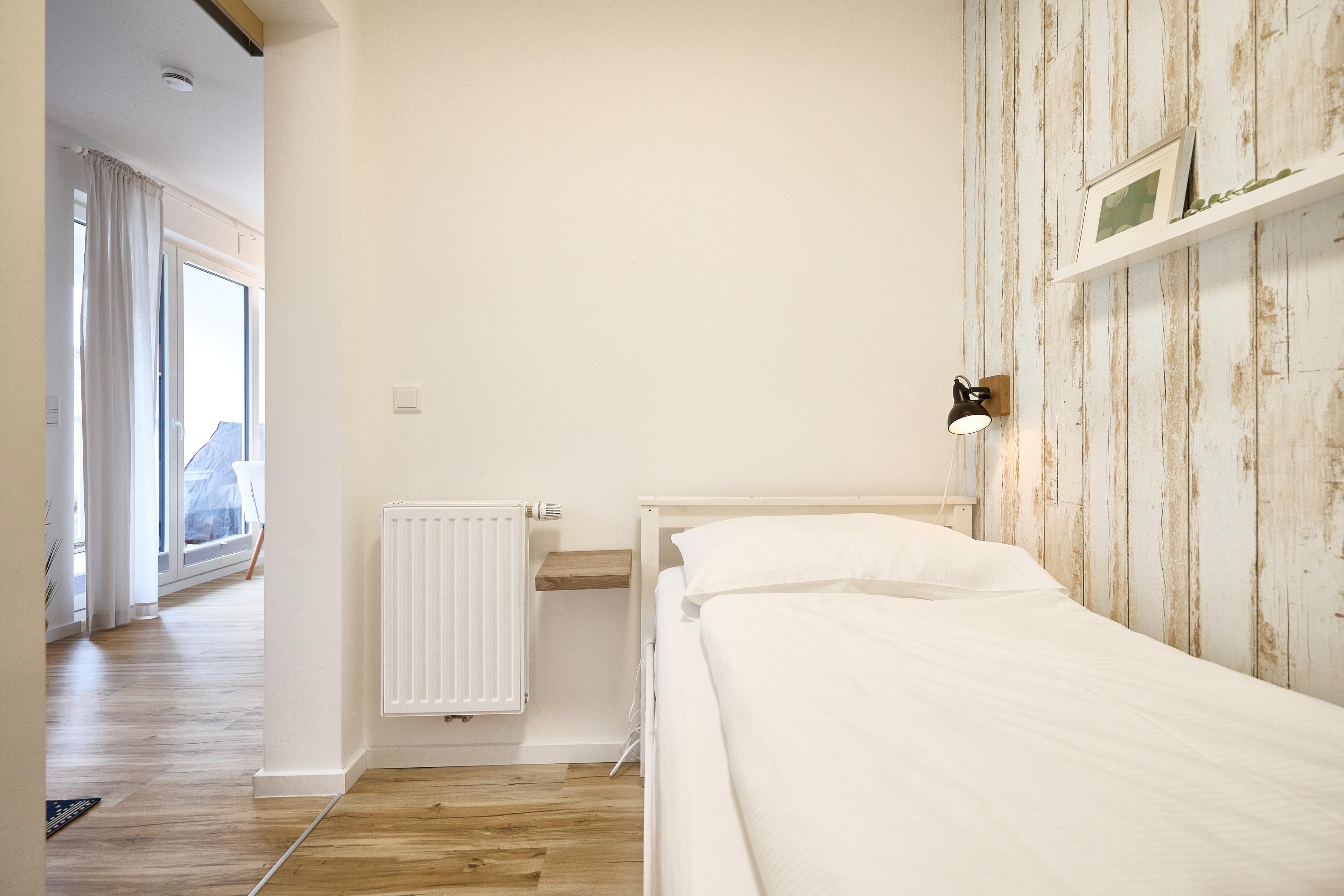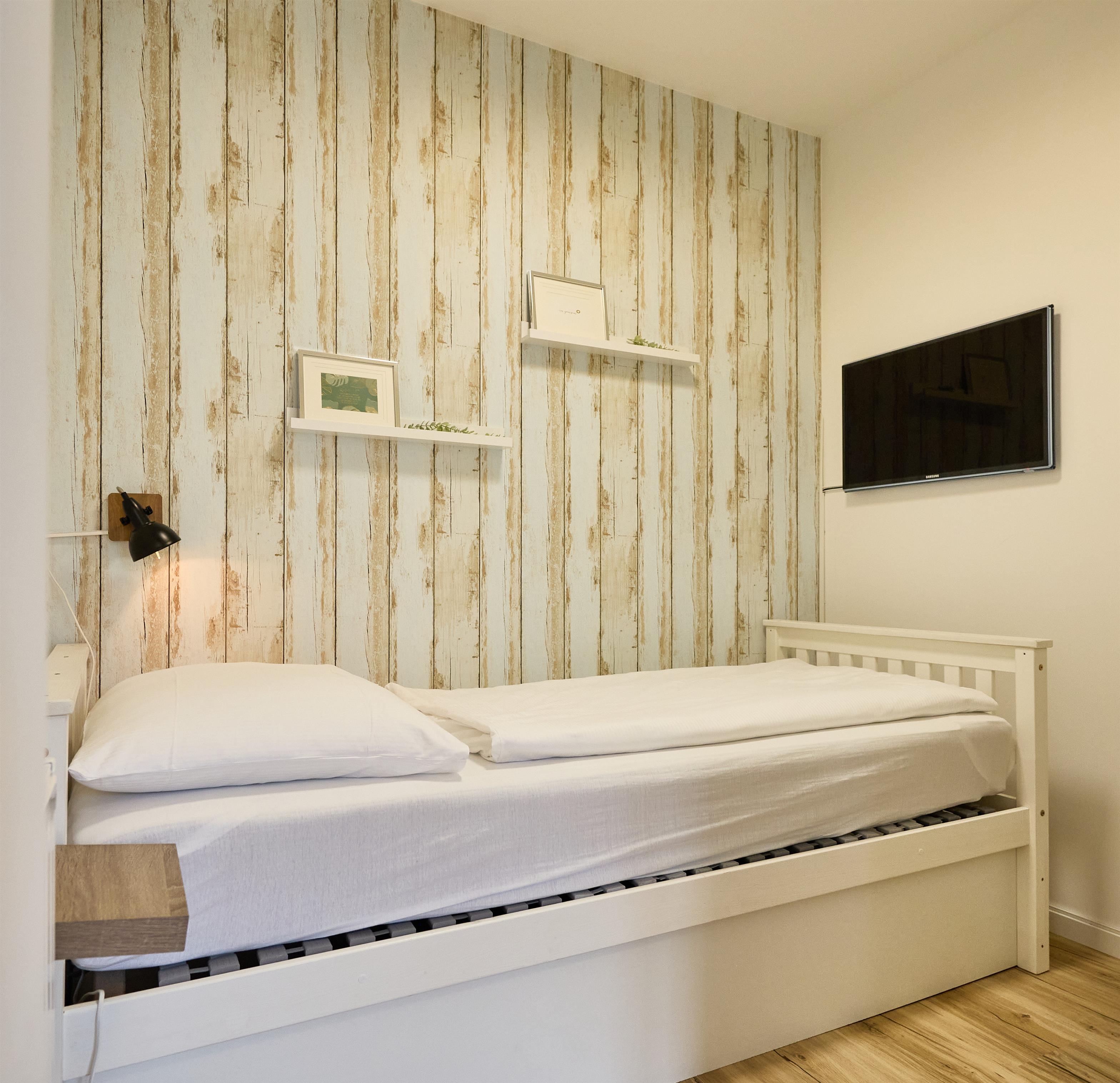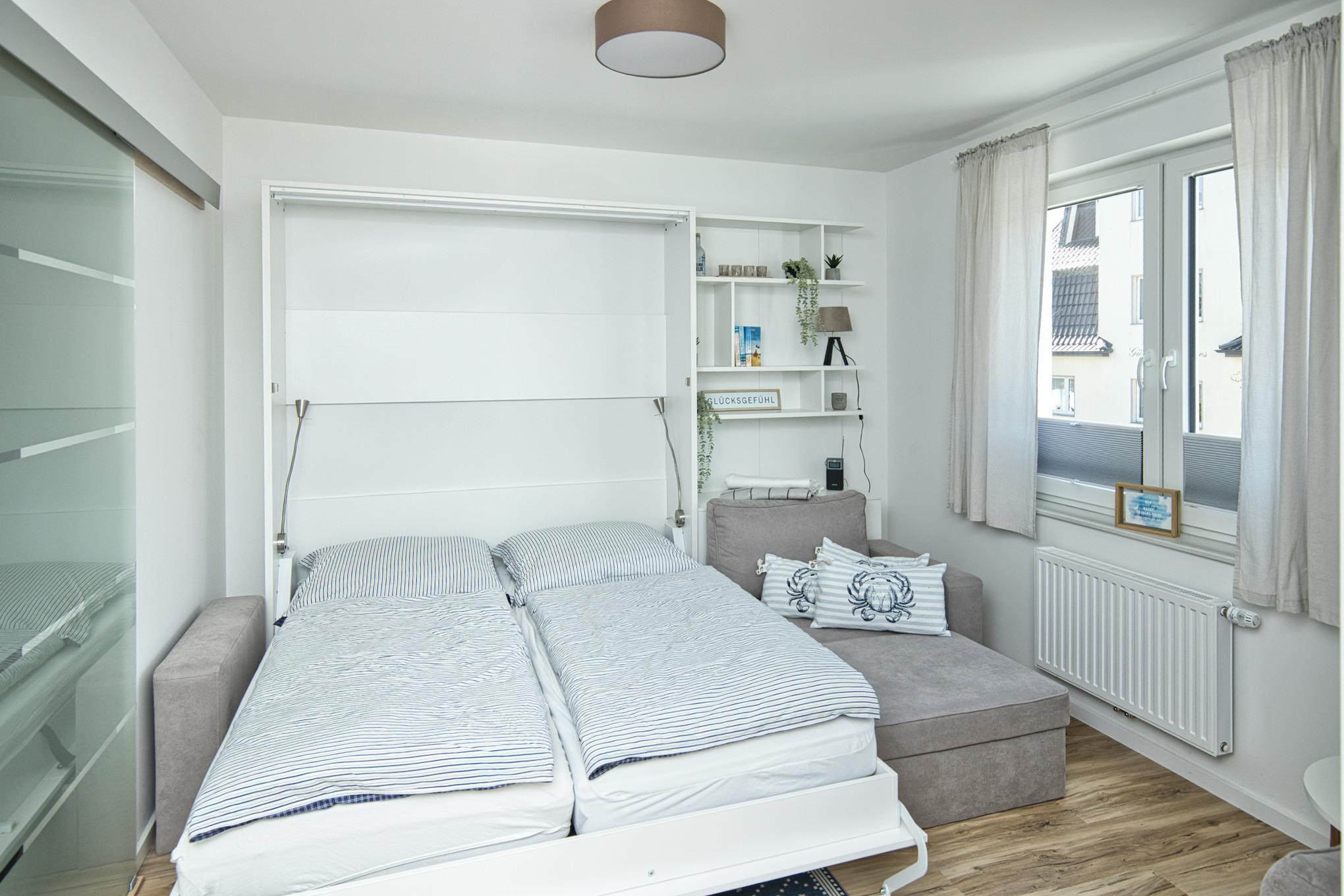 Der kleine extra Schlafbereich mit einem Einzelbett (90x200cm) ist der ideale Ort für erholsamen Schlaf. Zudem können Sie sich im Wohnbereich bei Bedarf auf der Schlafcouch (modernes und funktionelles Schrankbett 160x200cm - siehe Fotos)[nbsp] ausruhen, die mit einem extra Topper für hohen Schlafkomfort sorgt.