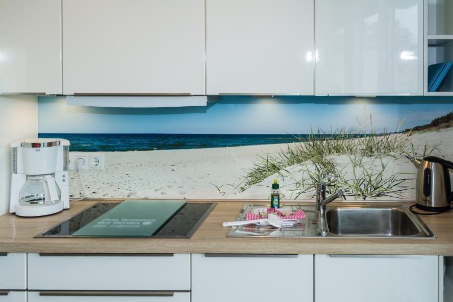 Die hochwertig ausgestattete und moderne 3-Zimmer-Wohnung wurde besonders familienfreundlich gestaltet. Für kleine Kinder stehen praktische Utensilien wie eine Wickelunterlage, ein WC-Sitz und Kindergeschirr bereit. Auch an Unterhaltung ist gedacht: Kinderbücher und Spielzeug sorgen für Freude, selbst an Regentagen. Der großzügige Wohnbereich lädt mit einer gemütlichen Couchgarnitur, einem Flatscreen-TV, einem Blu-Ray-Player und einer Bluetooth-fähigen Soundanlage zum Verweilen ein. An die Essecke grenzt die offene Einbauküche, die mit einem Ceranfeld, einer Backofen-/Mikrowellenkombination und einem Geschirrspüler ausgestattet ist. Zusätzliche Annehmlichkeiten wie eine Filter-Kaffeemaschine, ein Milchaufschäumer und ein Eierkocher machen die Küchenausstattung komplett.