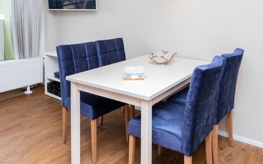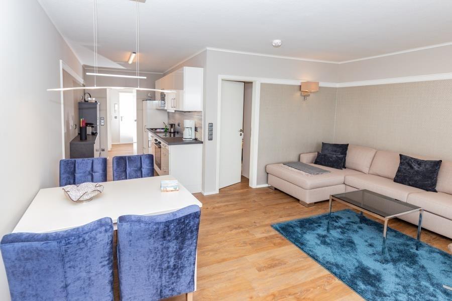 Das Appartement ist geschmackvoll und modern gestaltet. Klassisch-moderne Materialien, harmonische Farben und hochwertige Möbel sind sorgfältig aufeinander abgestimmt und vermitteln ein ruhiges, angenehmes Wohngefühl. Durch die zentrale Lage befinden sich Strand, Promenade, Gastronomie und Einkaufsmöglichkeiten direkt vor der Tür.