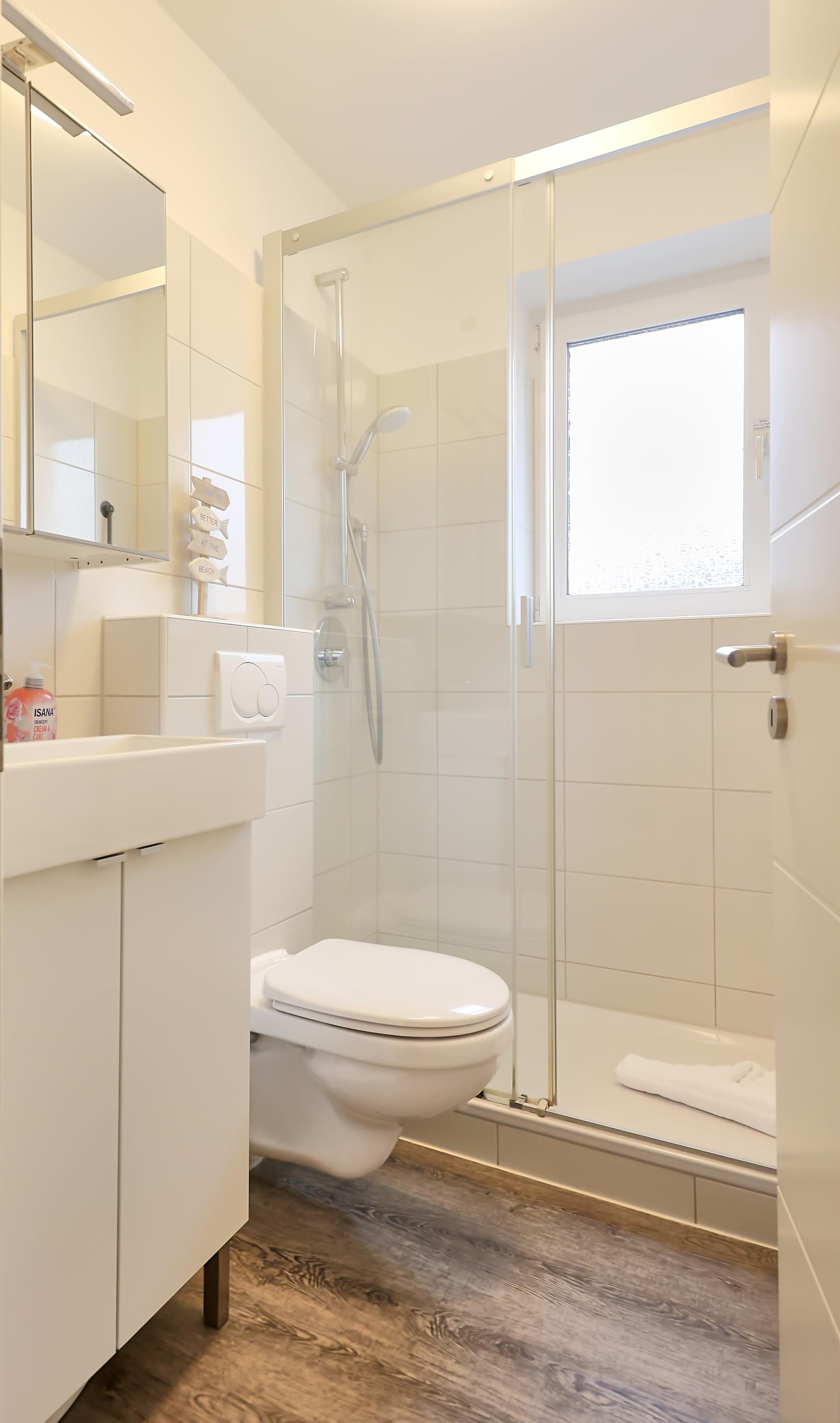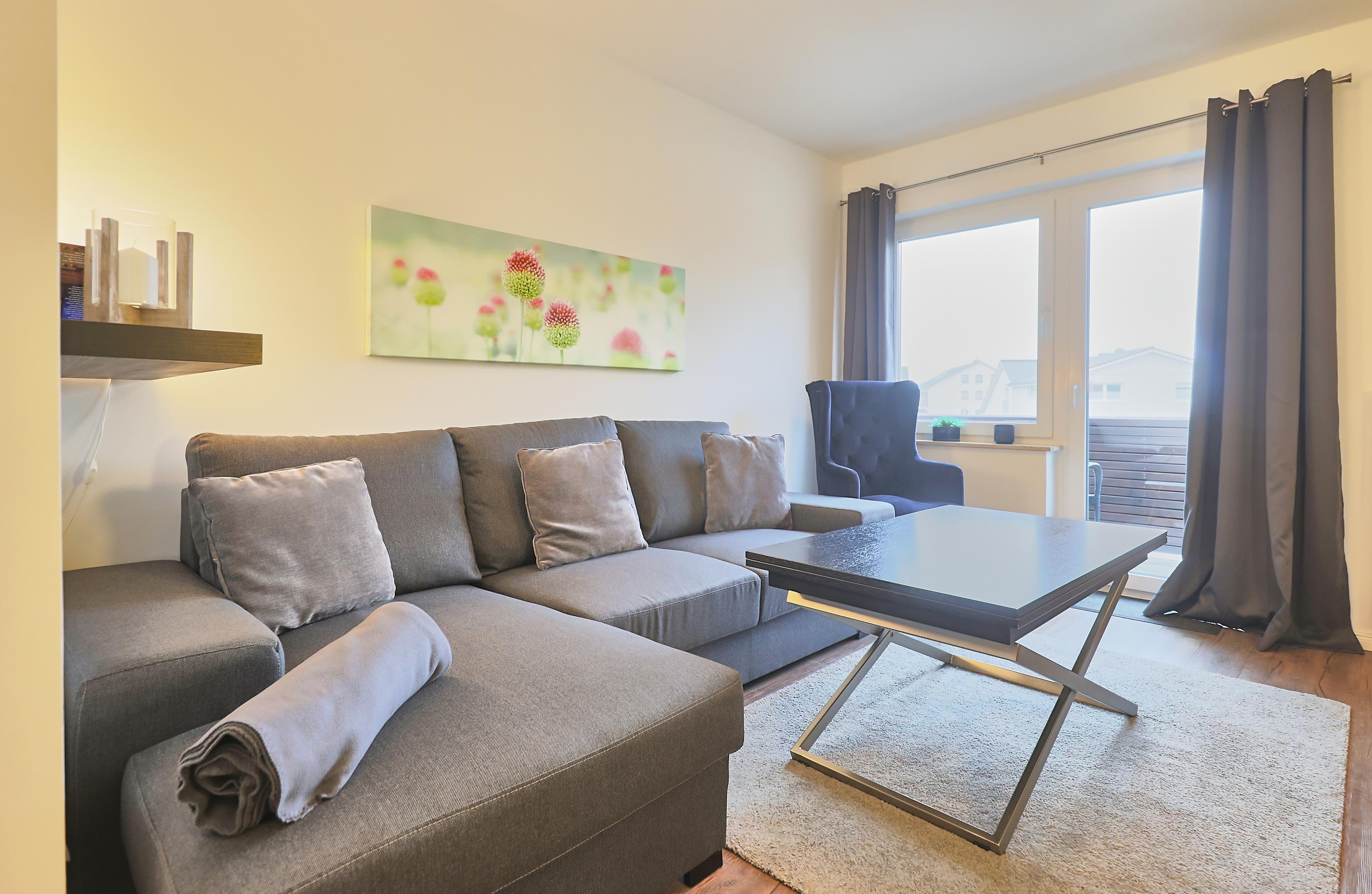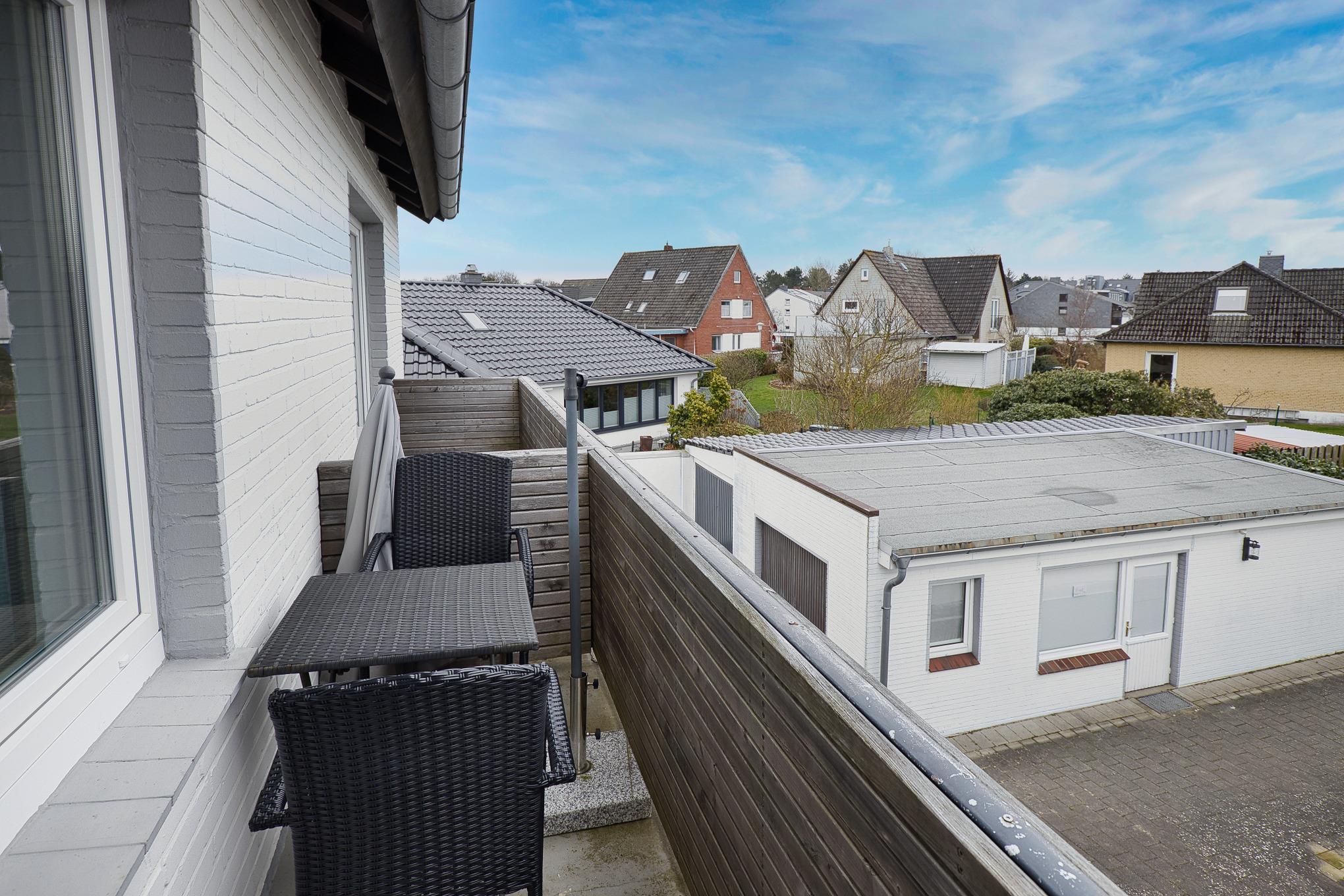 Am Pier 12 - Ferienwohnung Nr. 2 im 1. OG. Die Wohnung ist für max. 4 Personen ausgelegt. Diese Wohnung bietet 2 Schlafzimmer; im ersten Schlafzimmer befindet sich ein Boxspring-Komfort-Doppelbett. Der zweite Schlafraum verfügt über zwei bequeme Einzelbetten. Es steht Ihnen eine voll ausgestattete -separate- Küche mit Spülmaschine, Herd mit Cerankochfeld und Backofen, Mikrowelle, Toaster, Kaffeemaschine, Wasserkocher und Geschirr zur Verfügung. Das Wohnzimmer hat eine gemütliche Sitzecke mit einem LED Flat Screen TV. WICHTIG: Der Wohnzimmertisch ist variabel in einen Essplatz für bis zu 4 Personen umzufunktionieren. 2 Sitzsessel und 2 Klappstühle befinden sich hierfür in der Wohnung. Das Tageslicht Bad ist mit Dusche und WC ausgestattet. Ein sonniger Balkon mit Balkonmöbeln schließt an den Wohnraum an.