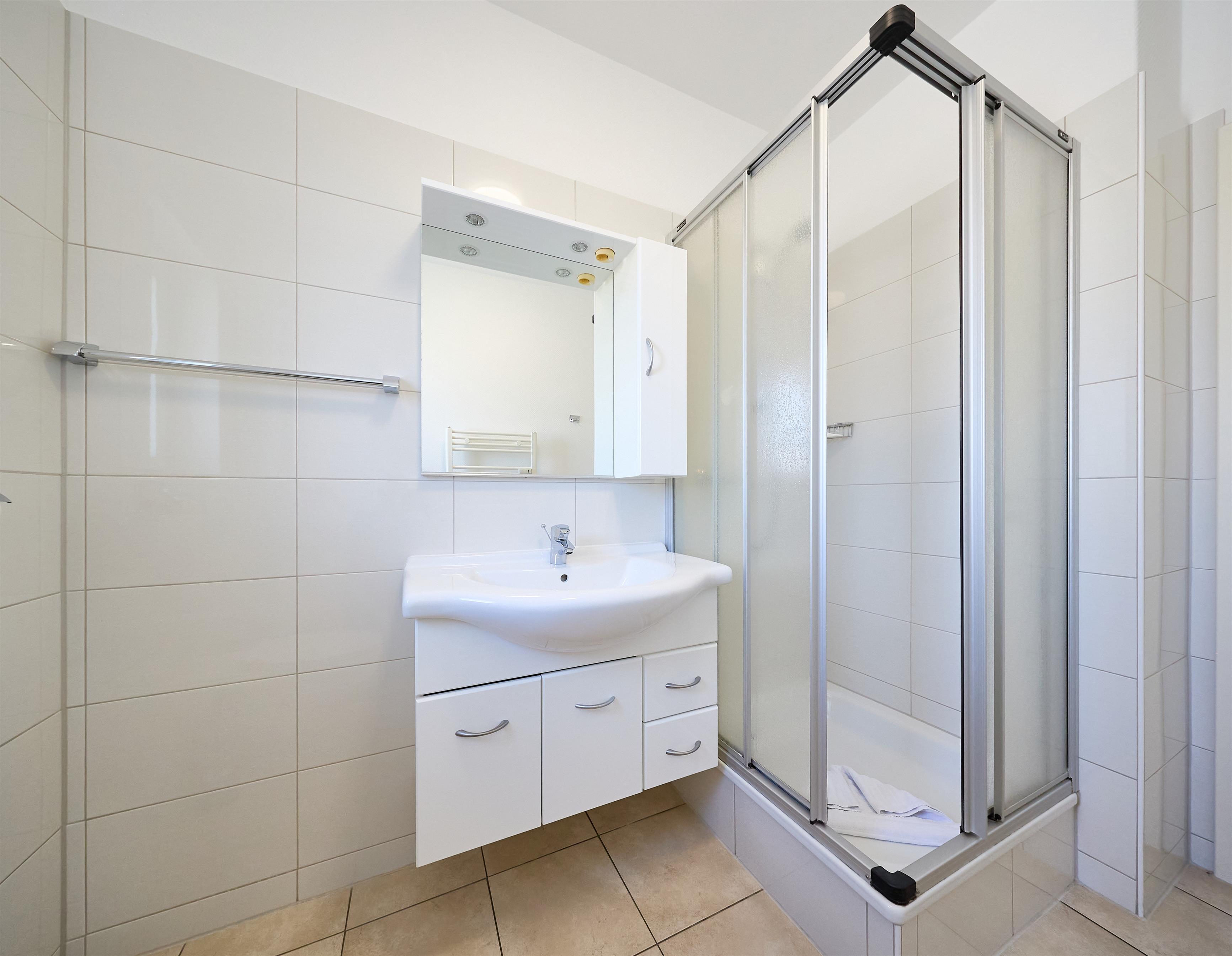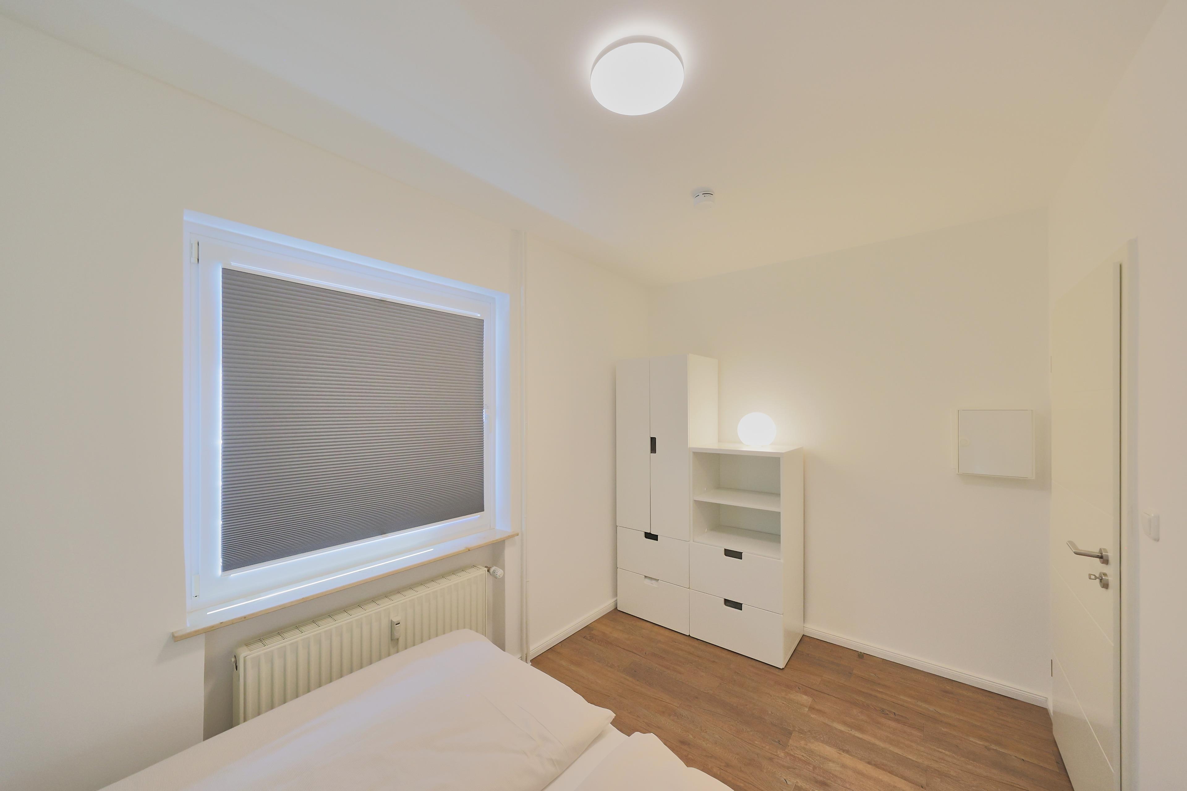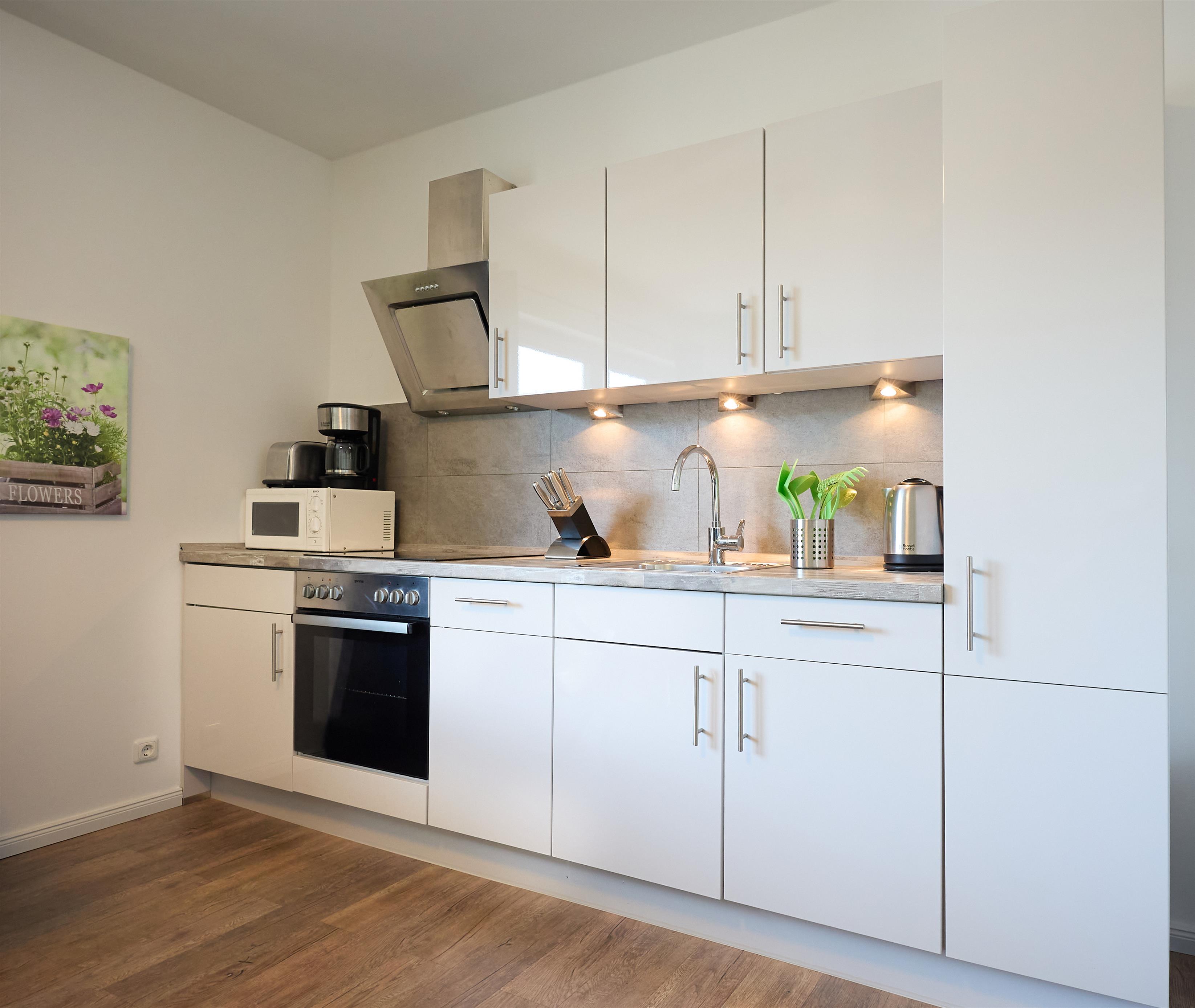 Pier 12 - Ferienwohnung Nr. 3 im haus Pier 12. Die Wohnung ist für max. 4 Personen ausgelegt. Das Schlafzimmer ist mit zwei Einzelbetten, die zu einem Doppelbett zusammenschiebbar sind, ausgestattet. Im Wohnraum ist noch eine Boxspringschlafcouch für 2 Personen vorhanden. Das Wohnzimmer verfügt über eine gemütliche Sitzecke und einen LED Flat-Screen TV sowie eine offene, voll ausgestattete, Küche mit Spülmaschine, Herd mit Cerankochfeld und Backofen, Mikrowelle, Toaster, Kaffeemaschine, Wasserkocher und Geschirr. Der Wohnzimmertisch ist zu einem großzügigen Essplatz für bis zu vier Personen variabel umfunktionierbar. Das Tageslichtbad hat eine Dusche und WC. Weiterhin hat die Wohnung eine schöne große sonnige Terrasse mit Terrassenmöbeln und Blick in den Garten.
