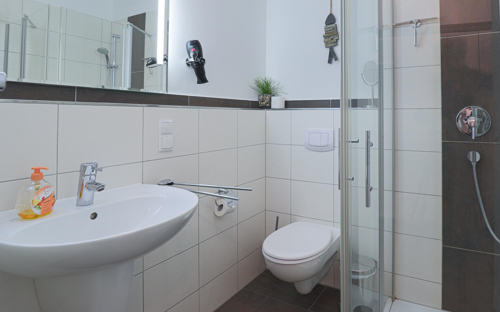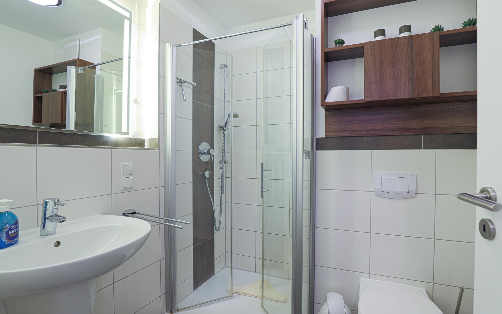 Zwei moderne Bäder – jeweils mit Dusche [&] WC – super praktisch bei mehreren Mitreisenden