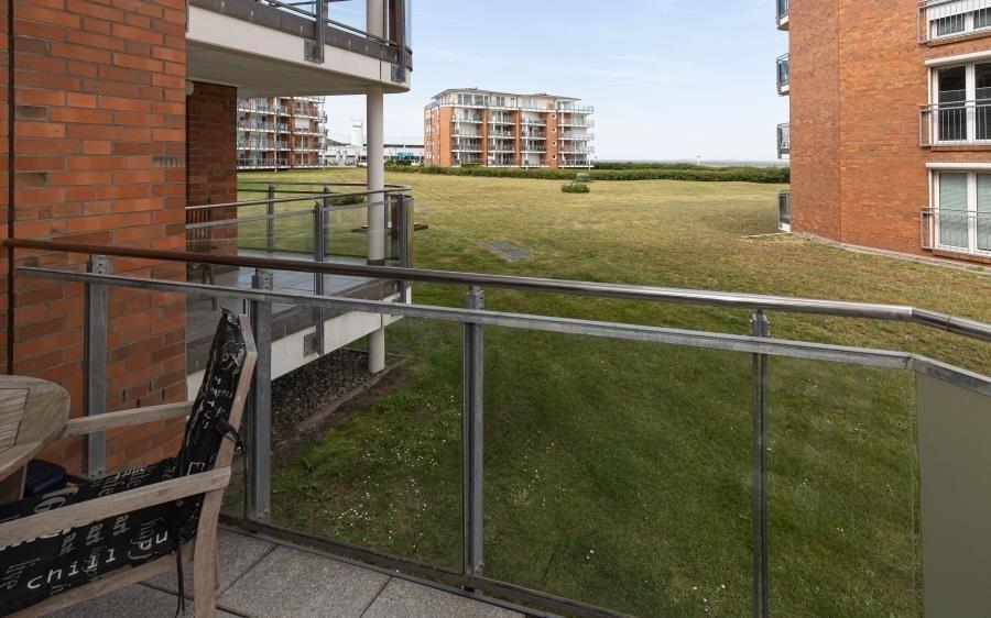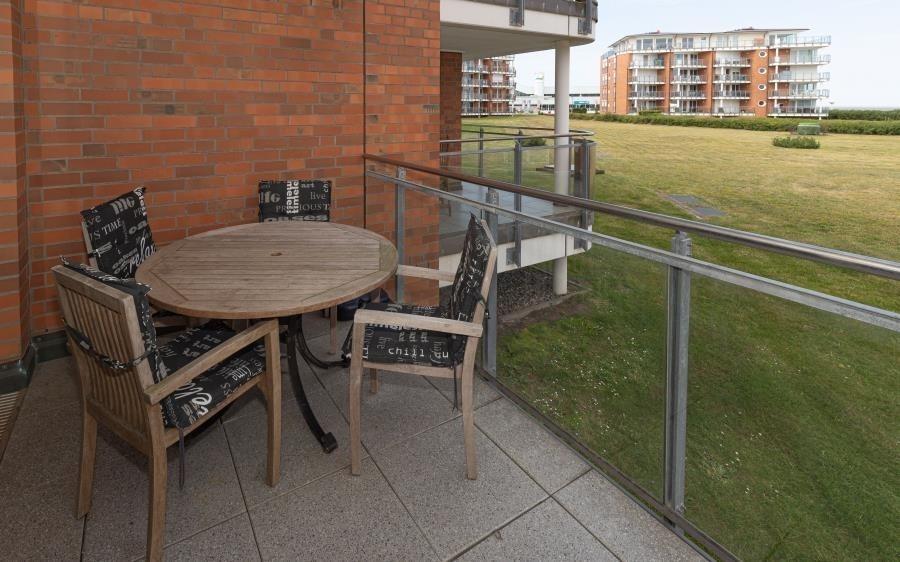 Balkon mit Seeblick auf Neuwerk und den Weltschifffahrtsweg