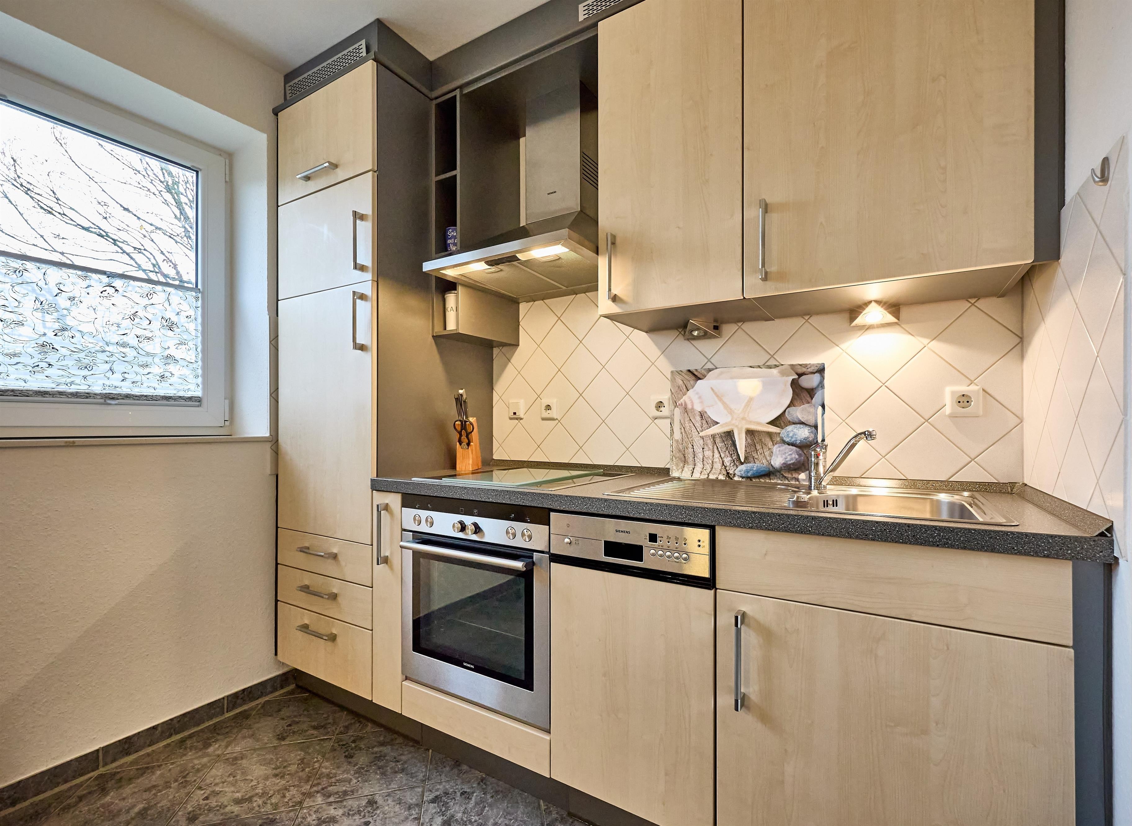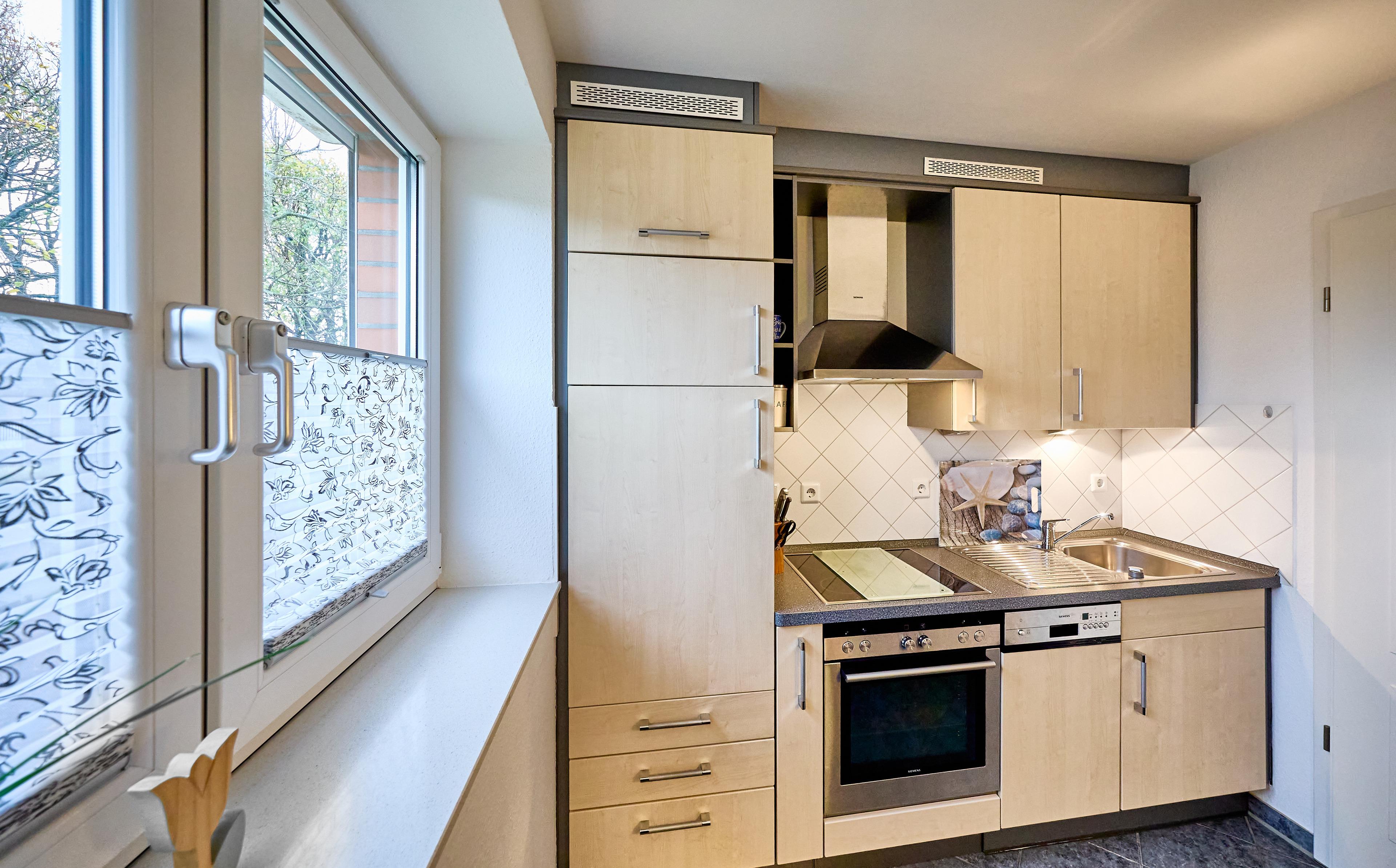 Die separate Küche ist voll ausgestattet und bietet ausreichend Platz, um auch bei nordischem Wetter gemeinsam zu essen und den Tag ganz entspannt zu beginnen. Und nach dem Kochen übernimmt ganz bequem die Spülmaschine den Abwasch.