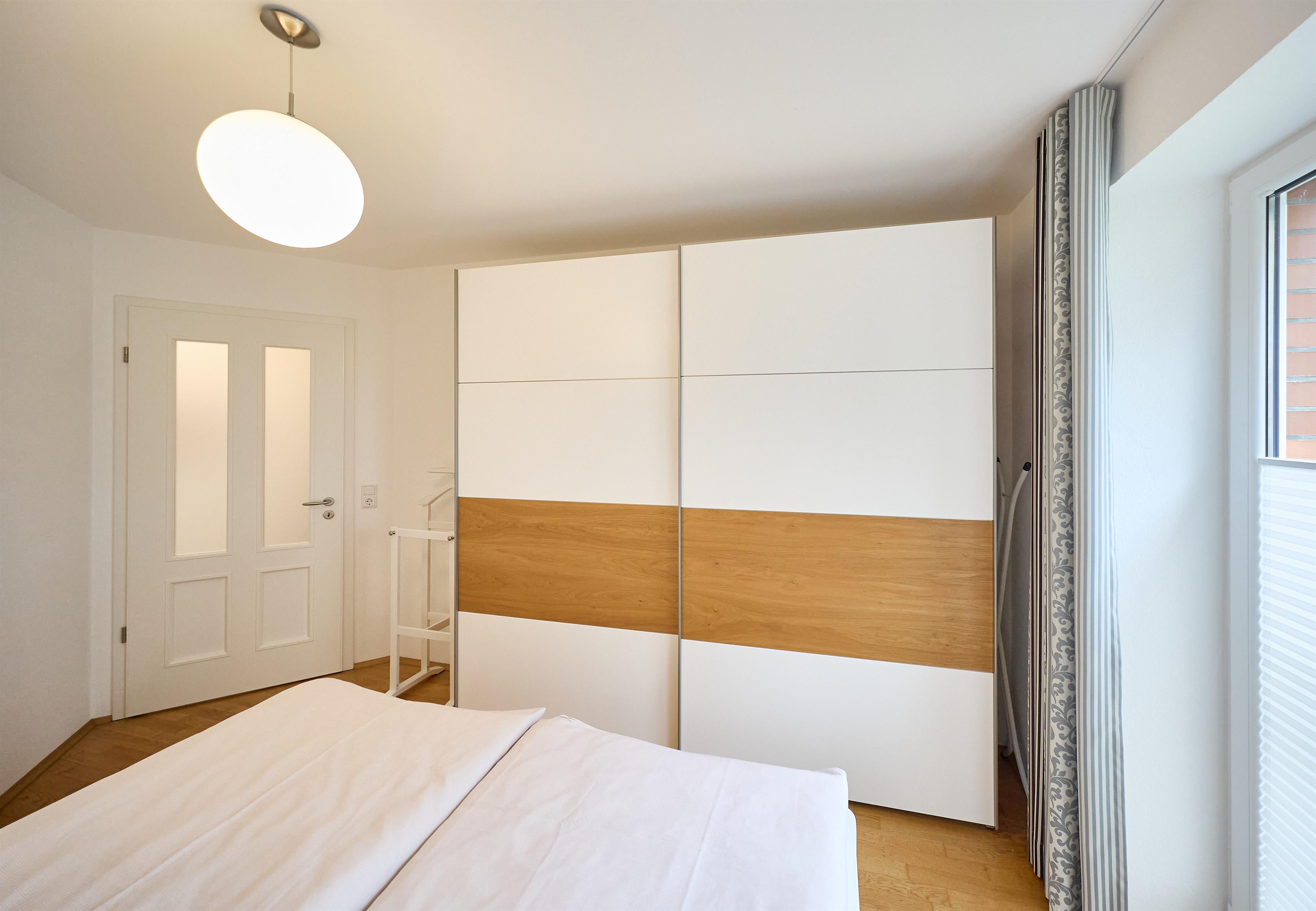 Zwei liebevoll eingerichtete Schlafzimmer mit komfortablen Doppelbetten sorgen für erholsame Nächte. Es ist ausreichend Platz für Ihre Kleidung vorhanden, sodass Sie sich auch bei längeren Aufenthalten wie zuhause fühlen können. Ein modernes Tageslichtbad mit Badewanne und Dusche sowie ein separates WC bieten zusätzlichen Komfort.