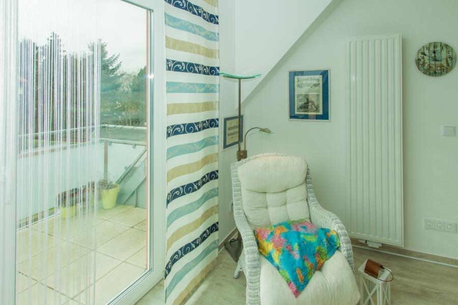Der Südbalkon bietet einen Blick ins Grüne in Richtung Gehweg zum Wehrberg und eignet sich gut, um den Tag entspannt zu beginnen oder ausklingen zu lassen.