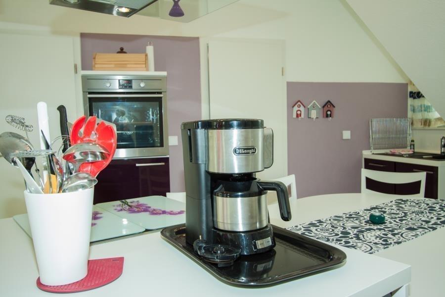 Die offen gestaltete Küche bildet den Mittelpunkt der Wohnung und ist mit dem Essbereich für bis zu vier Personen verbunden. Sie ist praktisch ausgestattet, unter anderem mit Induktionskochfeld, Geschirrspüler und weiteren Küchengeräten, die das Kochen im Urlaub unkompliziert machen.
