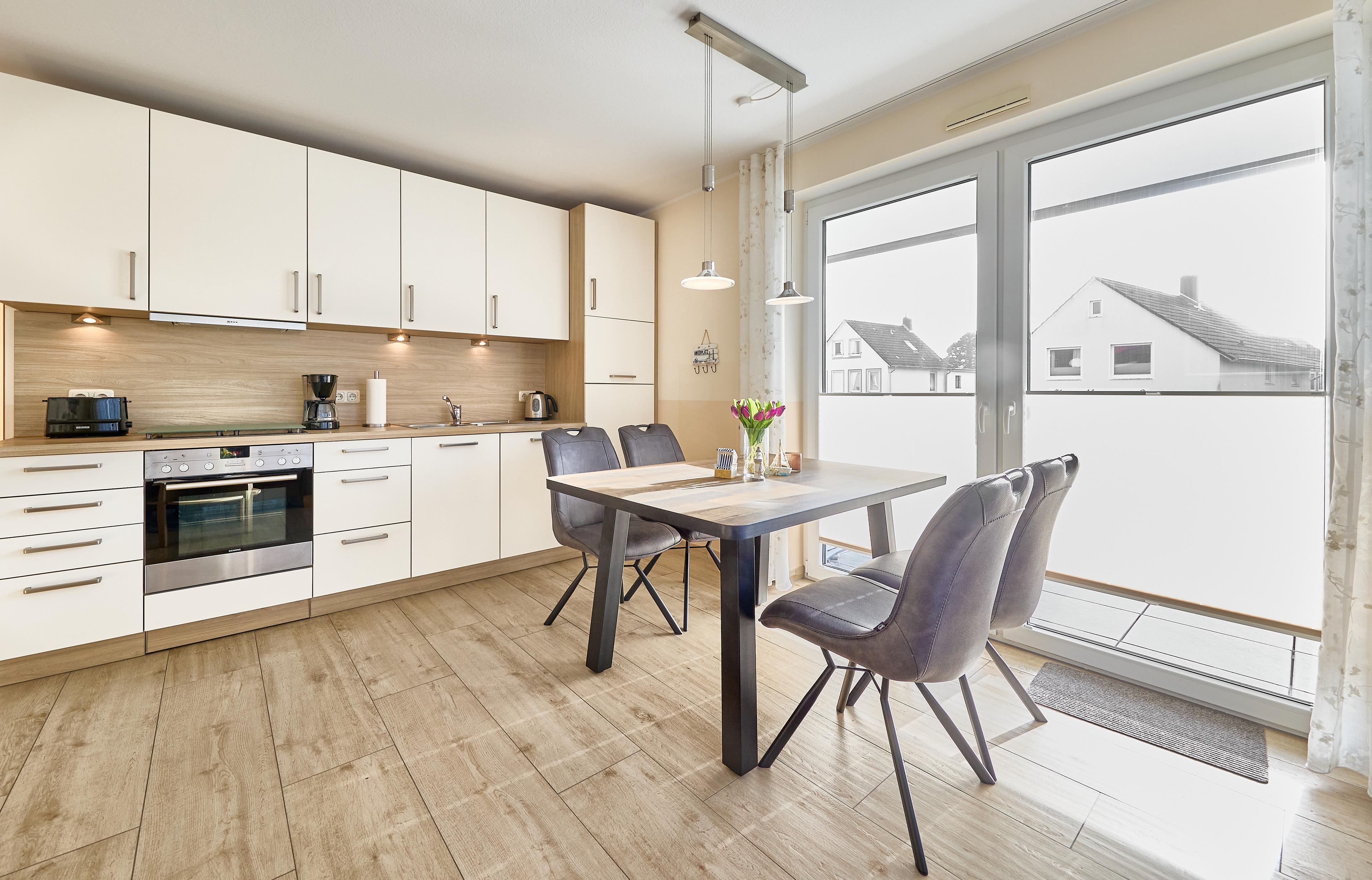 Diese Ferienwohnung ist ein wahres Juwel für 2-4 Personen (3 Erwachsene und 1 Kind). Sie erwartet eine hochwertige und gemütliche Einrichtung, bei der es an nichts fehlt. Der großzügige Wohn- und Essbereich beherbergt eine fantastische Einbauküche, das Schlafzimmer lockt mit einem bequemen Doppelbett und einem zusätzlichen TV. Ein weiterer Schlafbereich bietet ein Einzelbett und einen Duoausschub für ein weiteres kleines Abenteuerchen. Das Badezimmer verfügt über Dusche, WC und ein Fenster, und Ihr Auto findet einen bequemen Stellplatz direkt am Haus.