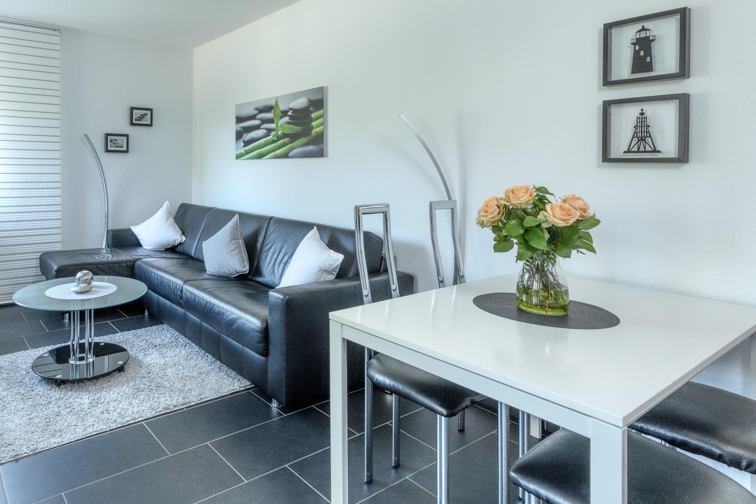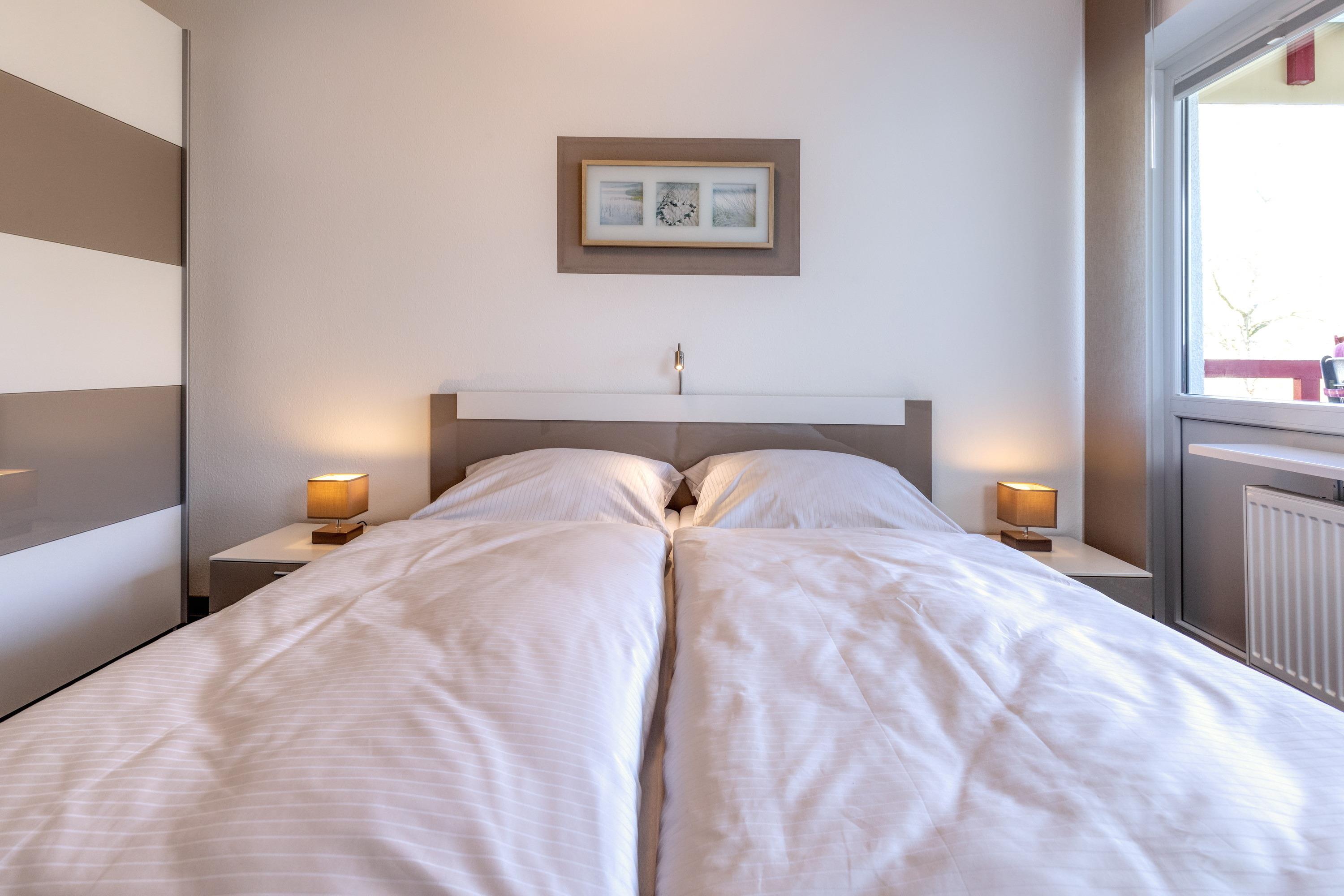 Das Appartement 20 ist ein 2-Raum-Appartement im 2. Obergeschoss für bis zu 3 Personen mit 39 qm. Der möblierte Westbalkon bietet morgens Schatten und nachmittags Sonne.