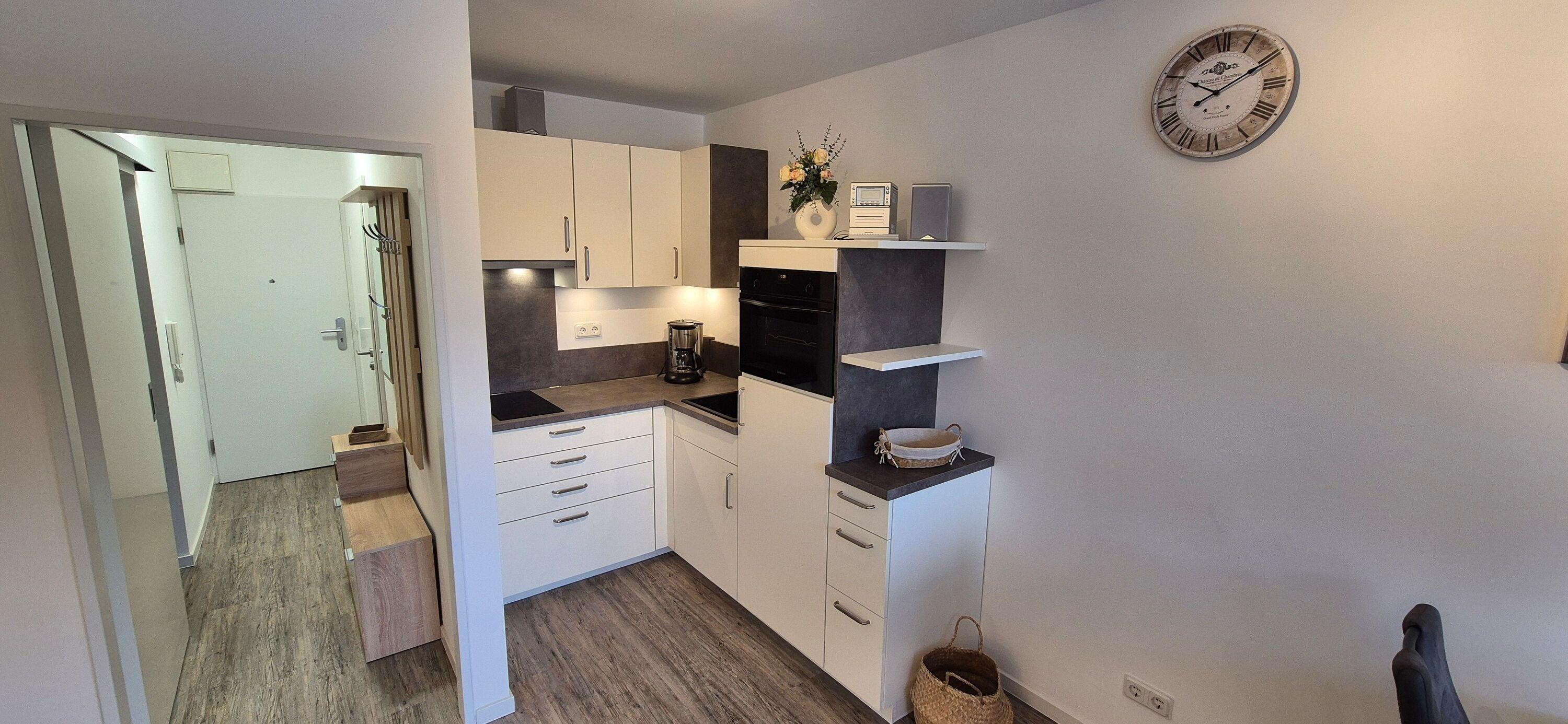 Das Apartment 24 ist ein 2-Raum-Apartment im 2. Obergeschoss für bis zu 4 Personen mit 38 qm. Der möblierte Ostbalkon bietet morgens Sonne und nachmittags Schatten.