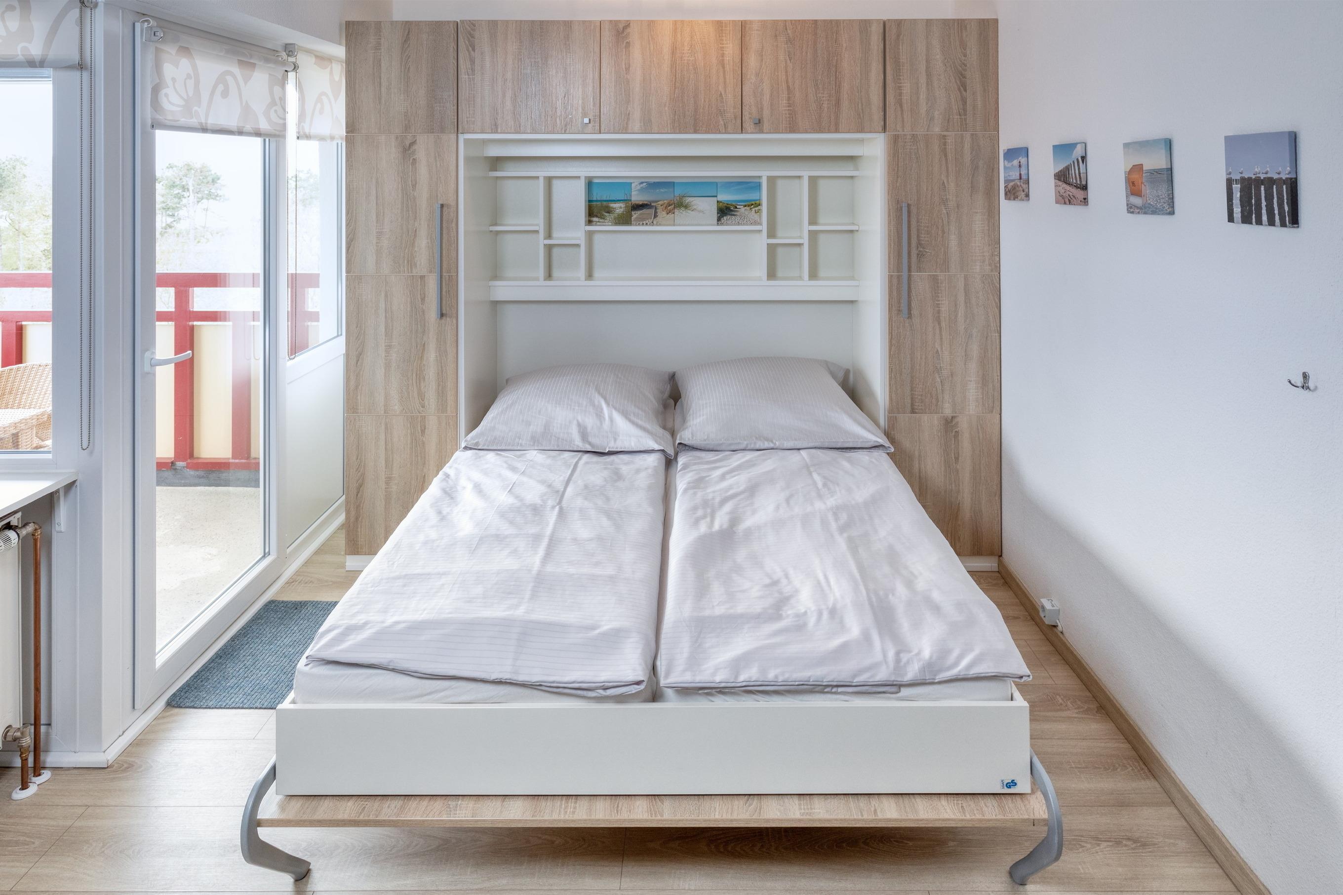 Das Apartment besteht aus einem Schlafzimmer mit Doppelbett, einem Wohnbereich mit ausklappbaren Schrankbett, eine voll ausgestattete integrierter Küche, einem Badezimmer mit Dusche sowie WC.