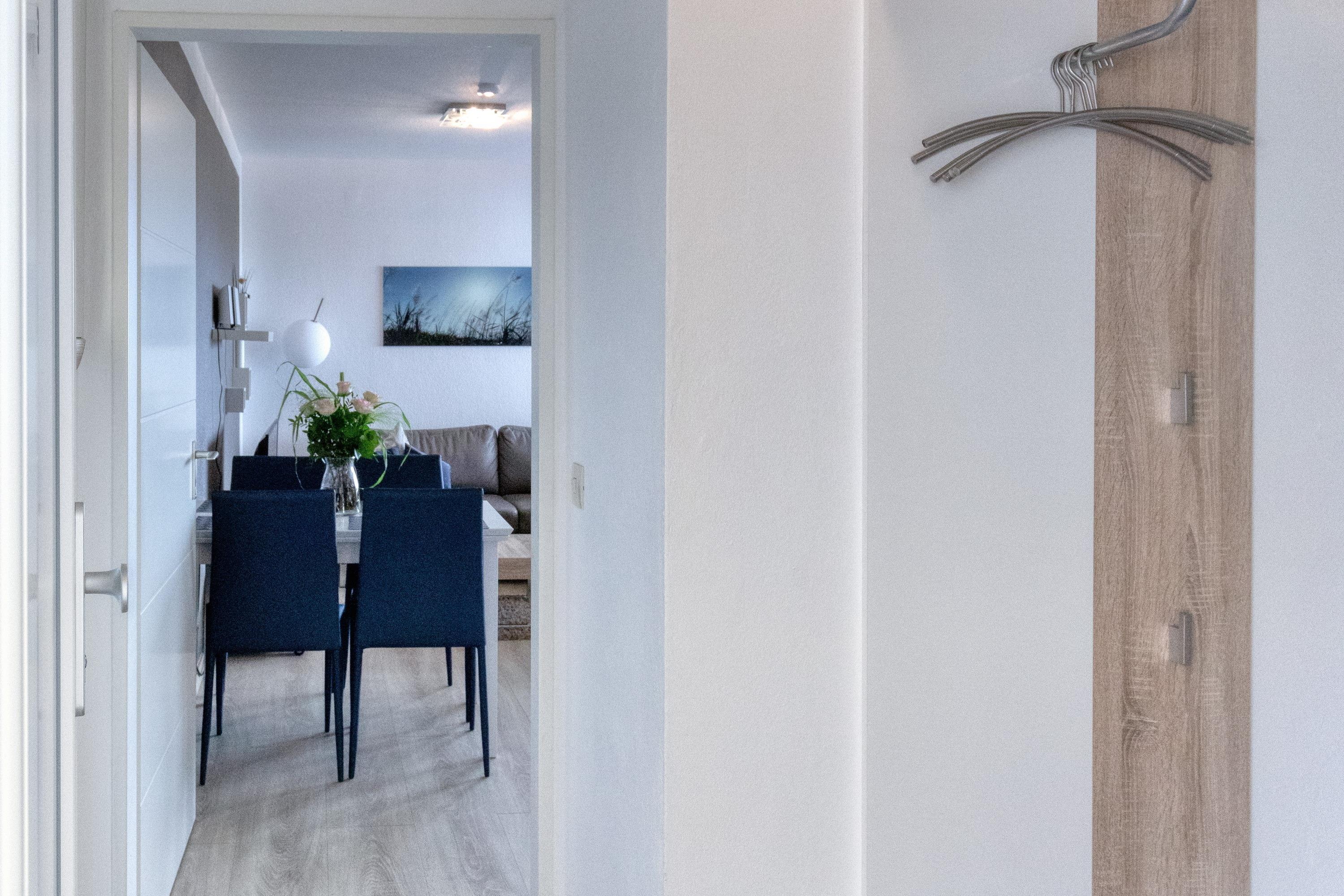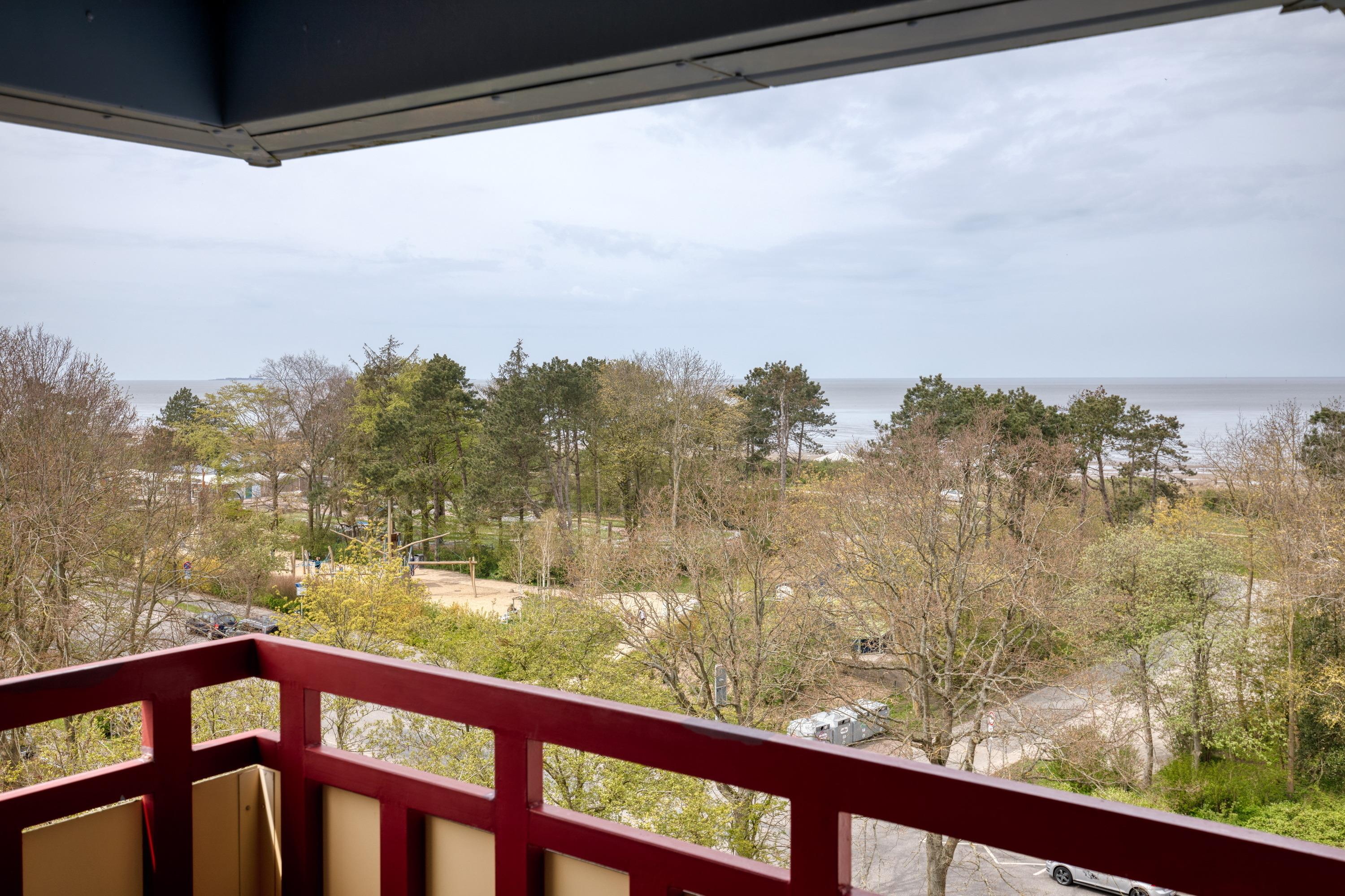 Das Apartment 73 ist ein 2-Raum-Apartment im 6. Obergeschoss für bis zu 4 Personen mit 35 qm. Der möblierte Westbalkon mit Meerblick bietet morgens Schatten und nachmittags Sonne.