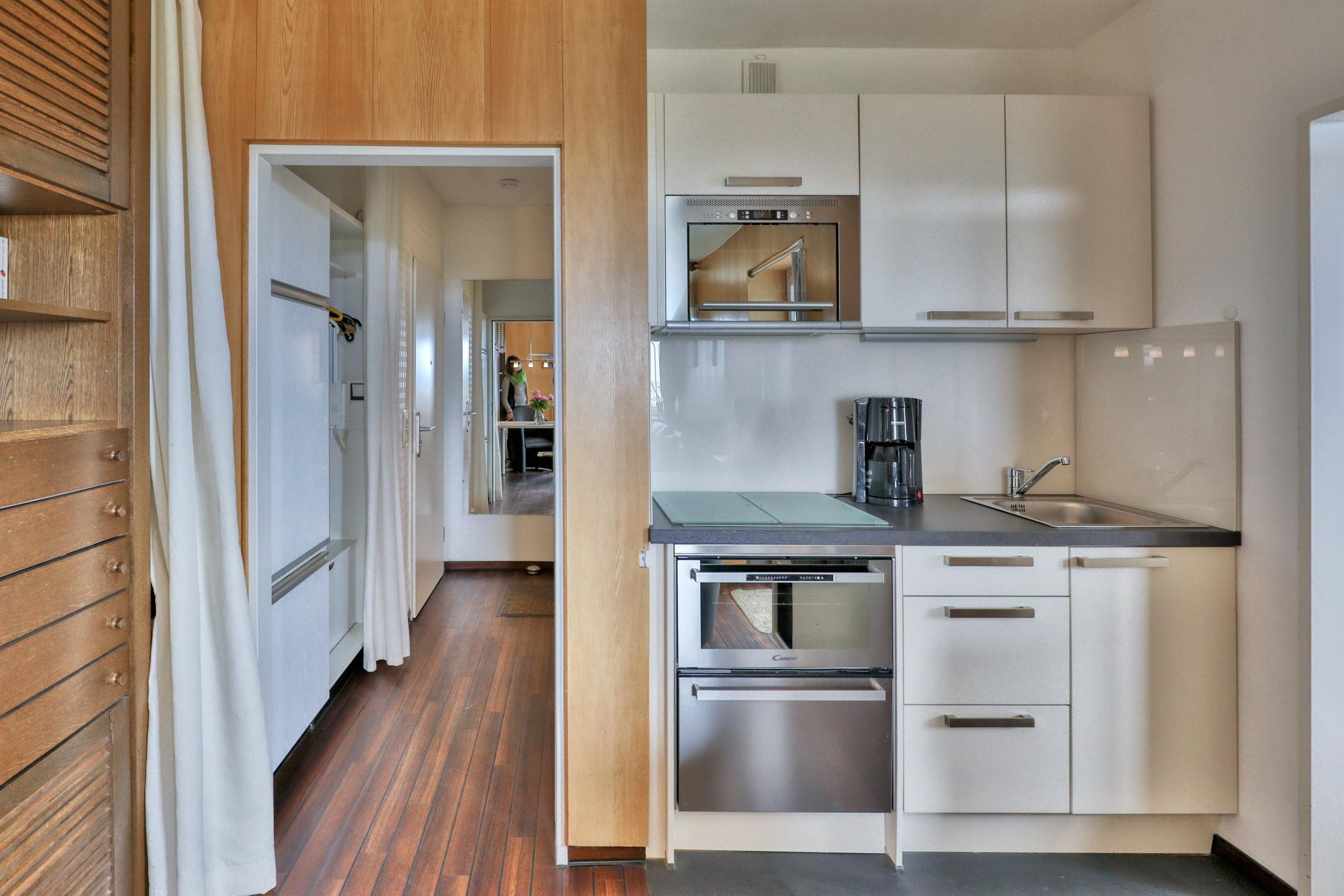 Das Apartment besteht aus einem Schlafzimmer mit Doppelbett, einem Wohnbereich mit ausziehbaren Schlafsofa, eine voll ausgestattete integrierter Küche, einem Badezimmer mit Dusche sowie WC.