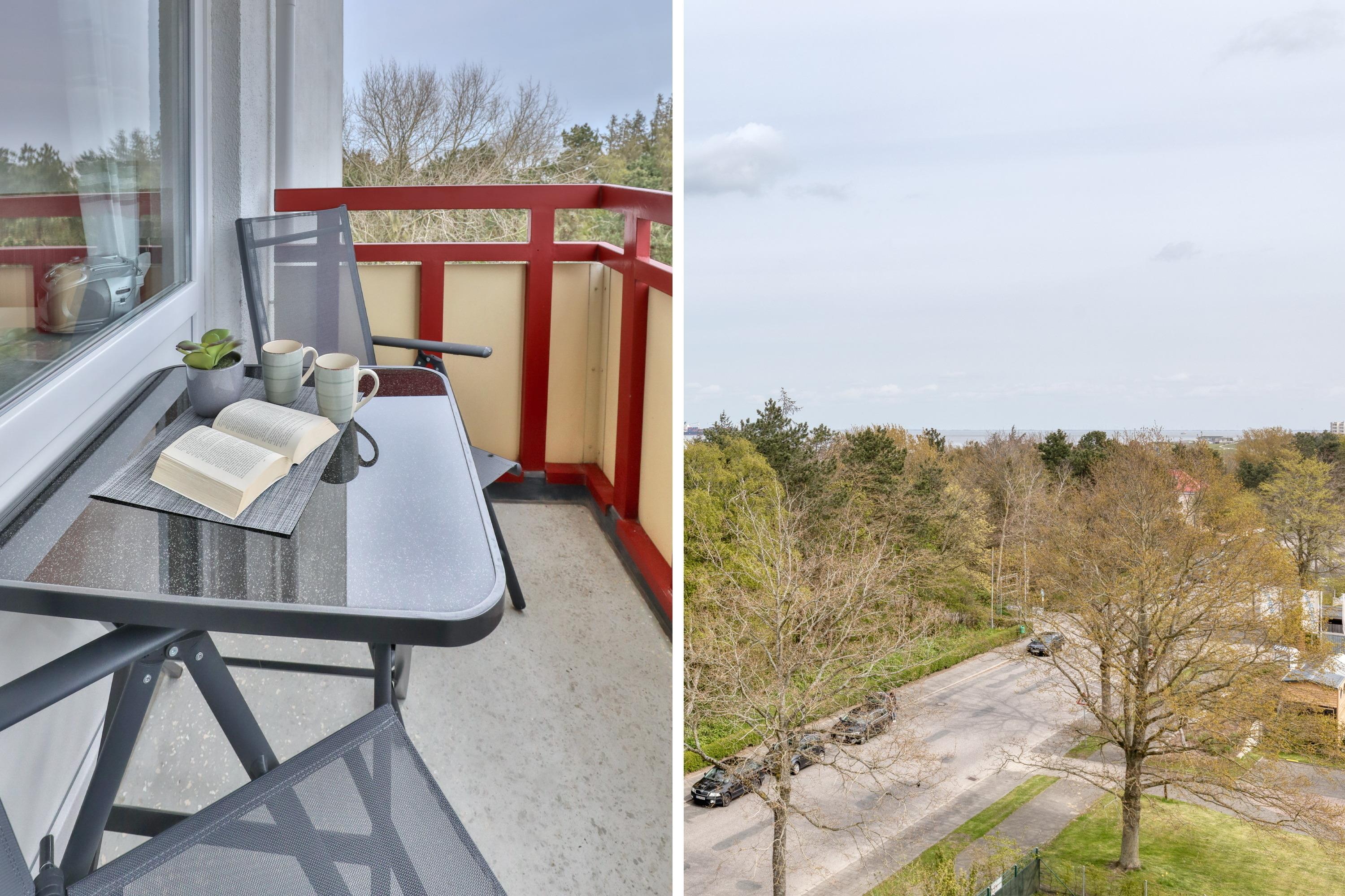 Das Appartement 78 ist ein 1-Raum-Appartement im 6. Obergeschoss für bis zu 2 Personen mit 26 qm. Der möblierte Ostbalkon bietet morgens Sonne und nachmittags Schatten.