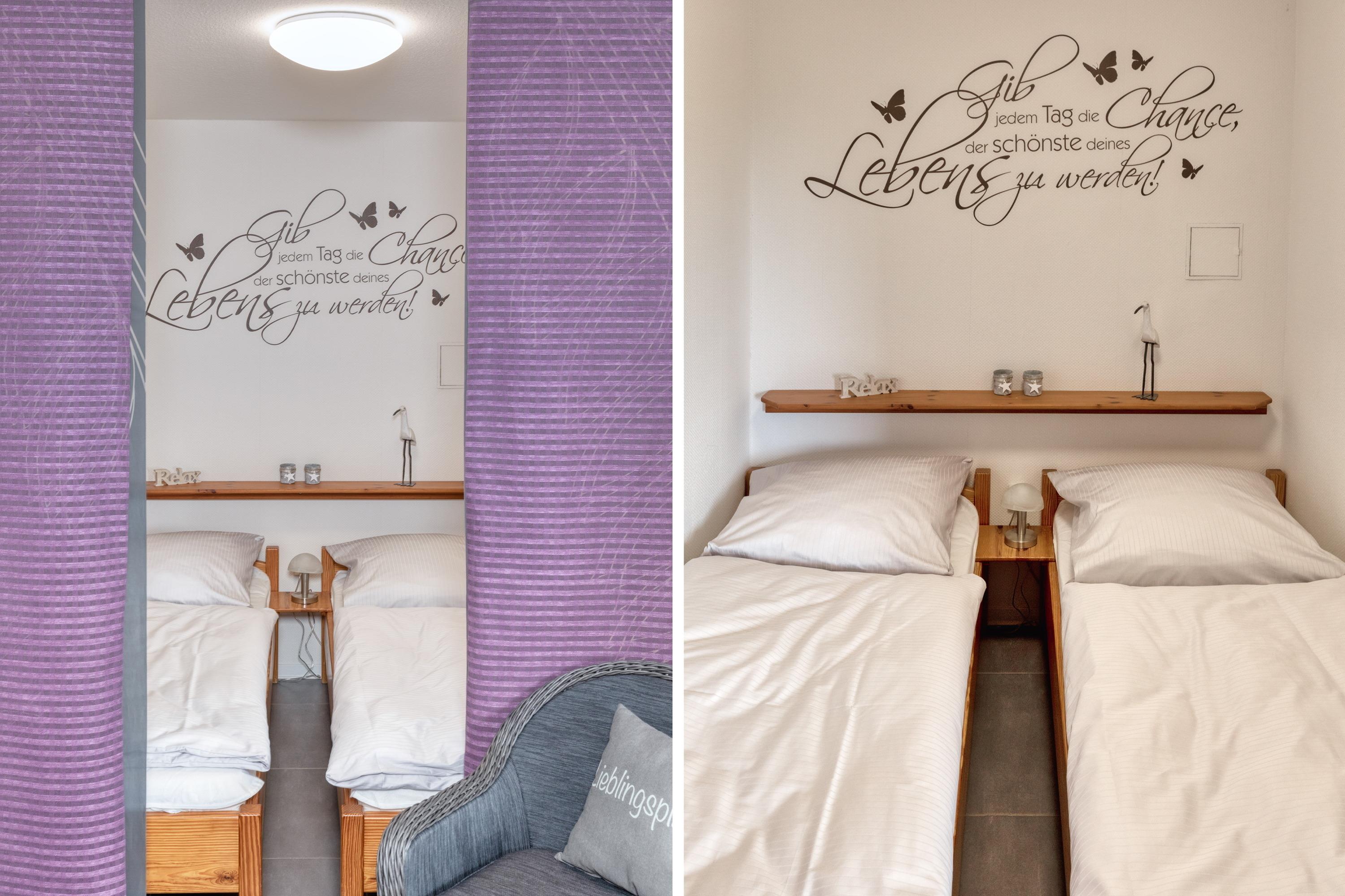 Das Appartement besteht aus einem Wohnbereich und eine Schlafnische mit zwei Einzelbetten für 2 Personen, eine voll ausgestattete integrierter Küche, einem Badezimmer mit Dusche sowie WC.