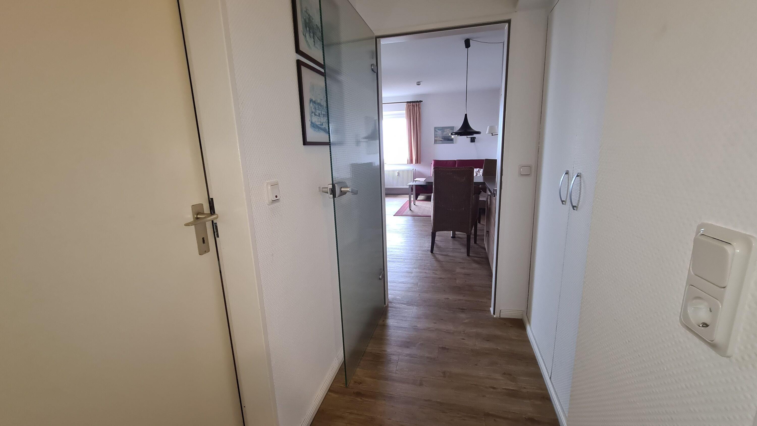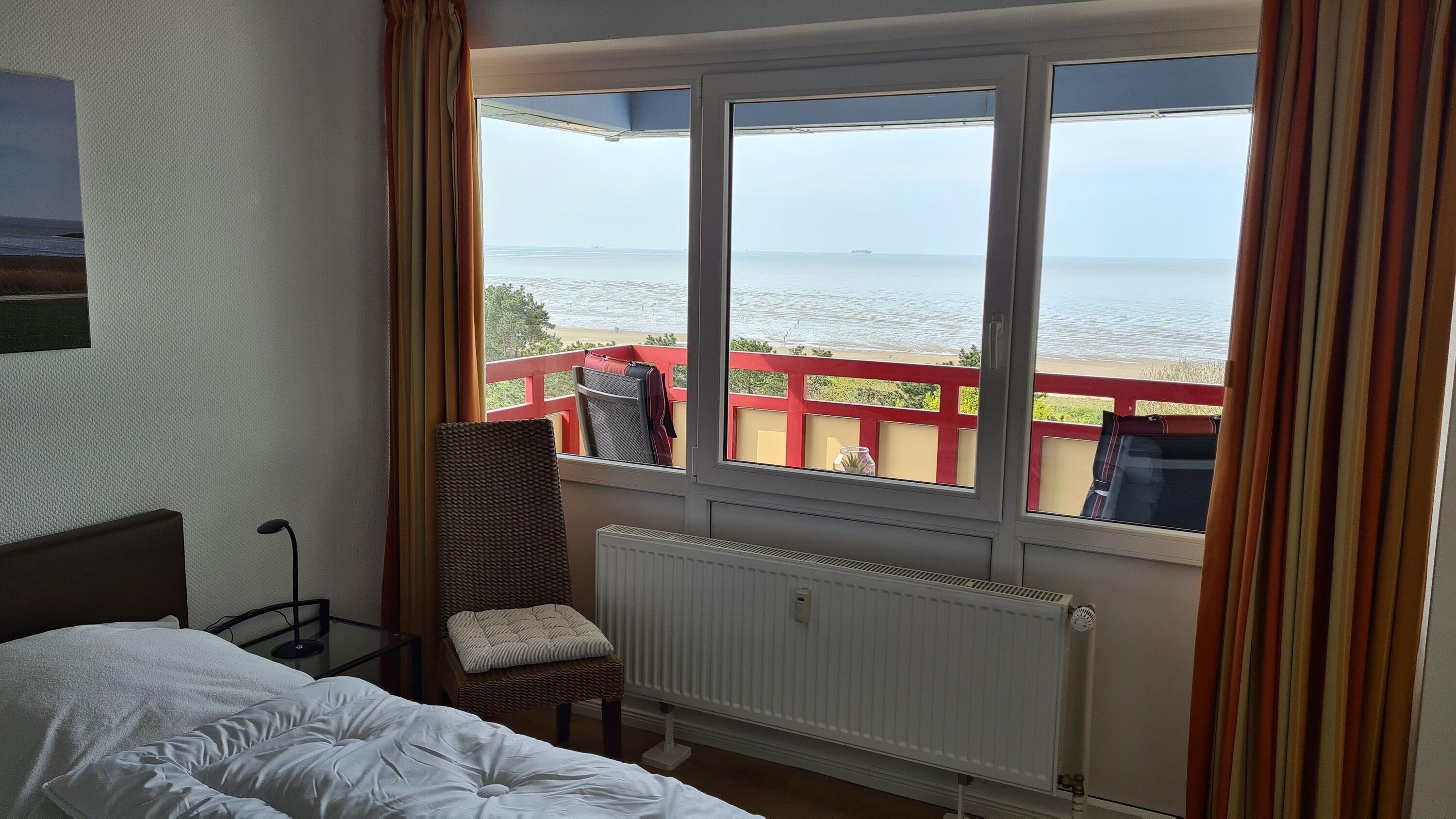Das Appartement 95 ist ein 2-Raum-Appartement im 8. Obergeschoss für bis zu 2 Personen mit 39 qm. Der möblierte Westbalkon mit Meerblick bietet morgens Schatten und nachmittags Sonne.