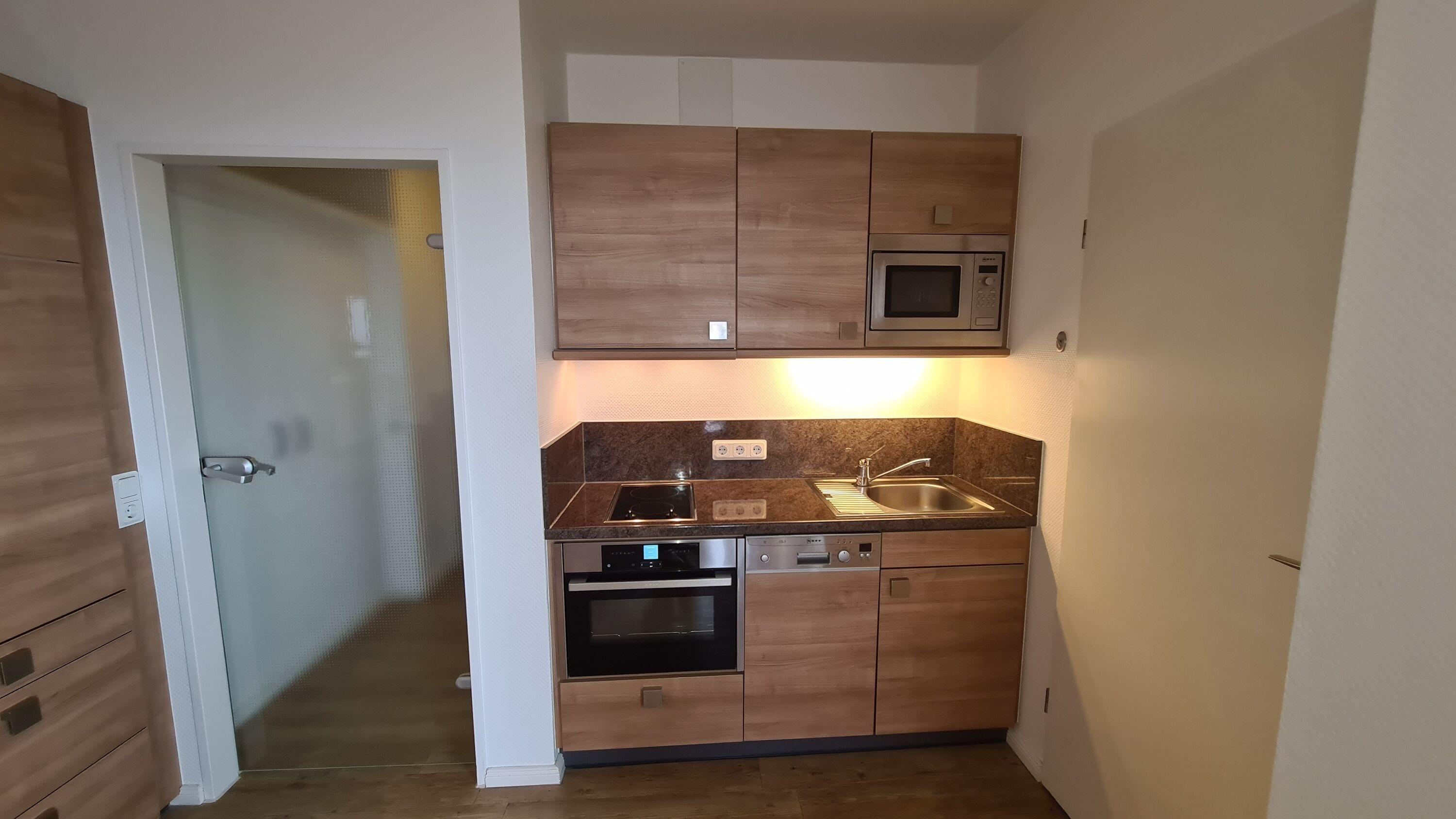 Das Appartement besteht aus einem Schlafzimmer mit Doppelbett, einem Wohnbereich mit eine voll ausgestattete integrierte Küche, einem Badezimmer mit Dusche sowie WC.