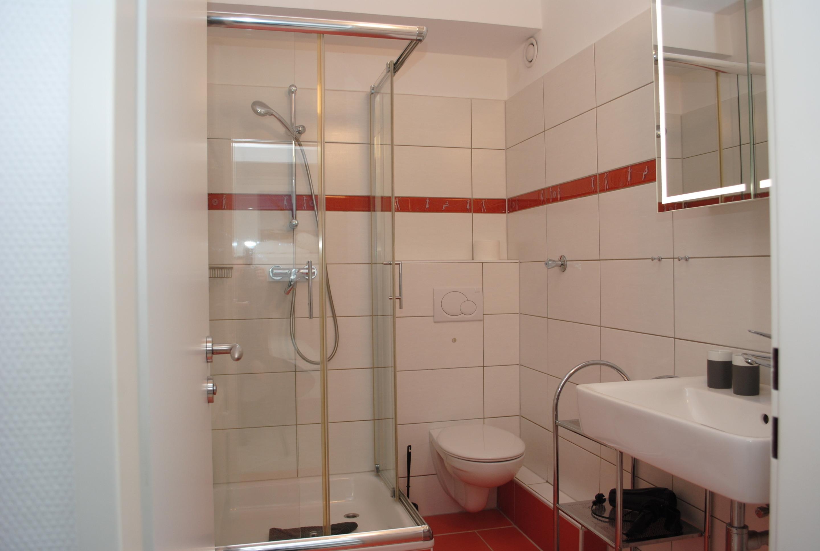 Das Apartment besteht aus einem Schlafzimmer mit 1 Doppelbett, einem Wohnbereich , einem zusätzlichem Etagenbett in einer Nische im Fluhr und einem Badezimmer mit Dusche sowie WC. Die Ferienwohnung beinhaltet eine voll Augestattete offene Küche.