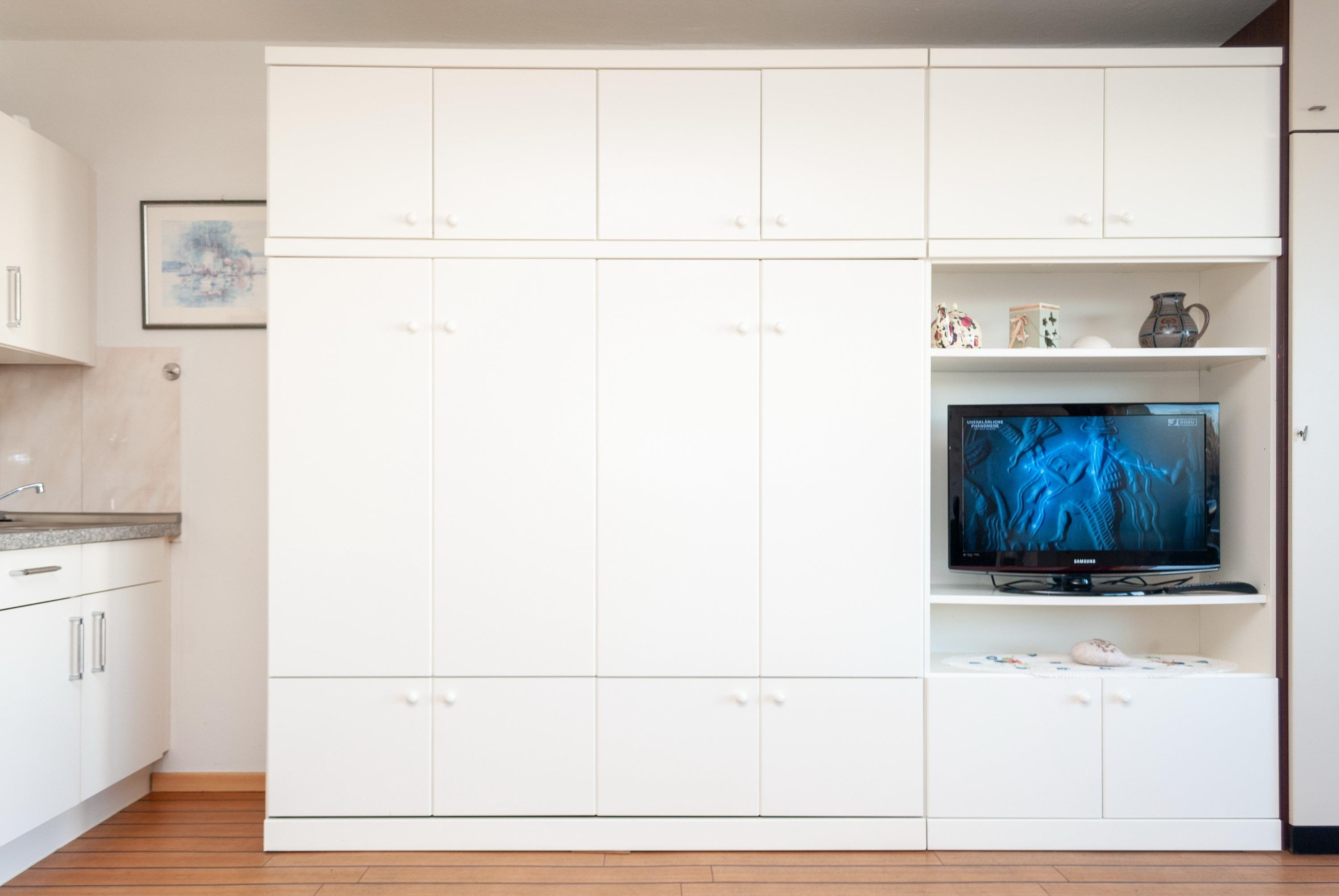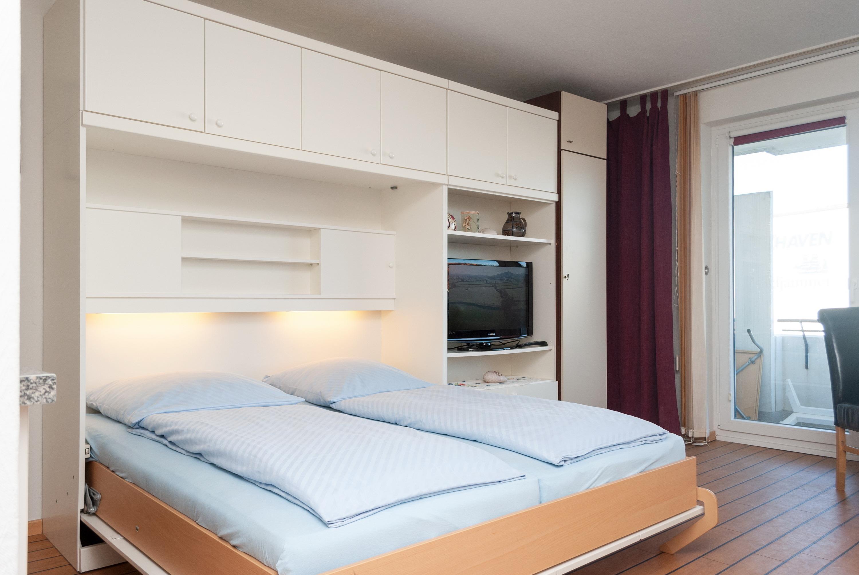 Das Apartment besteht aus einem Wohnbereich mit Schrankbett für 2 Personen und aus einem zuzätzlichen Etagenbett in einer Nische im Flur , einem Badezimmer mit Dusche sowie WC. Die Ferienwohnung beinhaltet eine voll ausgestattete offene Küche.