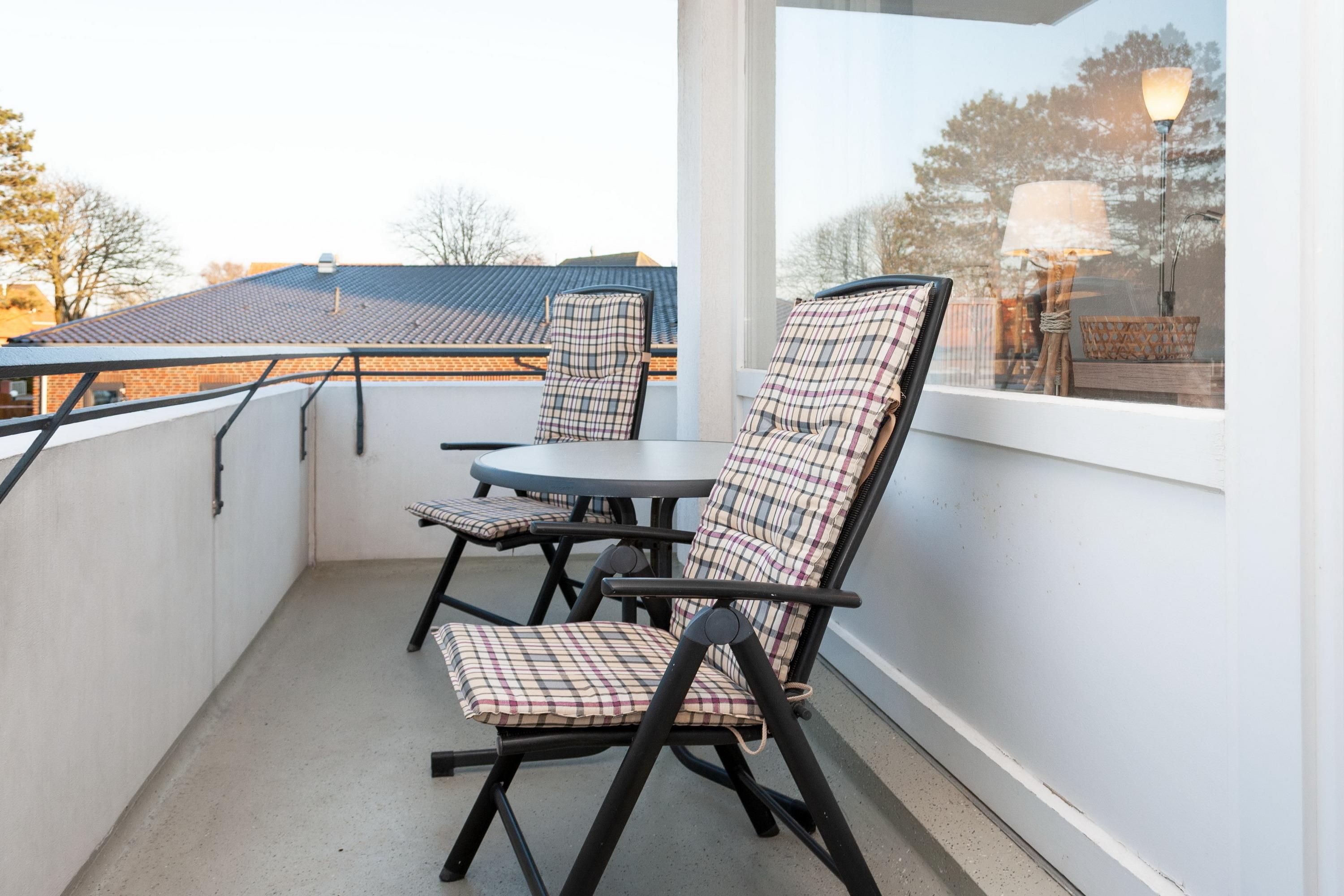 Das Apartment 112 ist ein 2-Raum-Apartment im 1. Obergeschoss für bis zu 4 Personen mit 50 qm. Der Ostbalkon mit Meerblick bietet Ihnen vormittags Sonne und nachmittags Schatten.