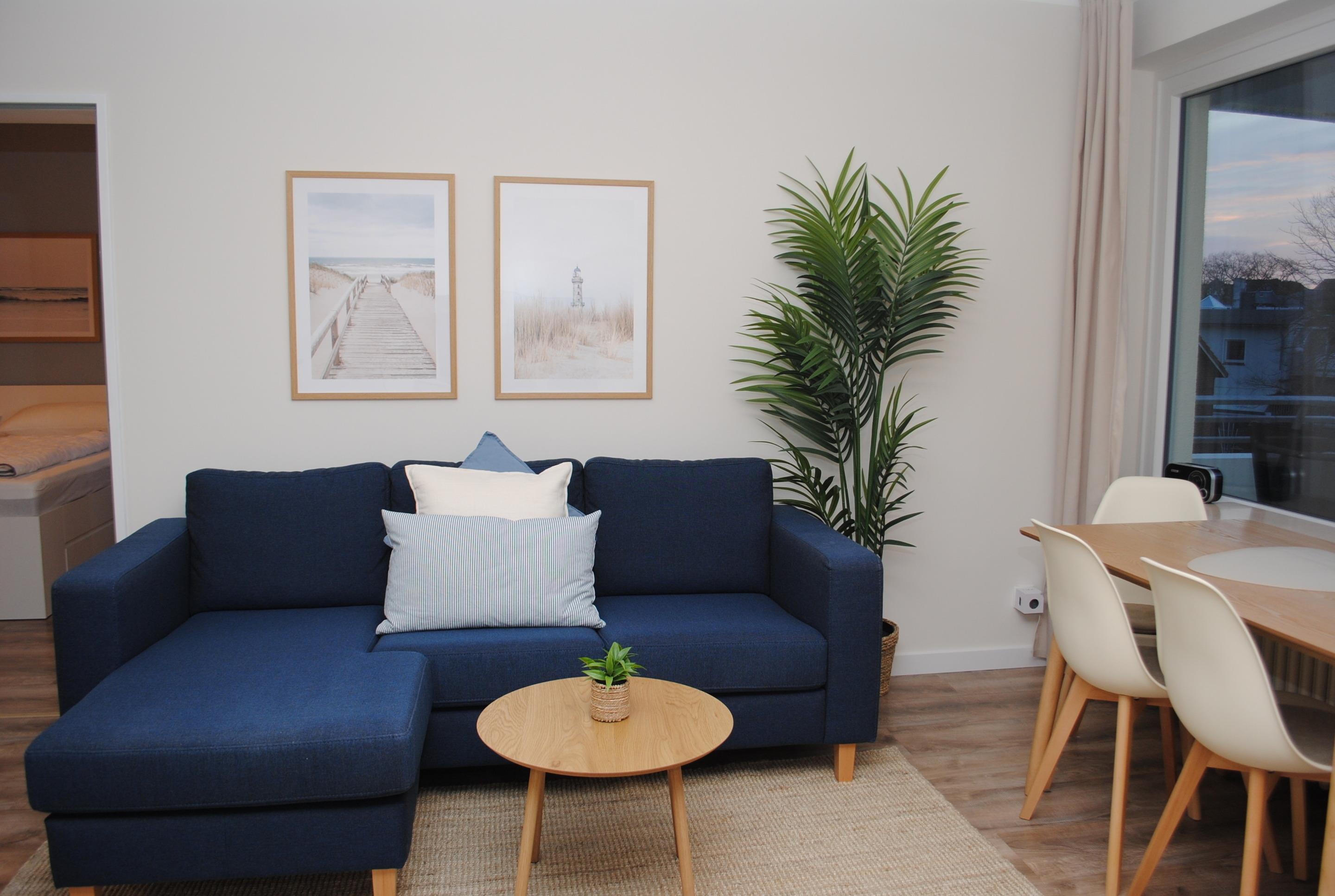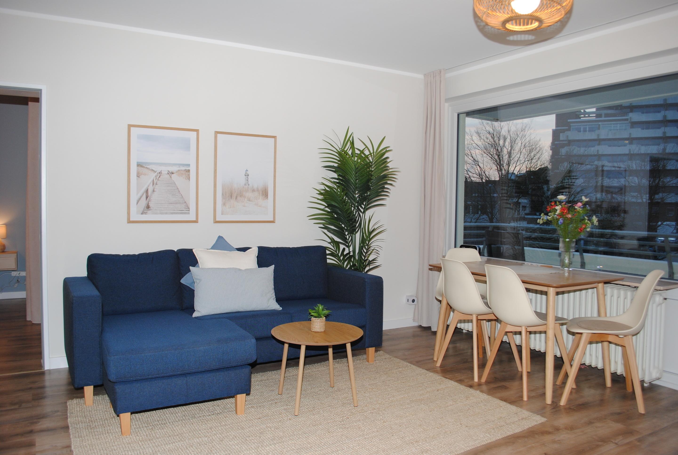 Das Apartment 201 ist ein 2-Raum-Apartment im 2. Obergeschoss für bis zu 4 Personen mit 50 qm. Der Westbalkon mit Meerblick bietet Ihnen vormittags Schatten und nachmittags Sonne .