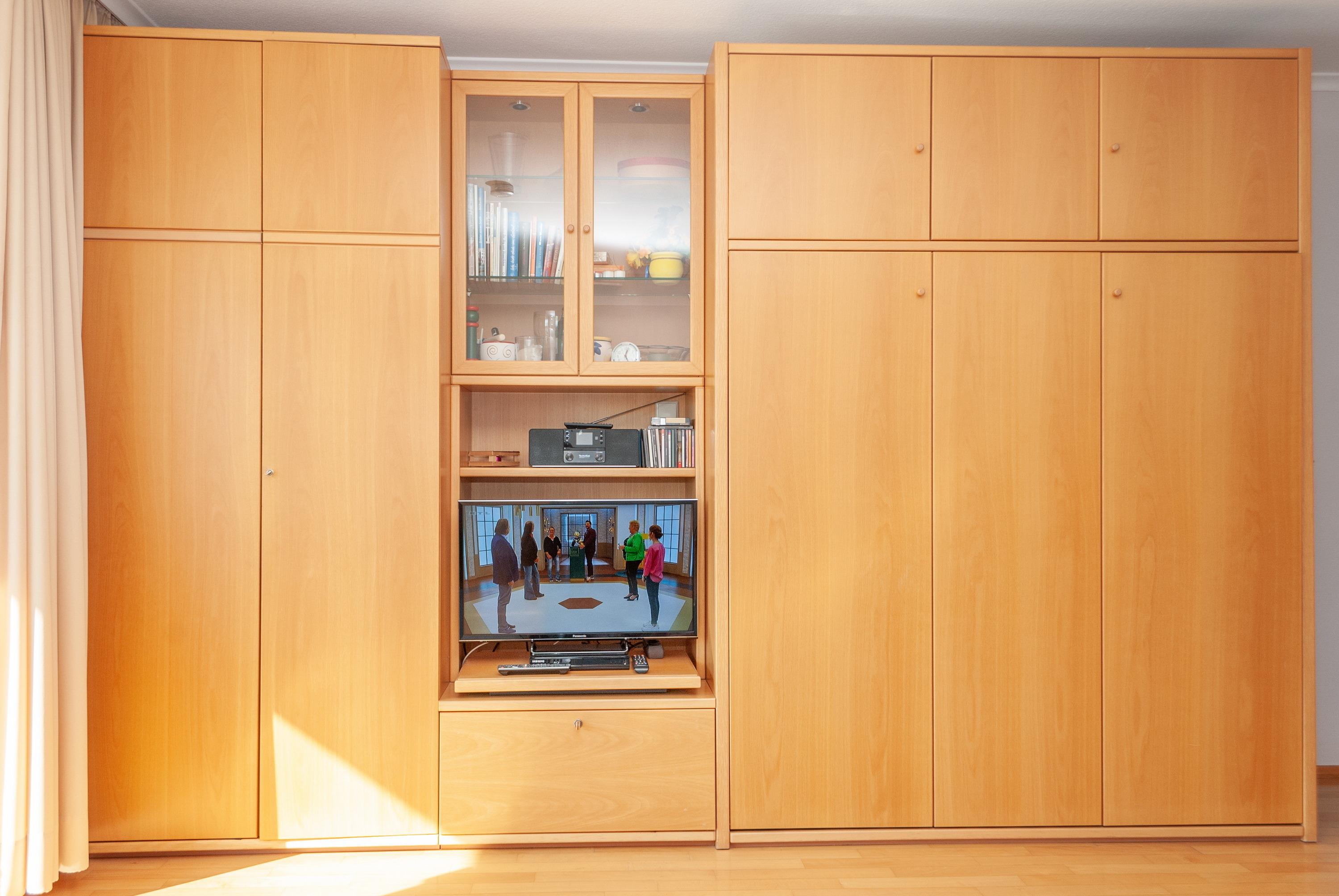 Das Apartment besteht aus einem Wohnbereich mit Schrankbett für 2 Personen ,und einem zusätzlichem Etagenbett in einer Nische im Flur Badezimmer mit Dusche sowie WC. Die Ferienwohnung beinhaltet eine voll ausgestattete offene Küche.