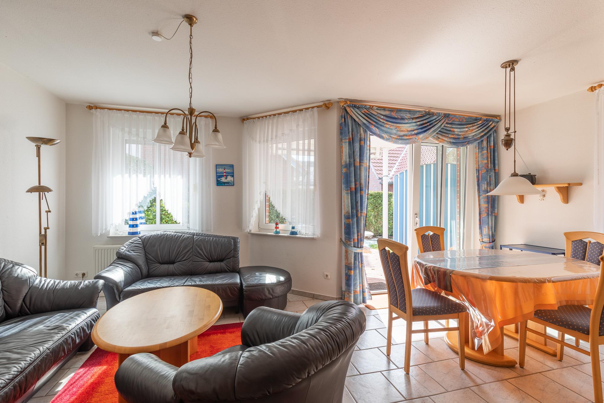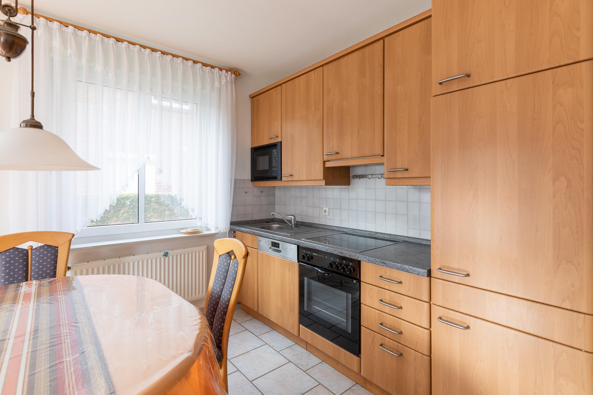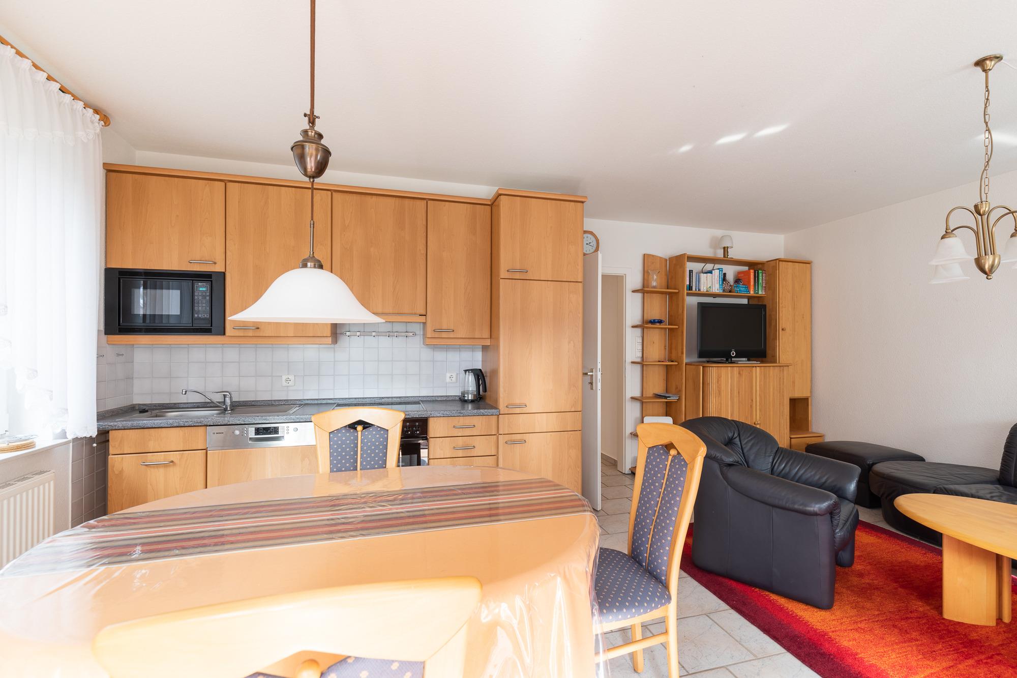 Die 3 Raum Ferienwohnung (im Erdgeschoss) mit einer Größe von ca. 60 m² Wohnfläche ist komplett bis zu 5 Personen ausgestattet.