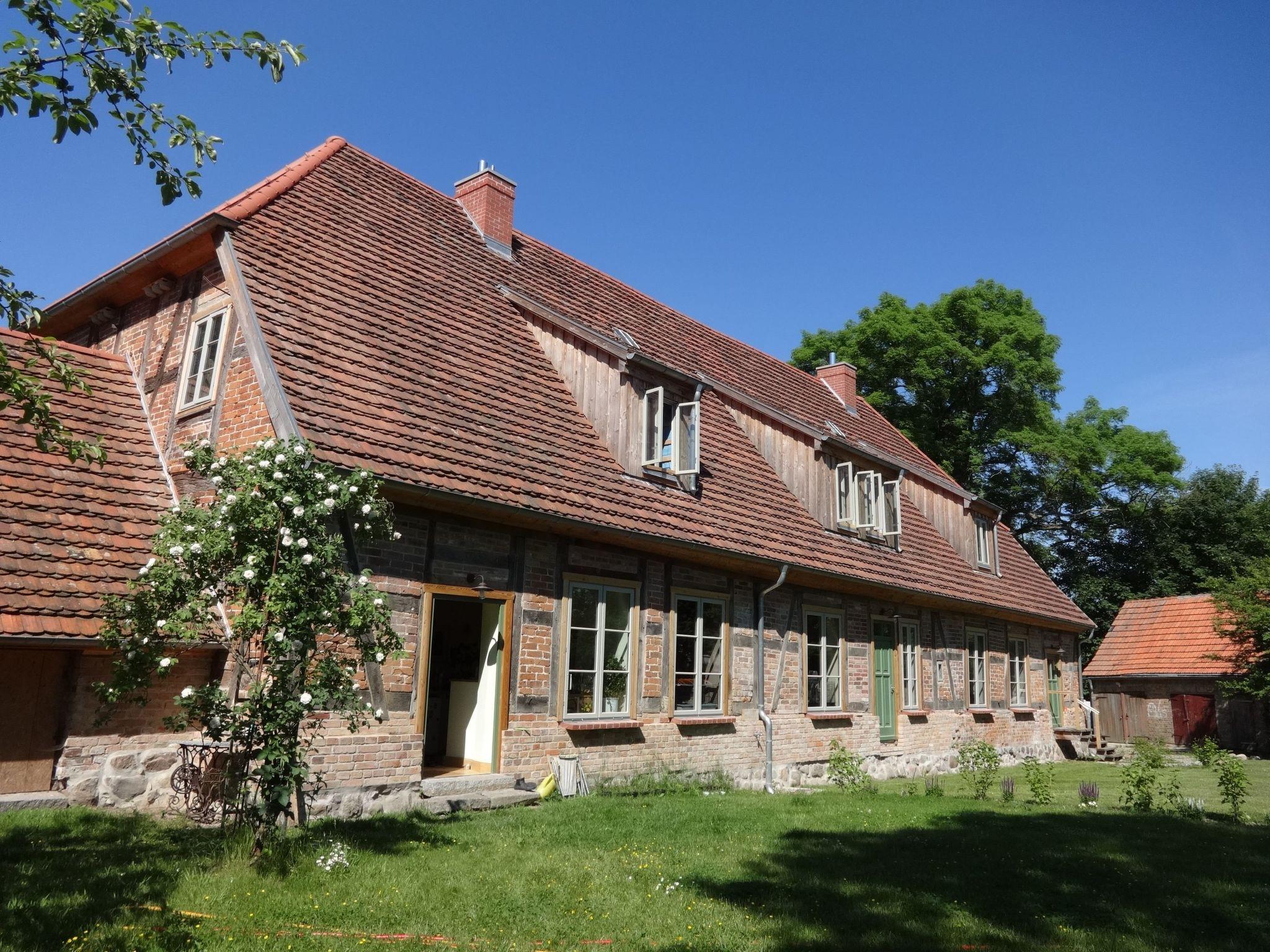 The house stands detached on a large site on the edge of the little village Petschow. All around, it is surrounded by meadows and fields. Those who like exercise outdoors have plenty of opportunity to do so. It is 2km to a swimming like by bike or car.