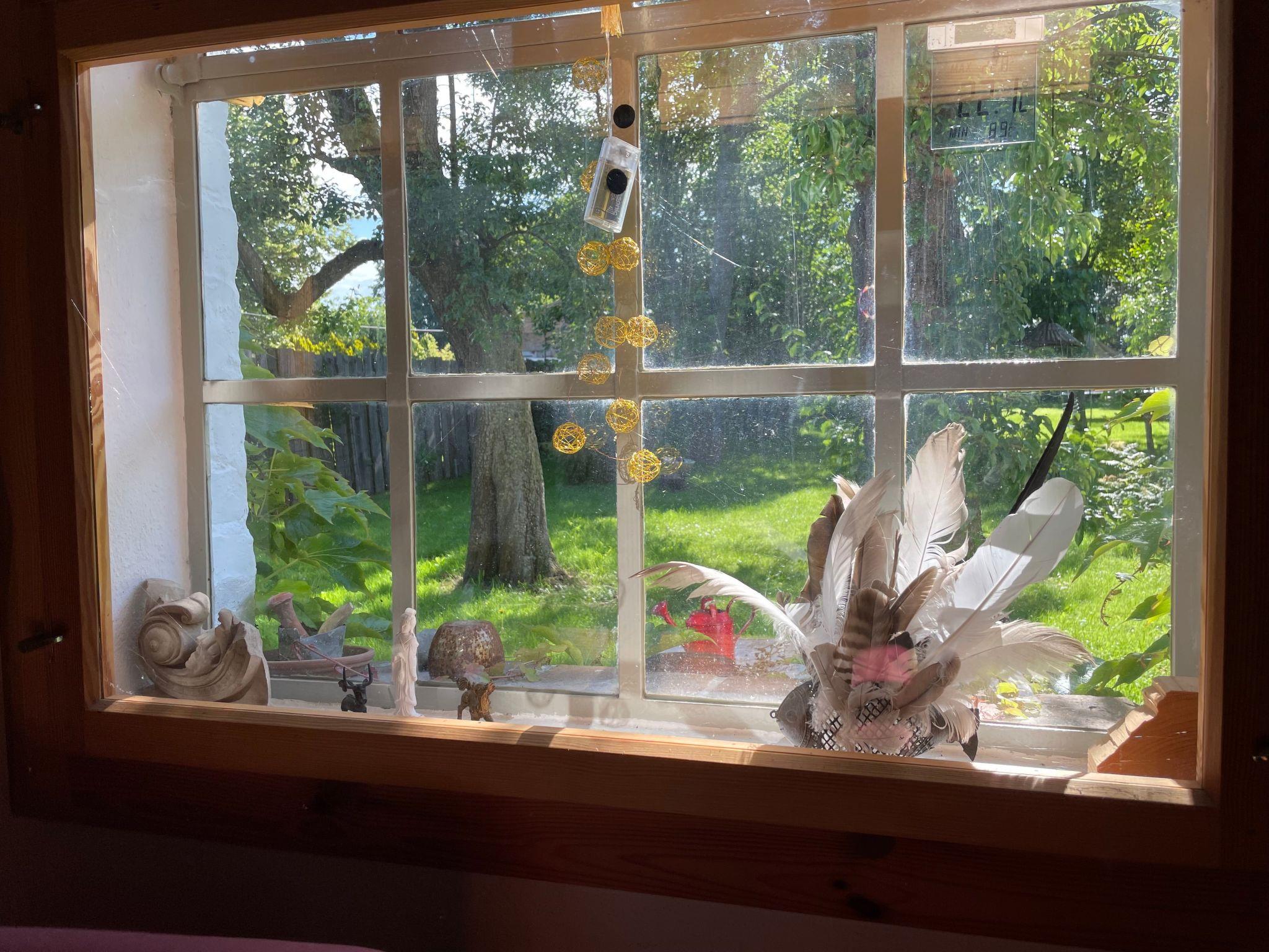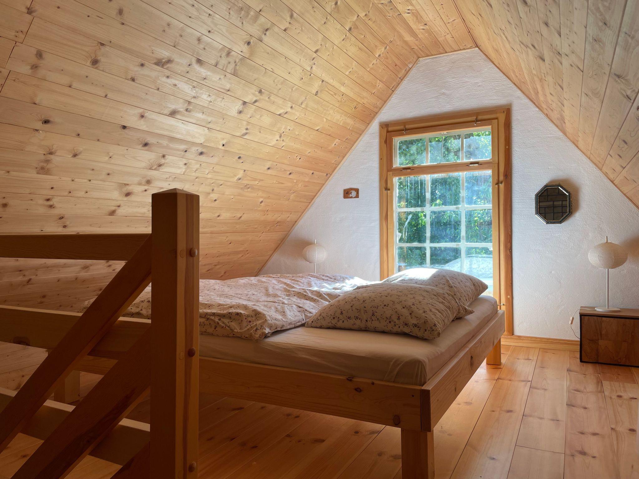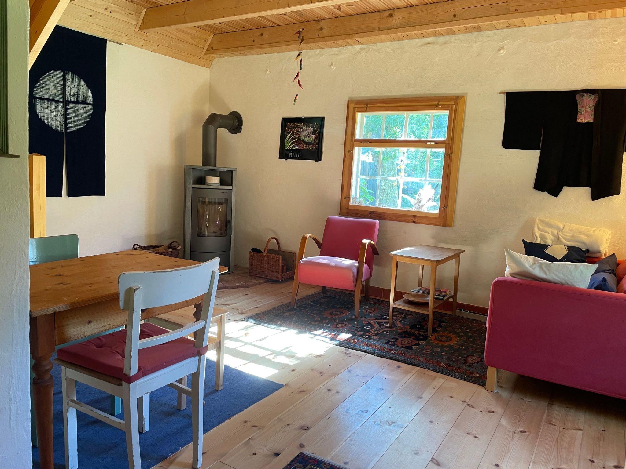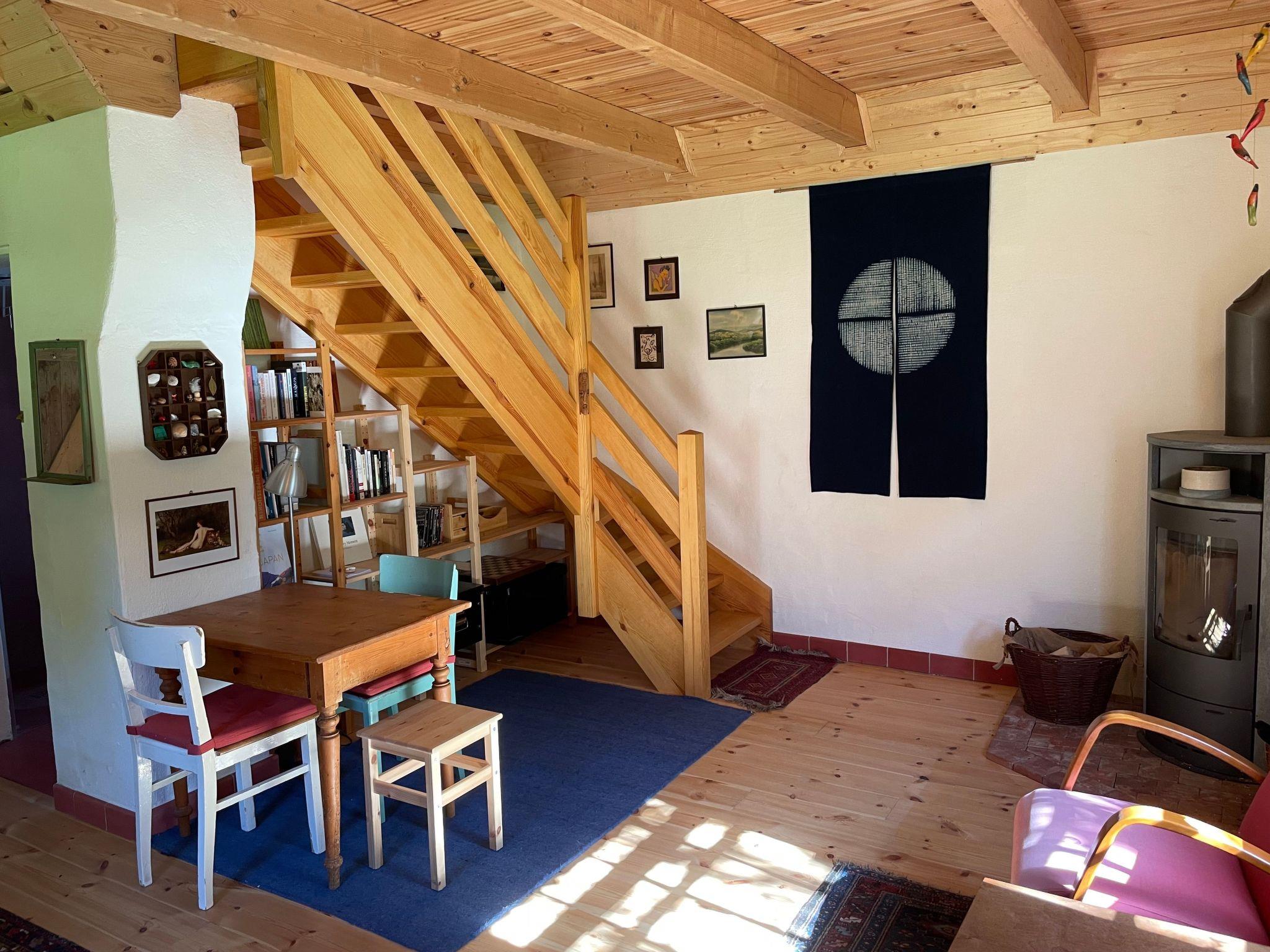 In the middle of this small oasis of old trees and secluded corners of the garden stands the old vicarage from 1743 and right next to it the former wash house, which now houses the holiday flat of the same name. The flat has a living room with an open-plan kitchen and wood-burning stove, a bathroom and a bedroom on the first floor with a double bed and a "cupboard bed" that your child will love. The flat is heated exclusively by the wood-burning stove. Logs can be purchased per basket from the landlady as required. The bathroom is heated with an infrared heater. The hot water is provided by an instantaneous water heater.