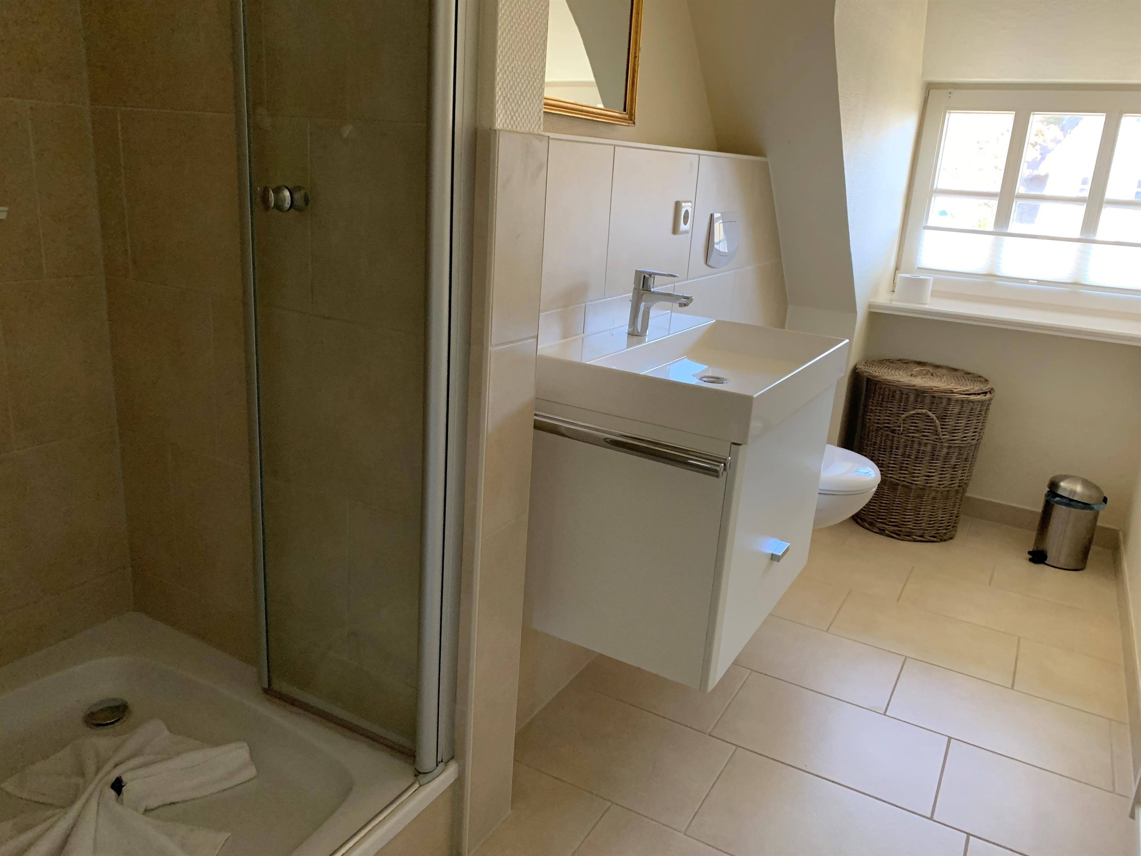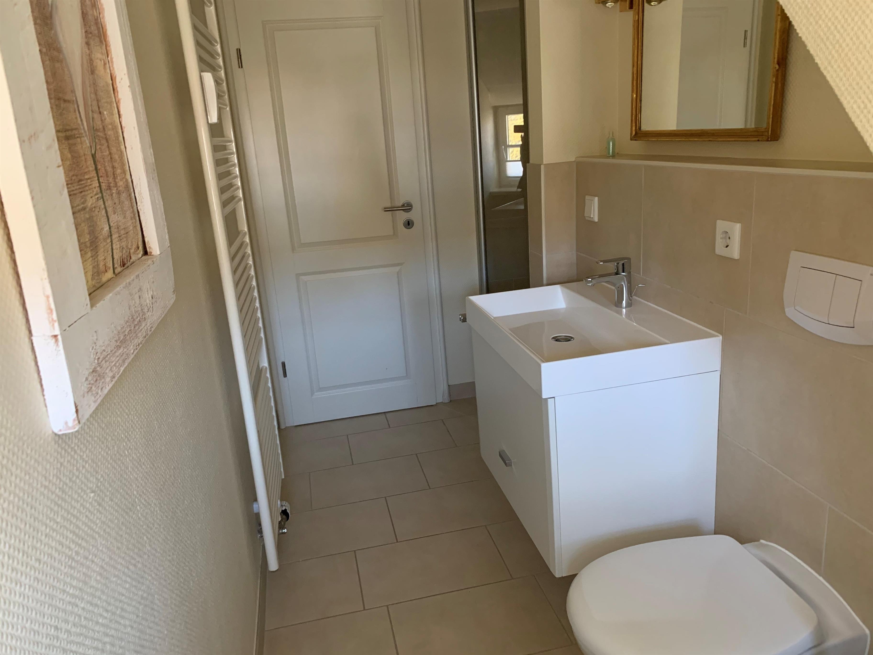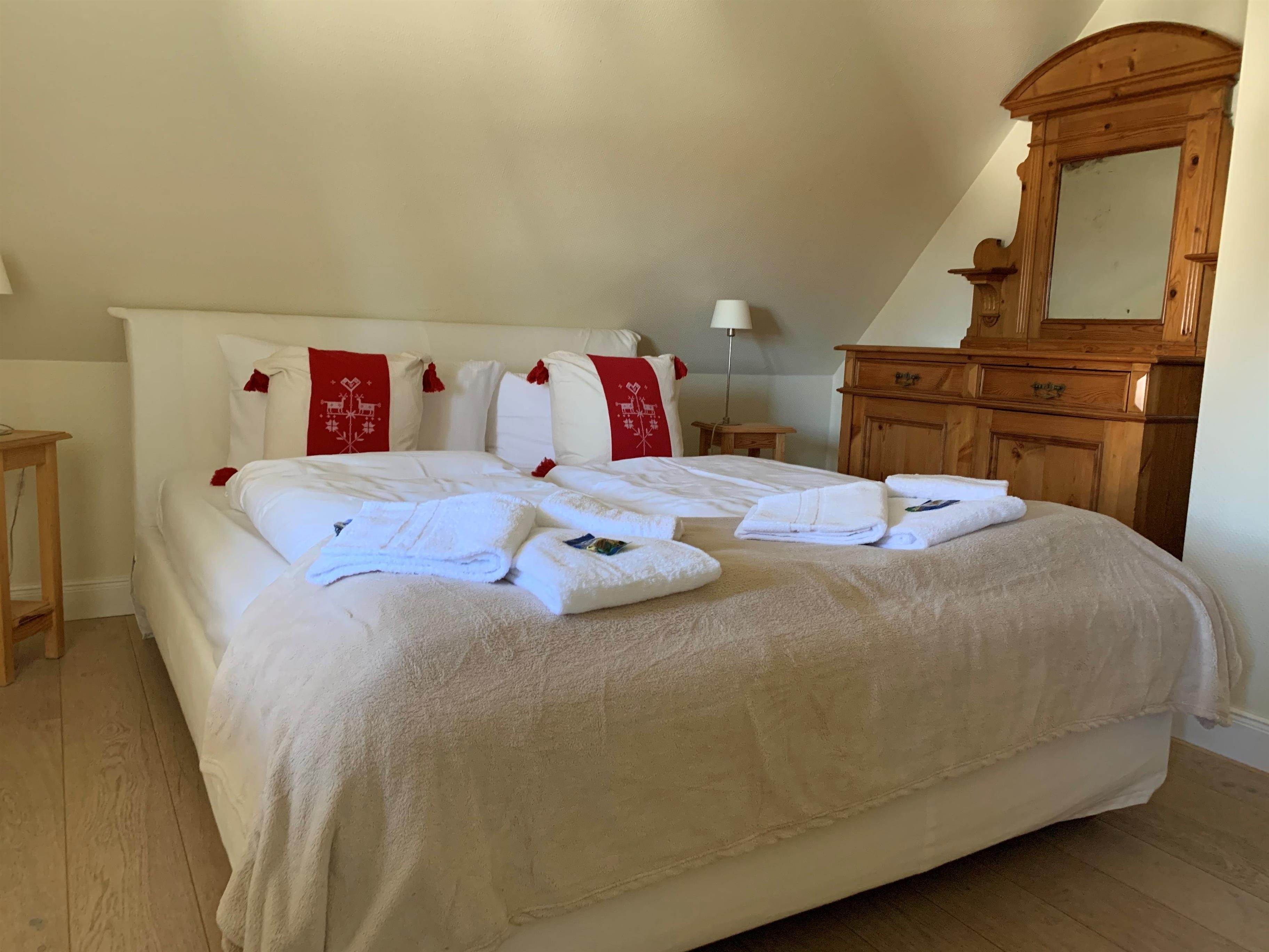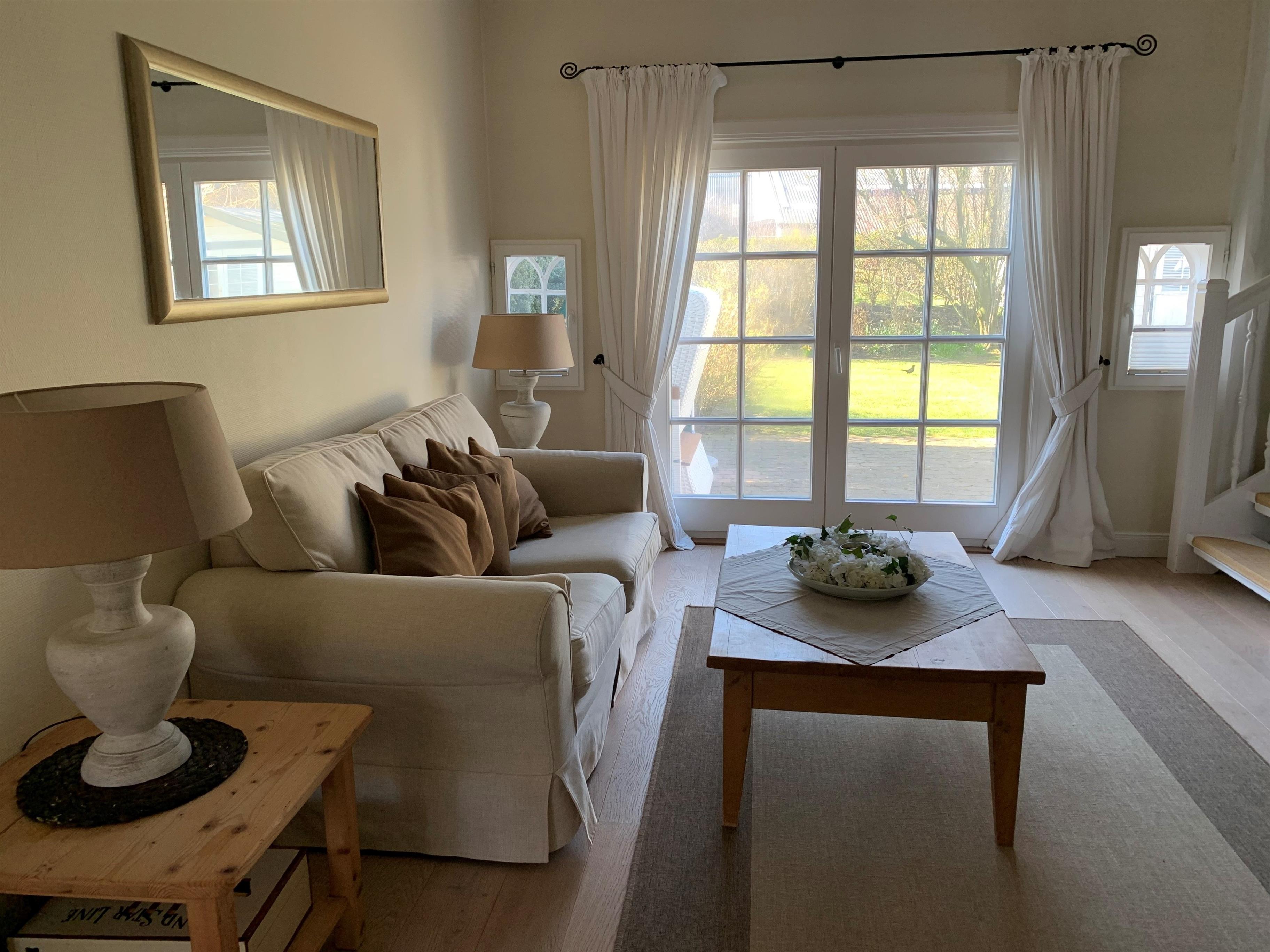 Dieses hochwertig ausgestattete Hausteil umfasst im Erdgeschoss den Wohn- und Essbereich mit Ausgang zur Südterrasse, eine offene Einbauküche, Vollbad/WC, Garderobe und HW-Raum. Im Dachgeschoss liegen Schlafzimmer, Gästezimmer mit großer Abseite, Duschbad/WC und Flur mit Einbauschrank. Ein ansprechendes Ferienobjekt mit stilvollen Ausstattungsdetails erwartet Sie - weitab von der Hektik des Alltags.